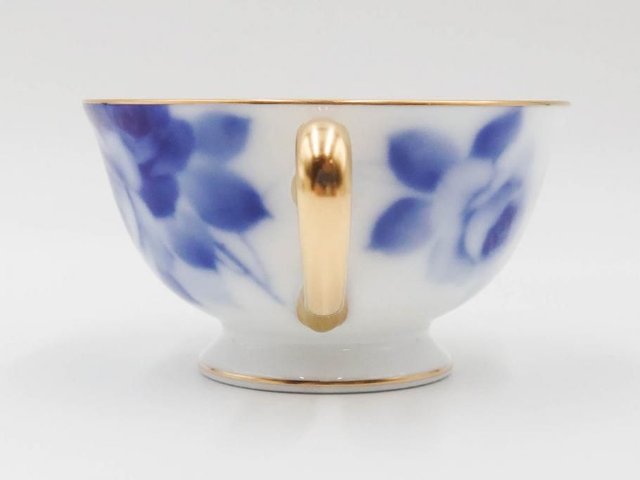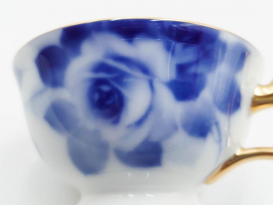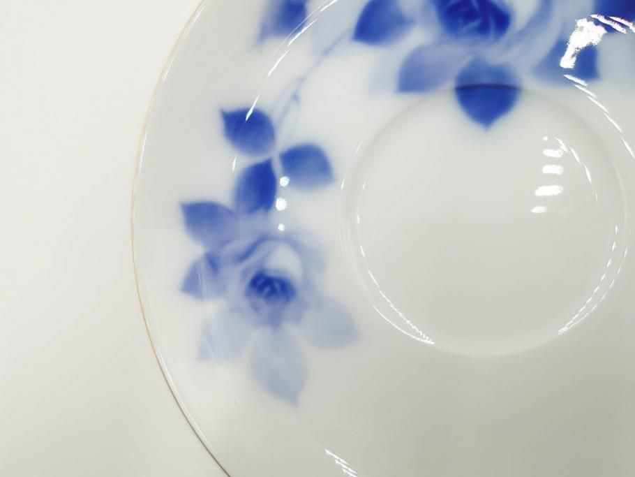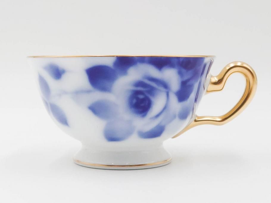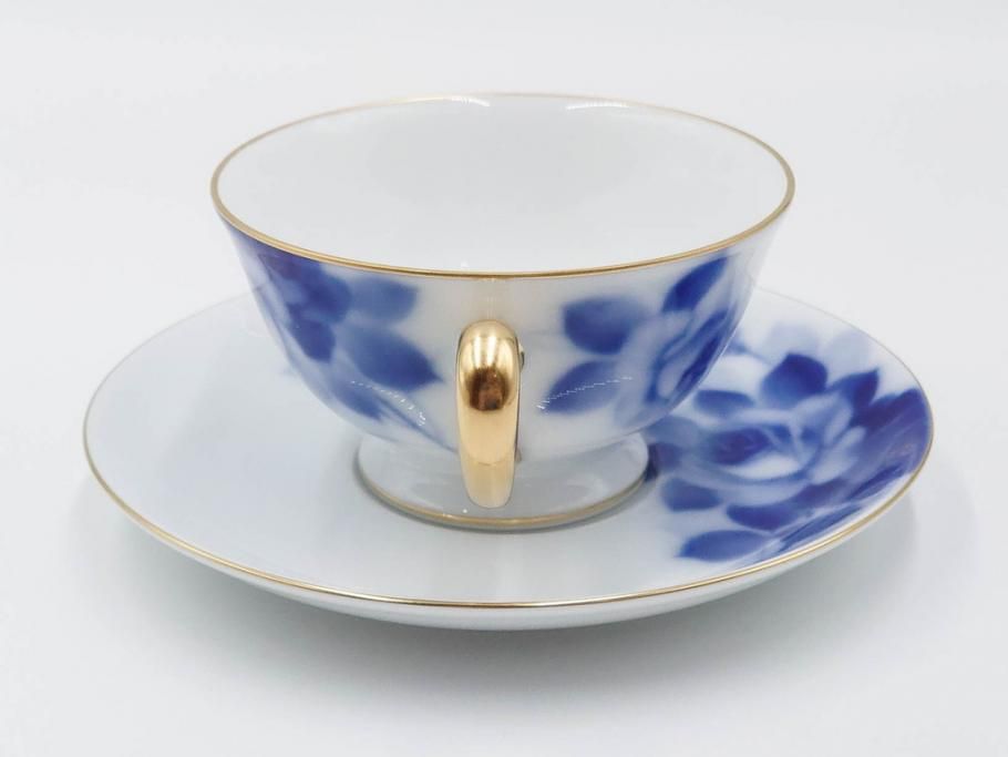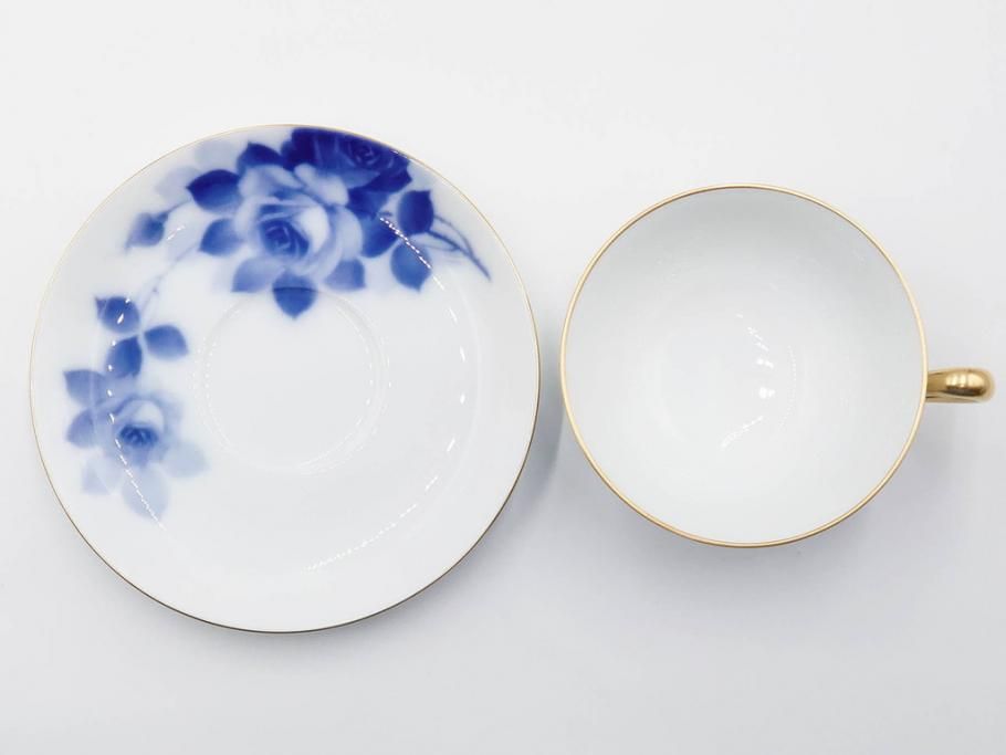 大倉陶園(OKURA、OAC) ブルーローズ 上品な雰囲気のティーカップ&ソーサー2客セット(R-084502)