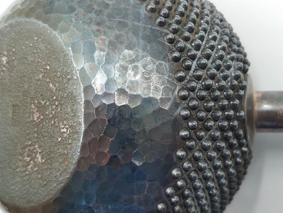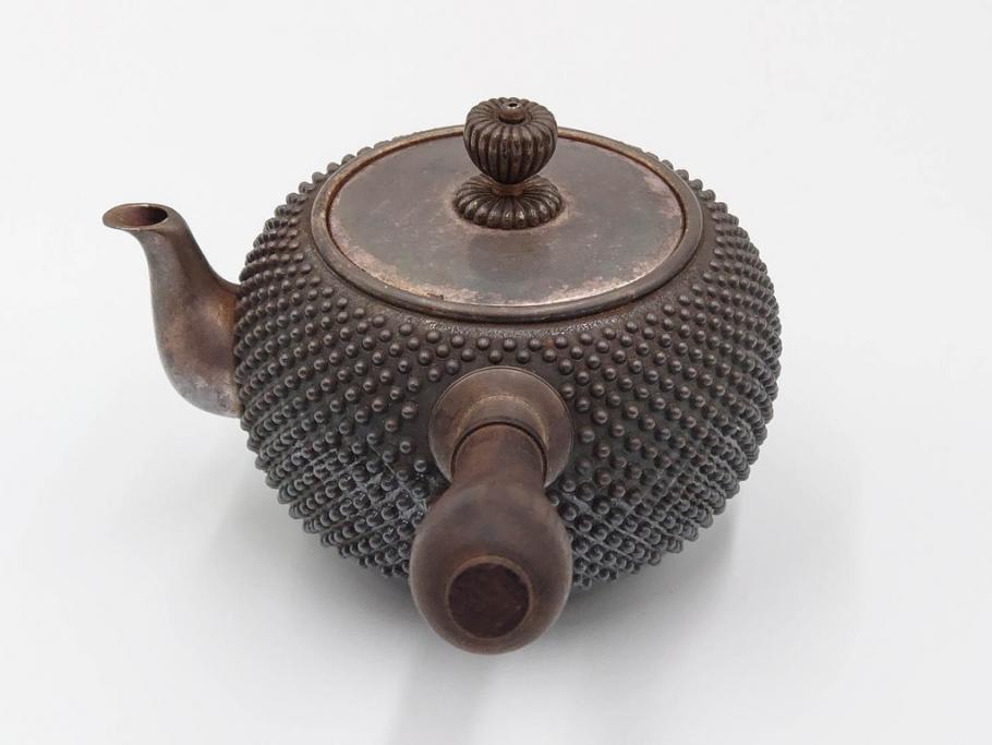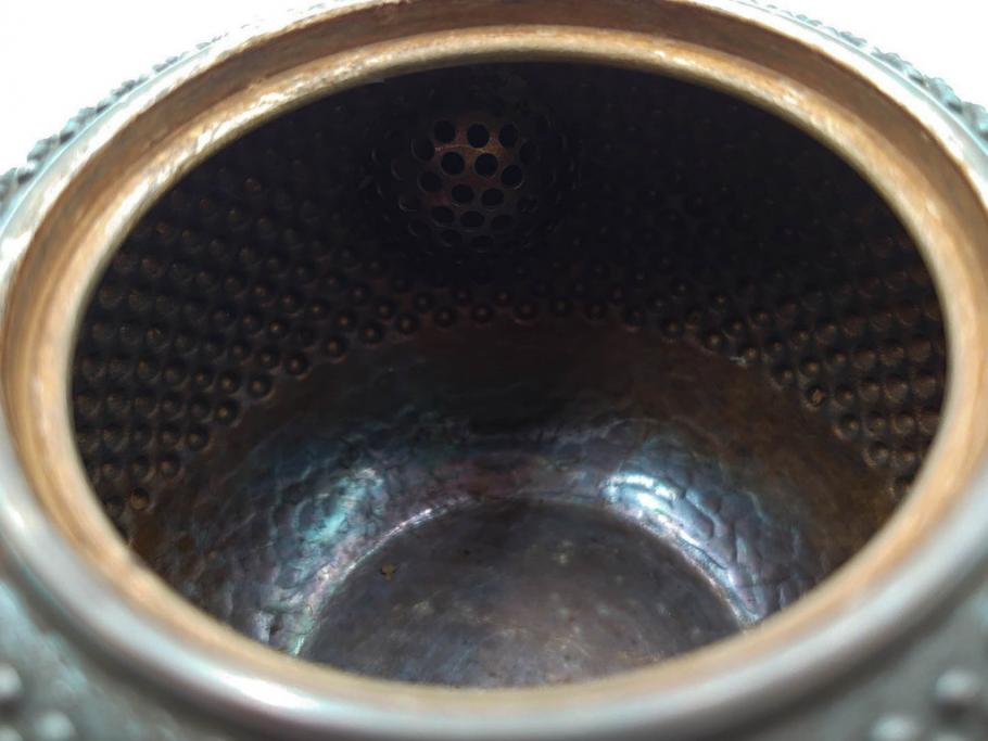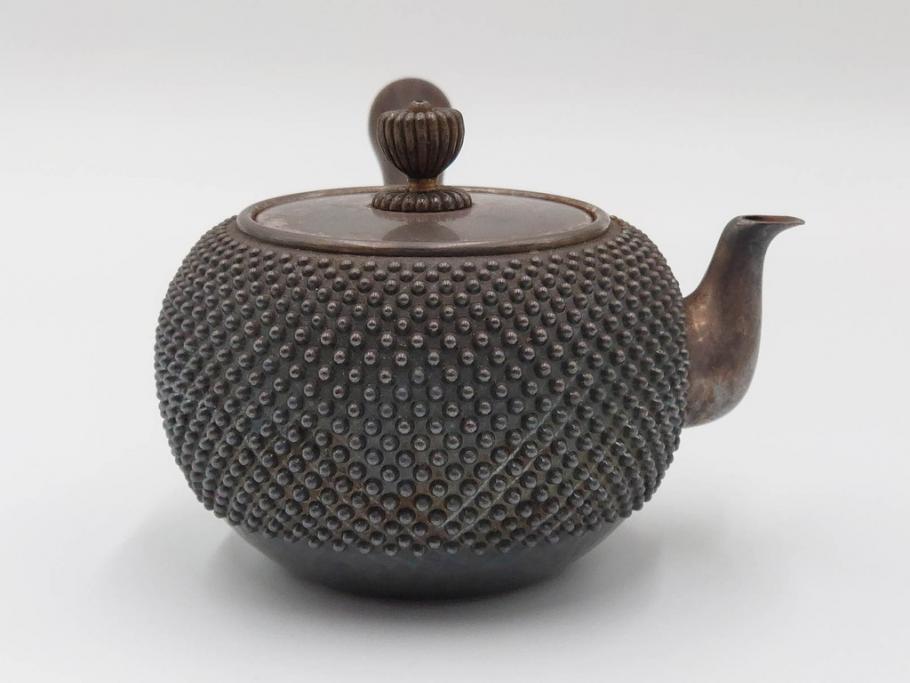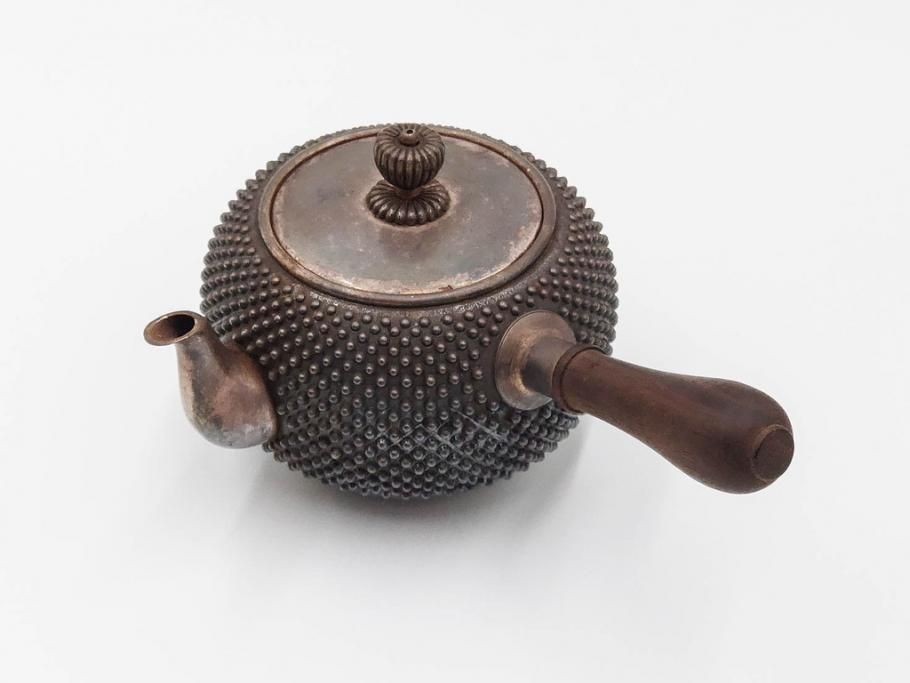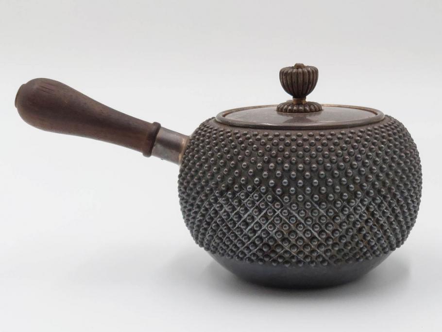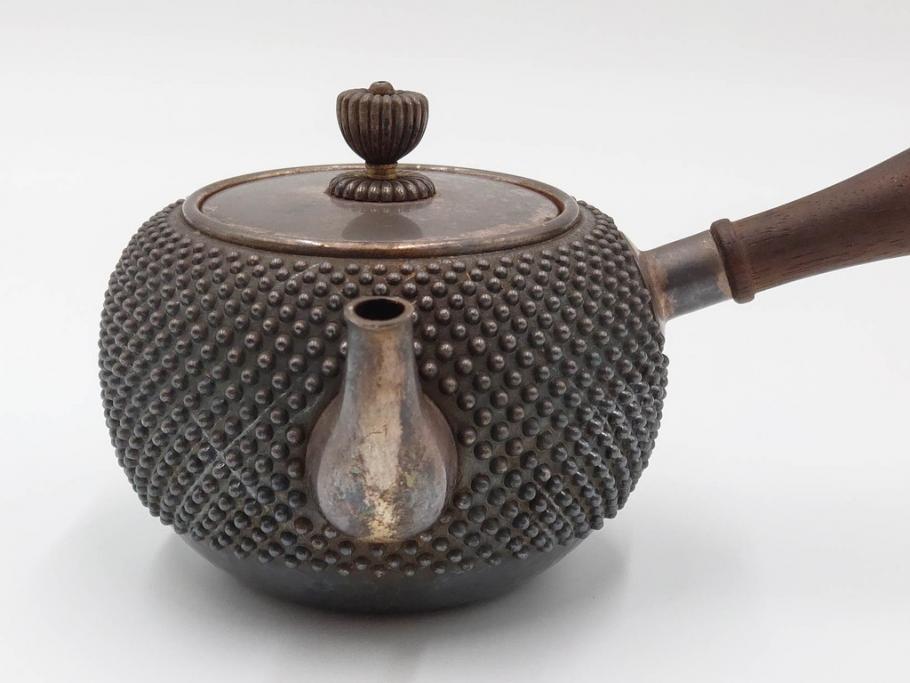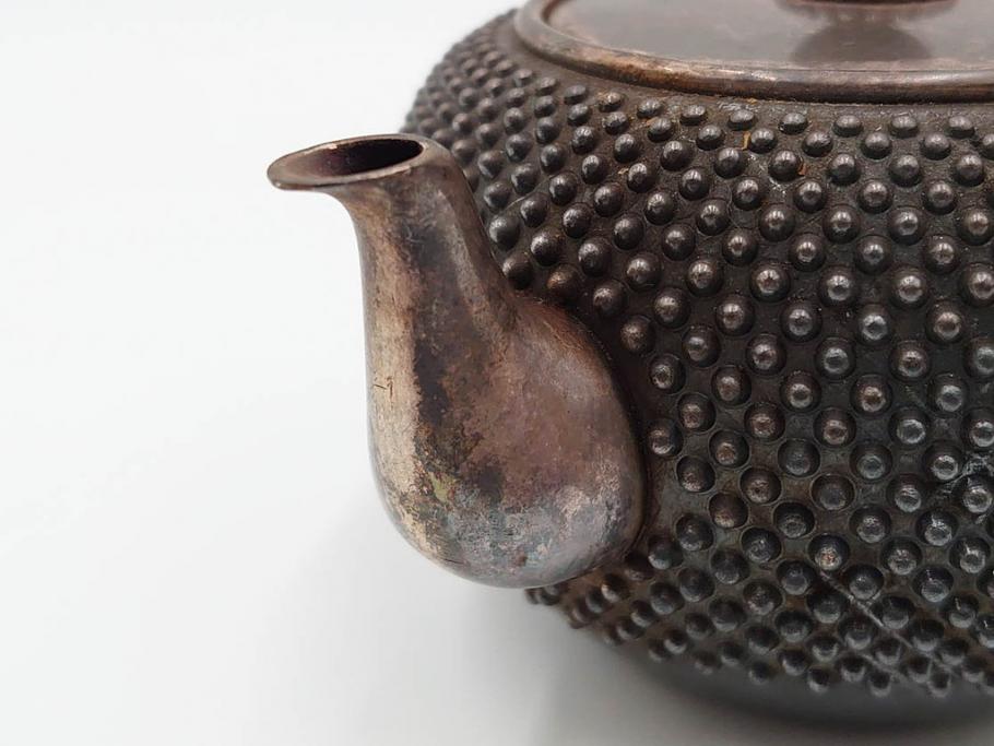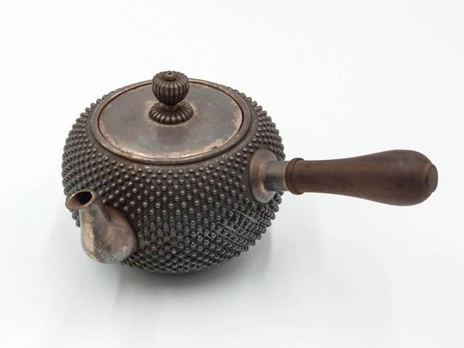 純銀 玉霰 重量 約216g 匠の技が光る急須(銀瓶、横手、煎茶、水注、茶道具、茶器、水差、水指)(R-084504)