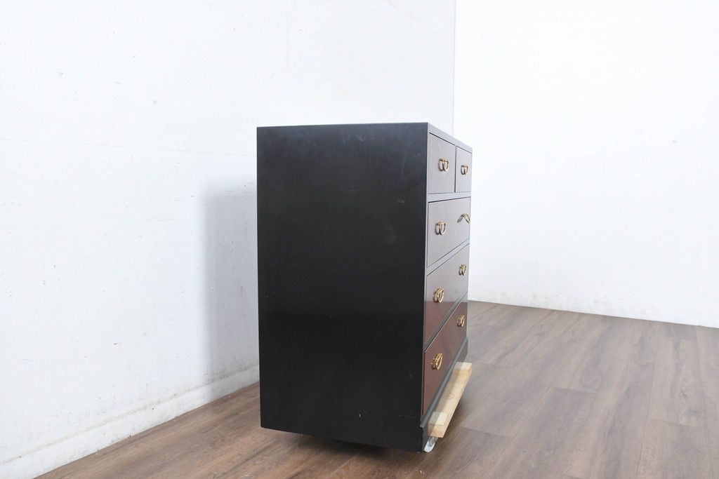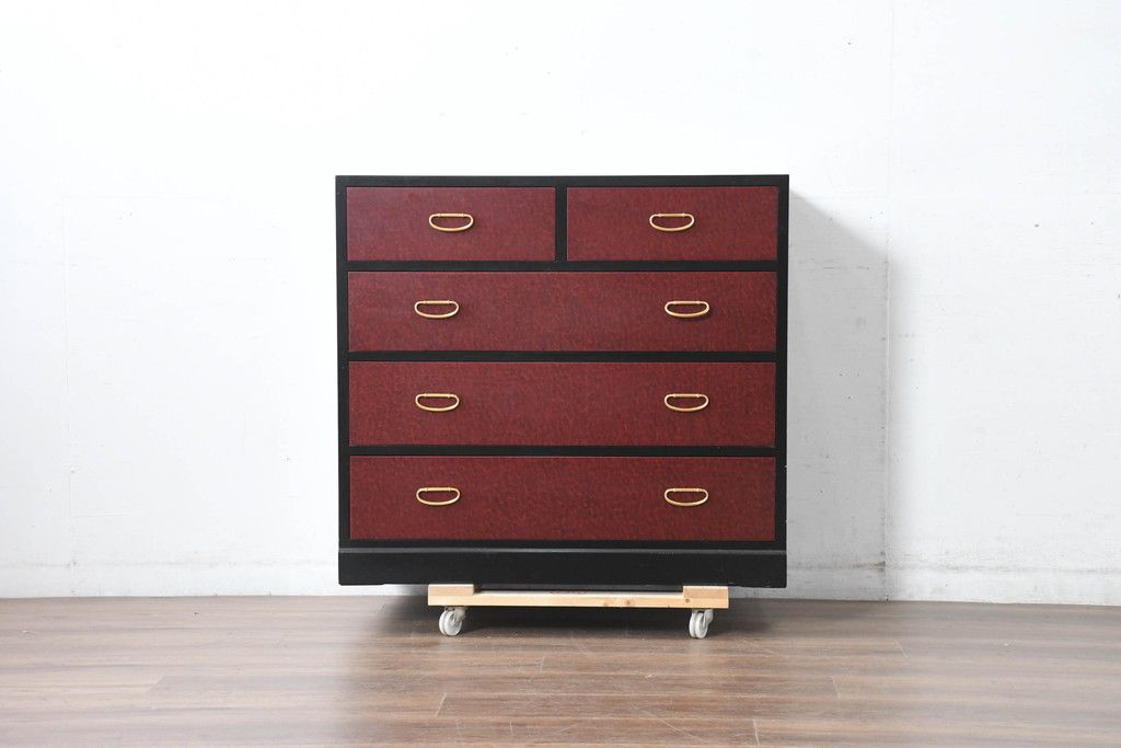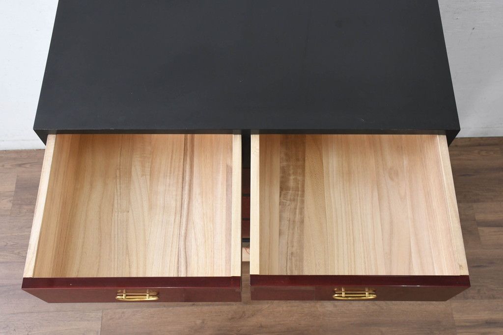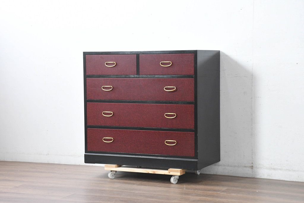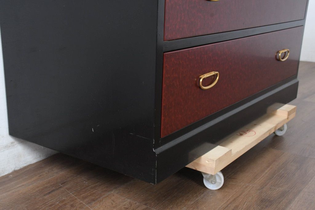 中古 美品 高級品 内部桐材 前面赤漆の「鱗(うろこ)塗り」とスタイリッシュな真鍮金具が魅力的な和モダンチェスト(桐箪笥、桐たんす、サイドチェスト、衣装箪笥、収納タンス、引き出し)(R-084507)