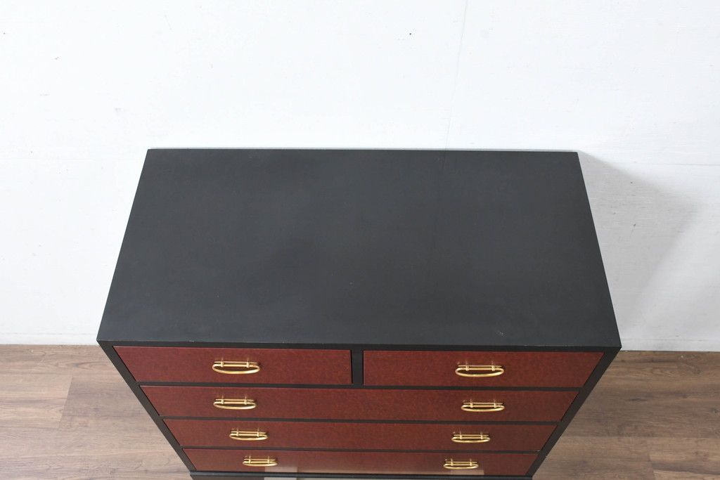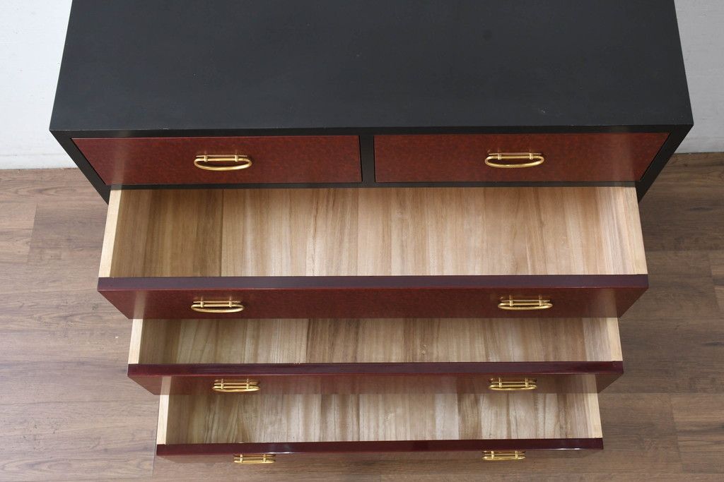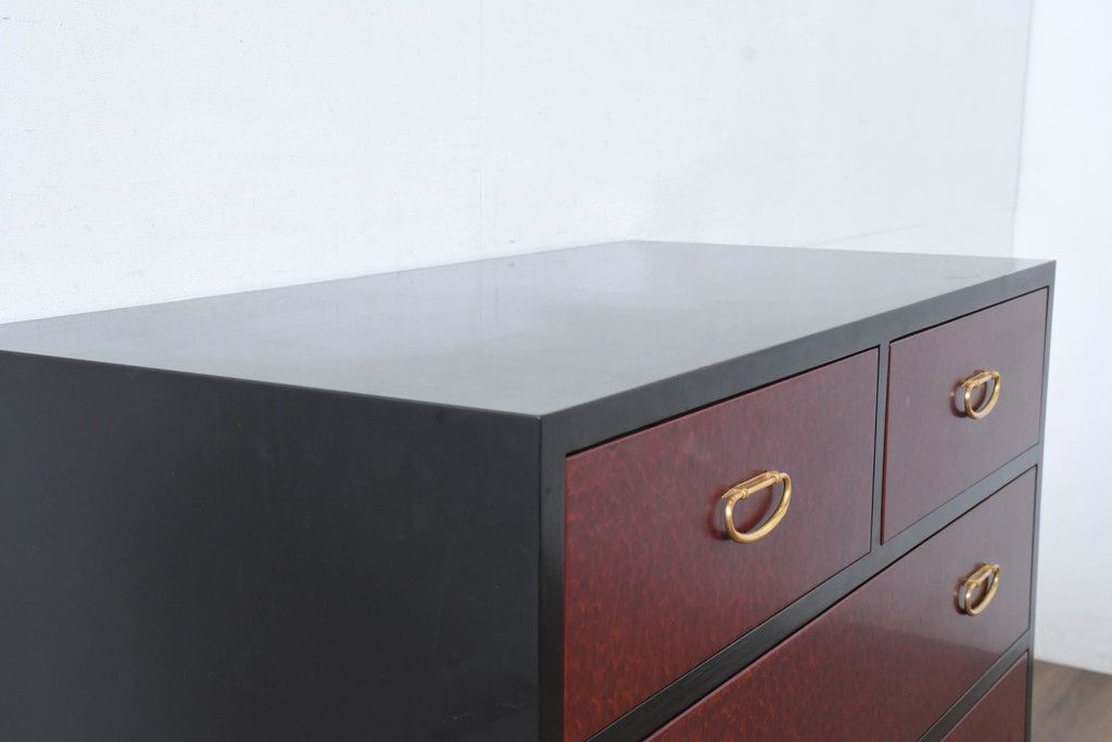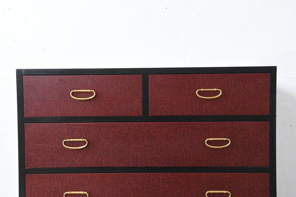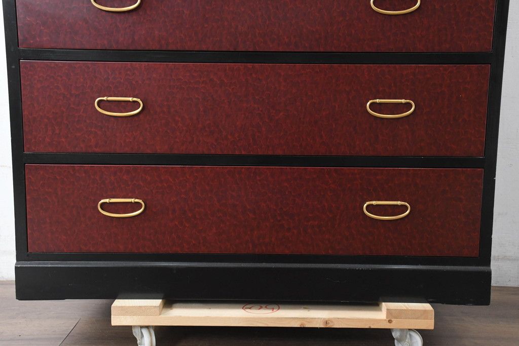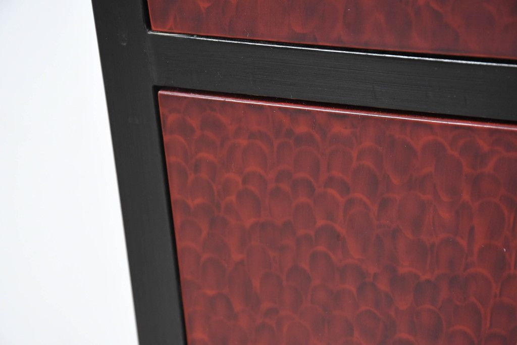 和箪笥> 衣装箪笥 > 中古 美品 高級品 内部桐材 前面赤漆の「鱗(うろこ)塗り」とスタイリッシュな真鍮金具が魅力的な和モダンチェスト(桐箪笥、桐たんす、サイドチェスト、衣装箪笥、収納タンス、引き出し)(R-084507)