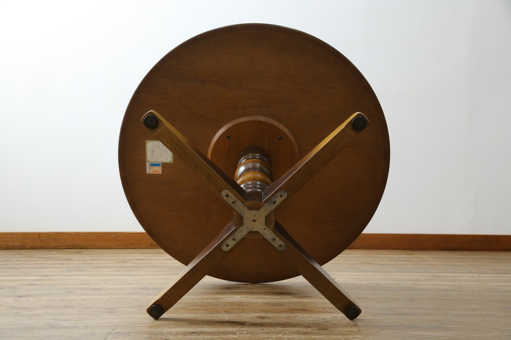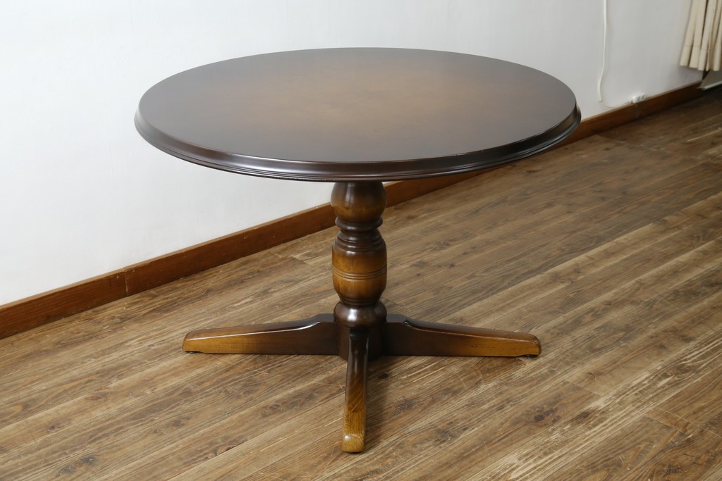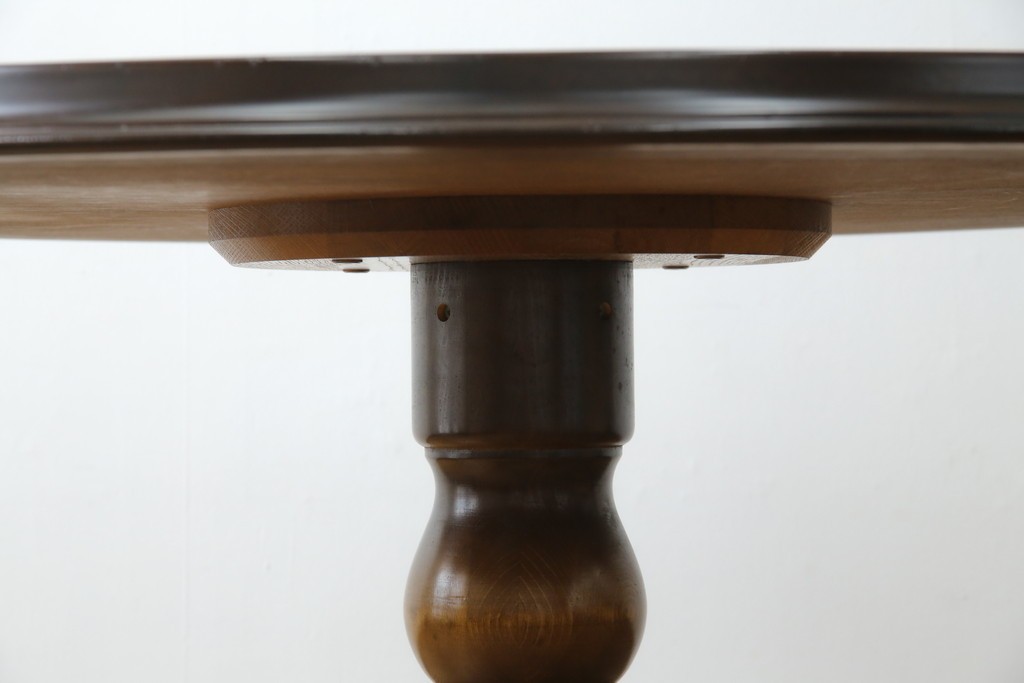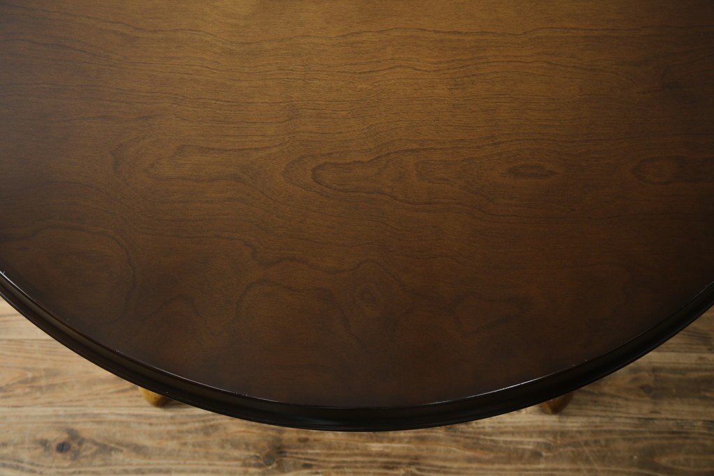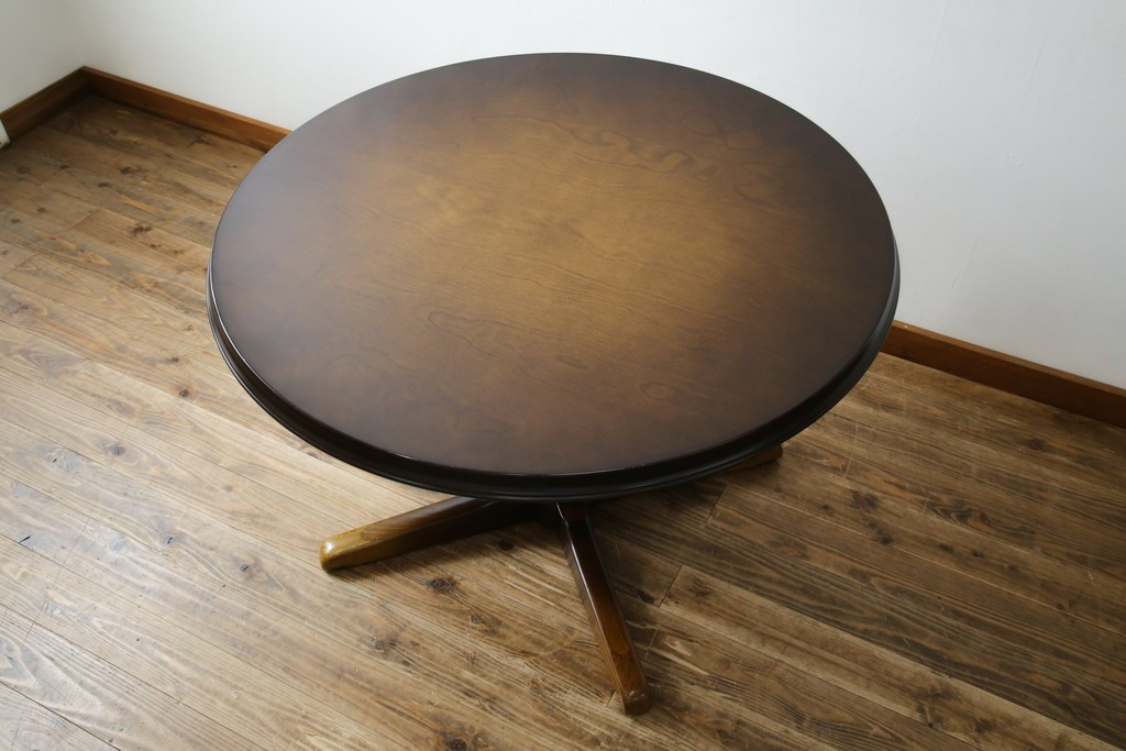 上質な作りで人気のある国産ブランド、キツツキマークがトレードマークの飛騨産業の丸テーブルです。