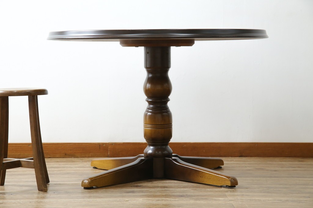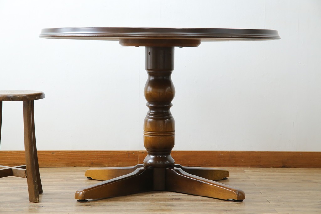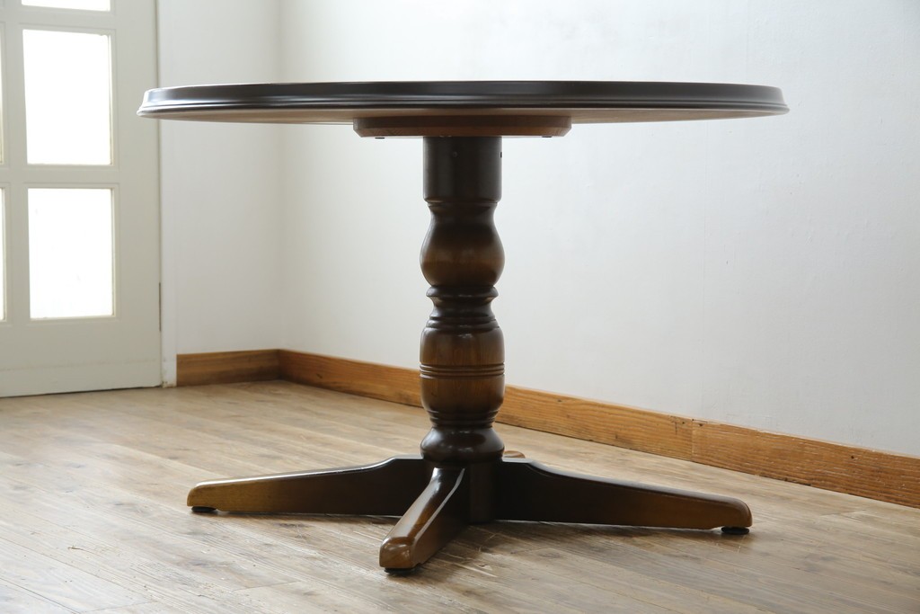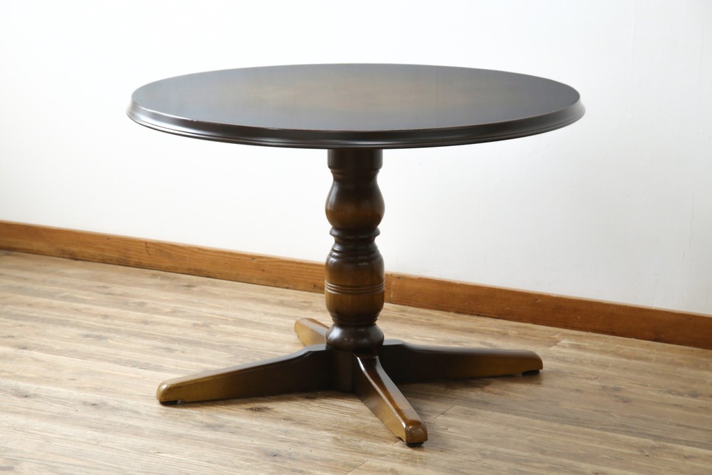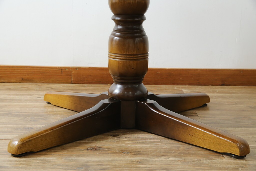 上質な作りで人気のある国産ブランド、キツツキマークがトレードマークの飛騨産業の丸テーブルです。