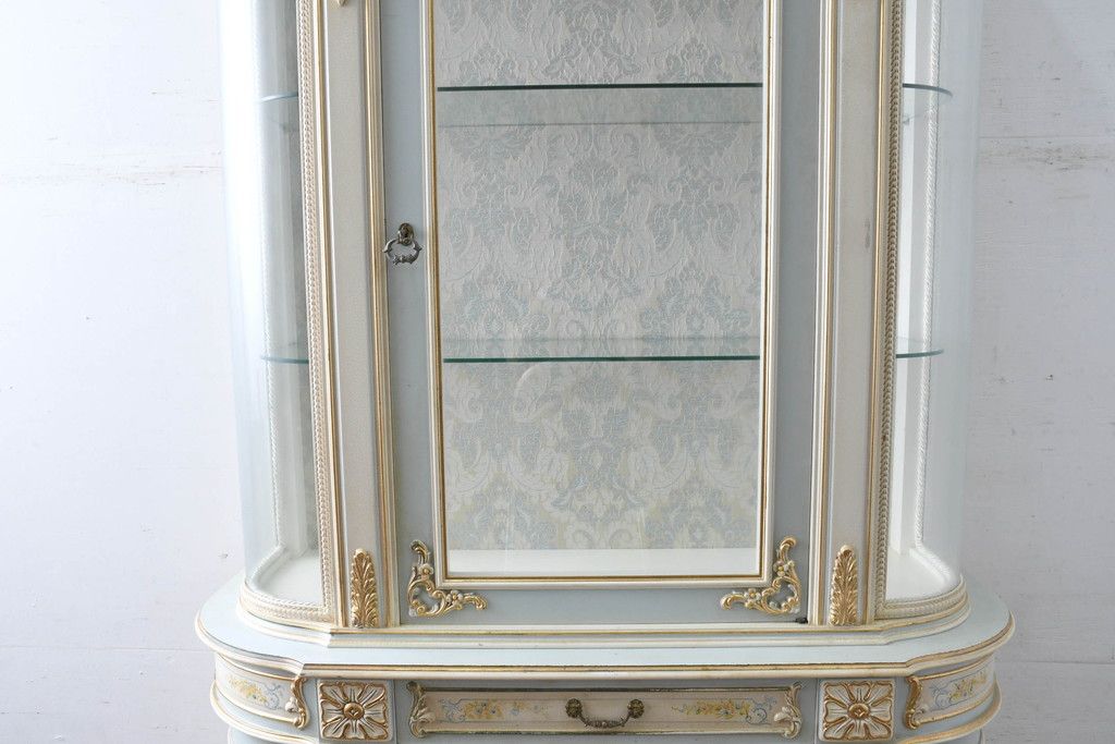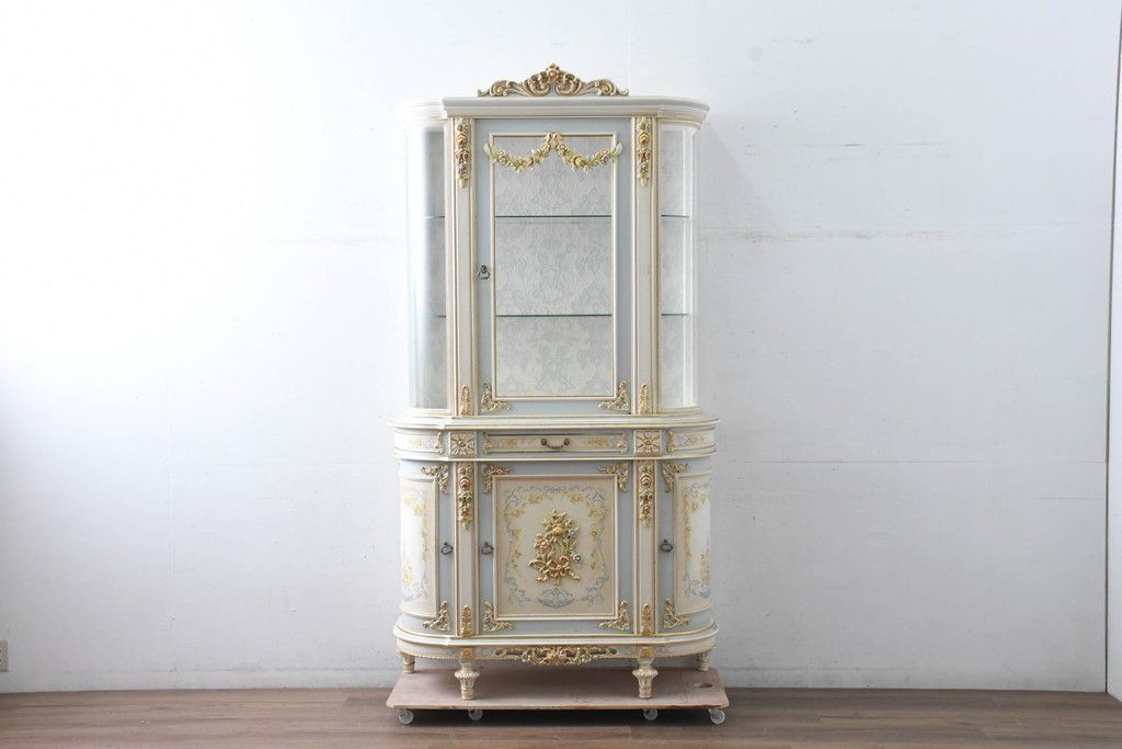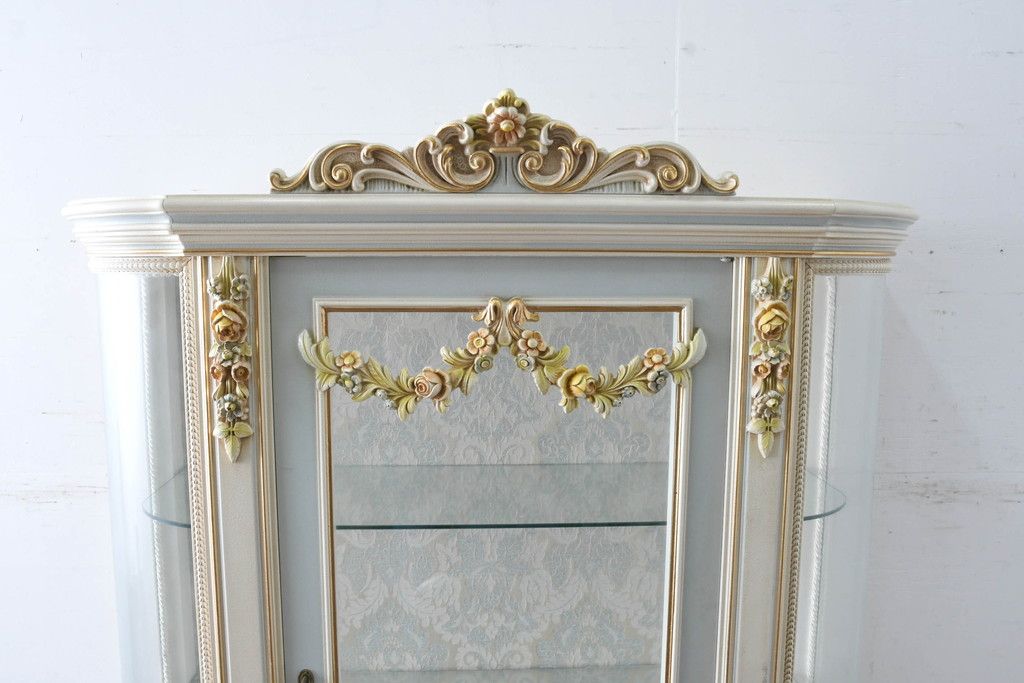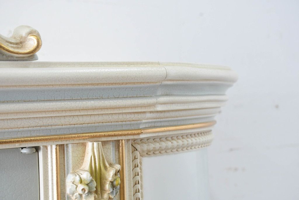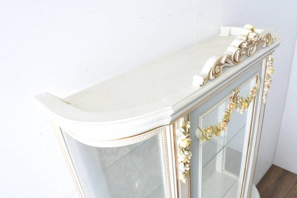 キャビネット・戸棚 > 中古 イタリア高級家具 ロココ調 Mario Colciago&Figli(マリオ・コルチャゴ) Fratelli Origgi(フラテッリ・オリッジ) 曲線を活かした優雅なフォルムと装飾が魅力的なガラスキャビネット(キュリオケース、ガラスケース、ショーケース、飾り棚、Rガラス、曲げガラス、店舗什器)(定価約180万円)(R-084512)