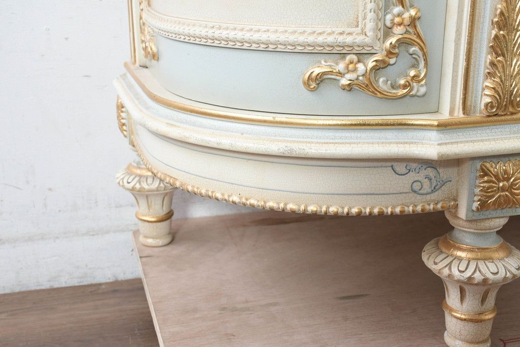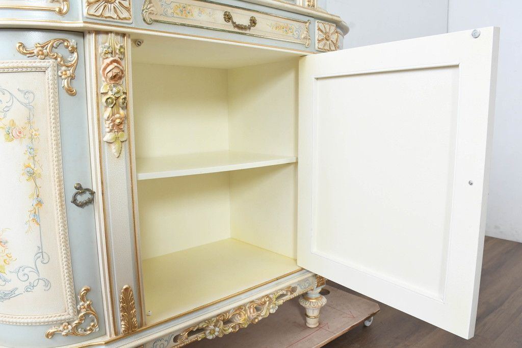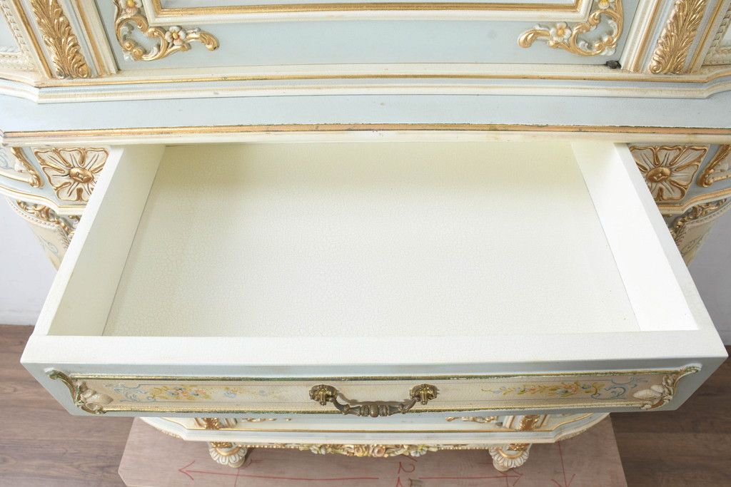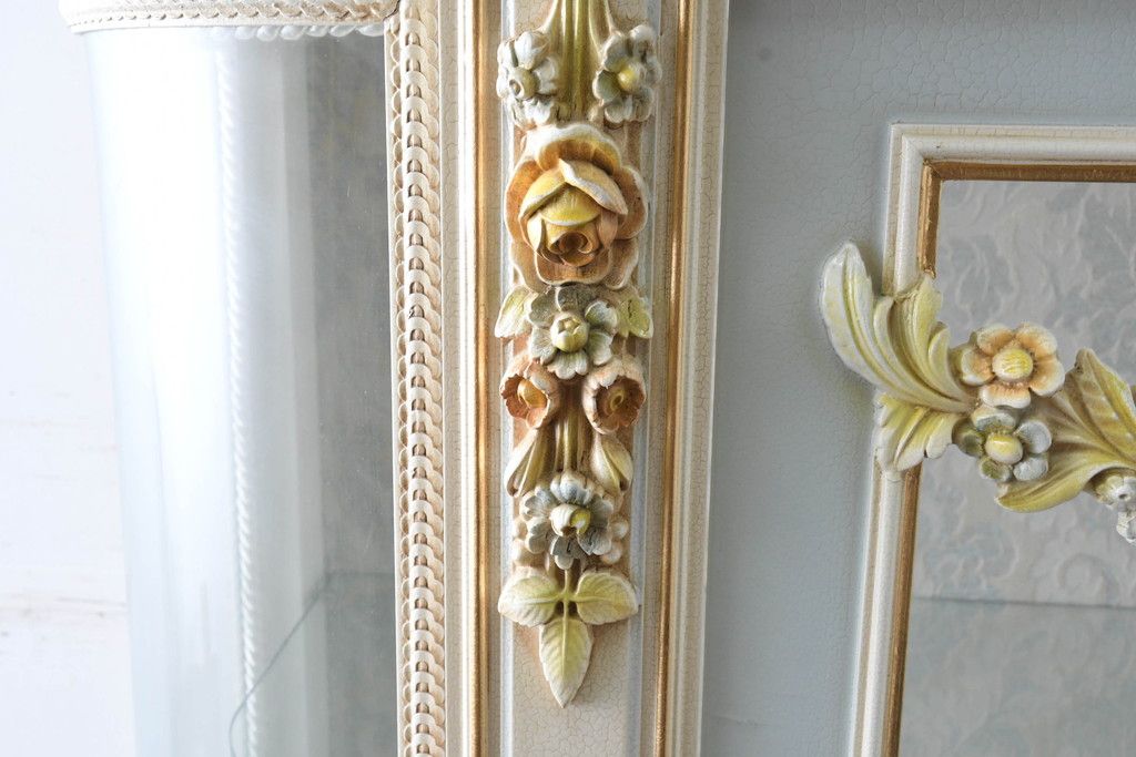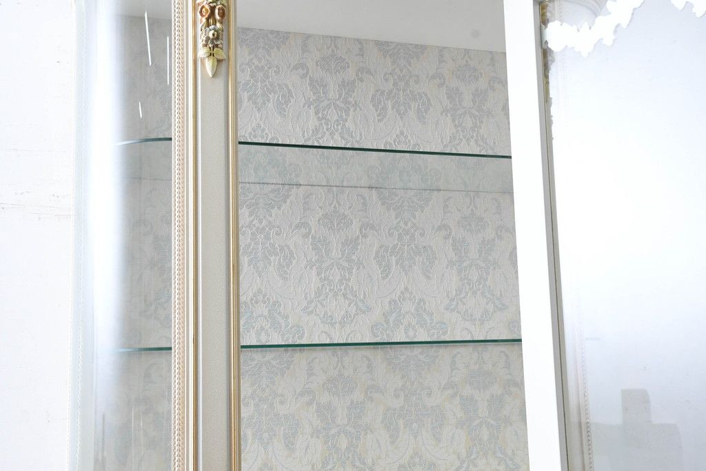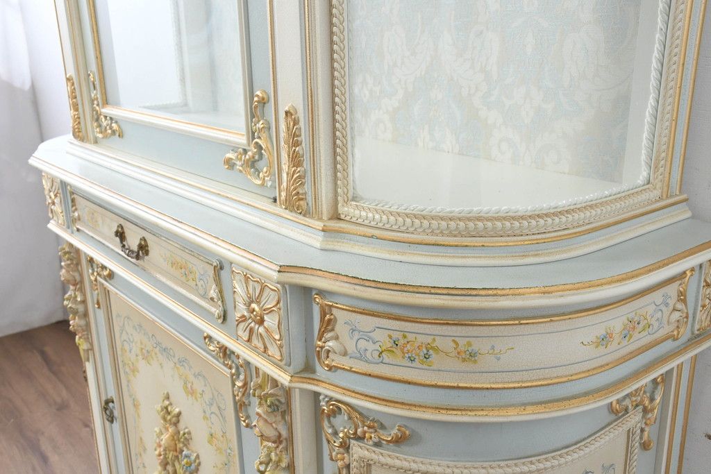 キャビネット・戸棚 > 中古 イタリア高級家具 ロココ調 Mario Colciago&Figli(マリオ・コルチャゴ) Fratelli Origgi(フラテッリ・オリッジ) 曲線を活かした優雅なフォルムと装飾が魅力的なガラスキャビネット(キュリオケース、ガラスケース、ショーケース、飾り棚、Rガラス、曲げガラス、店舗什器)(定価約180万円)(R-084512)