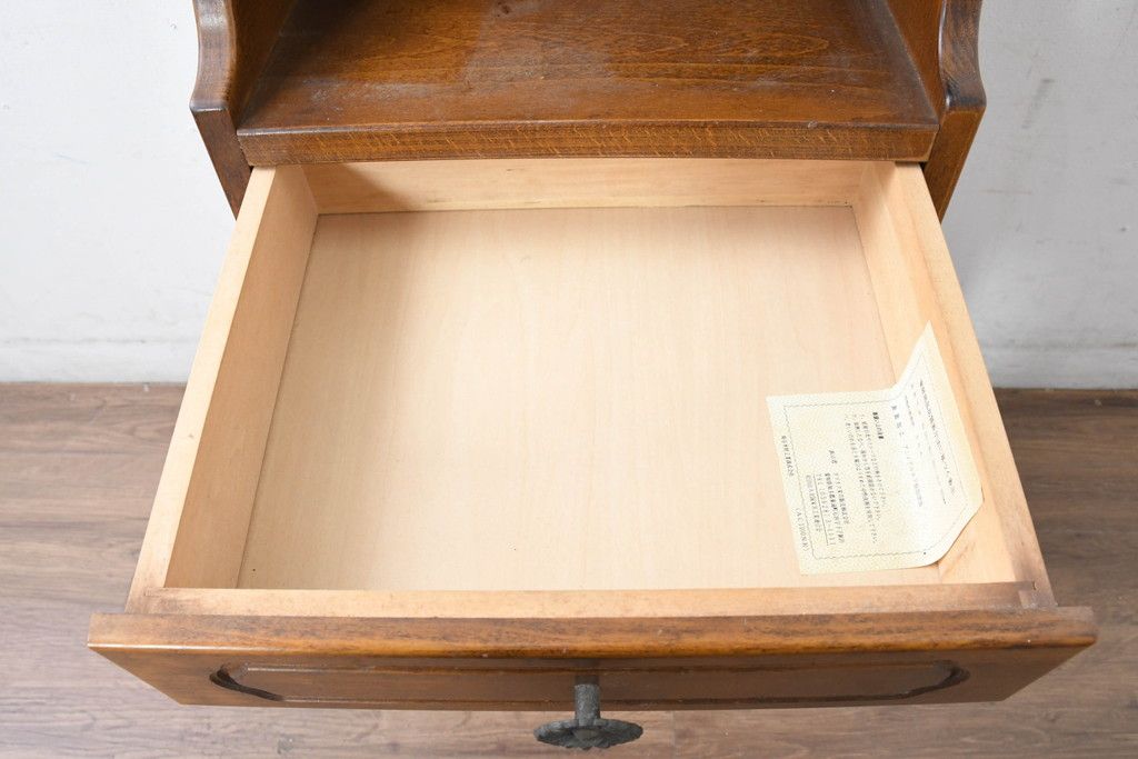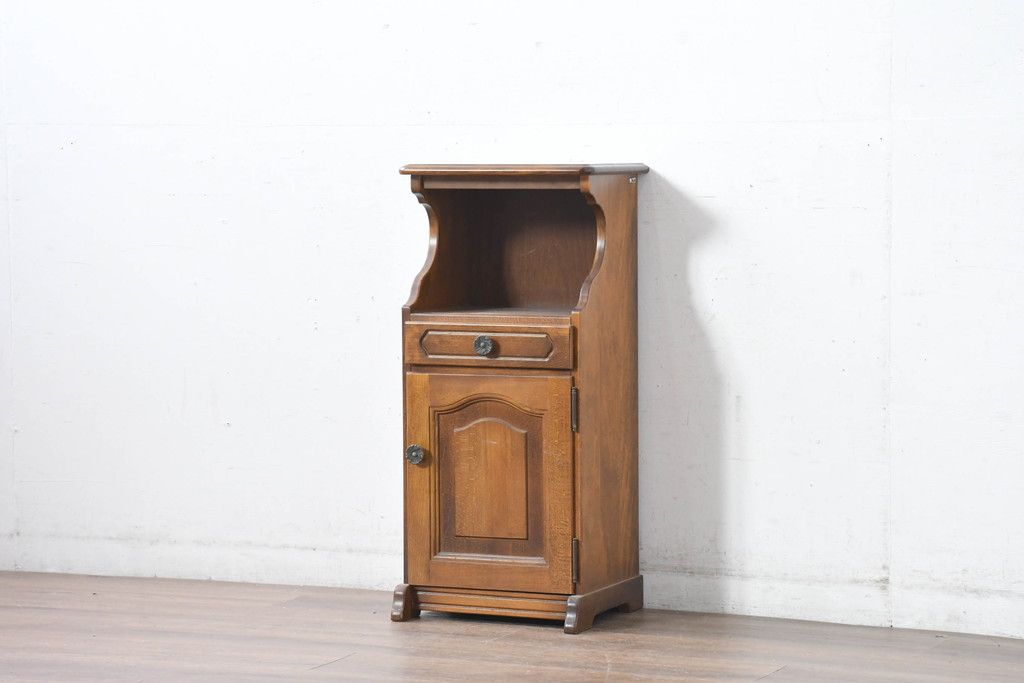 中古 美品 オールドカリモク カリモク家具(karimoku) COLONIAL(コロニアル)シリーズ クラシカルな佇まいの電話台(花台、飾り台、サイドキャビネット)(R-084514)
