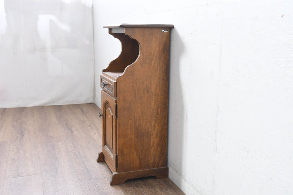 花台・飾り台 > 中古 美品 オールドカリモク カリモク家具(karimoku) COLONIAL(コロニアル)シリーズ クラシカルな佇まいの電話台(花台、飾り台、サイドキャビネット)(R-084514)