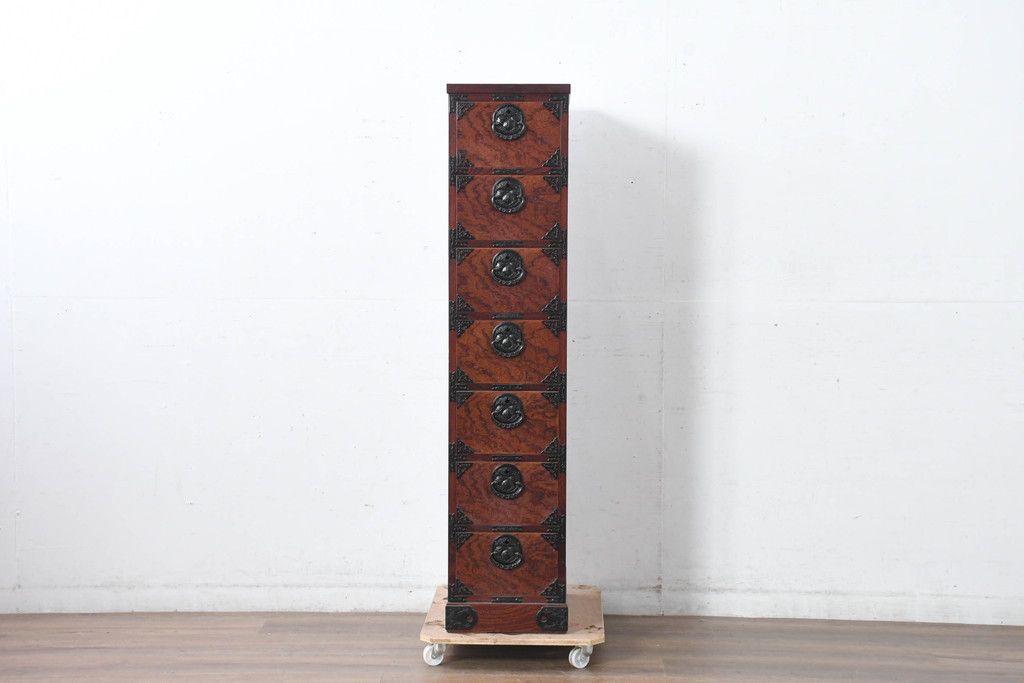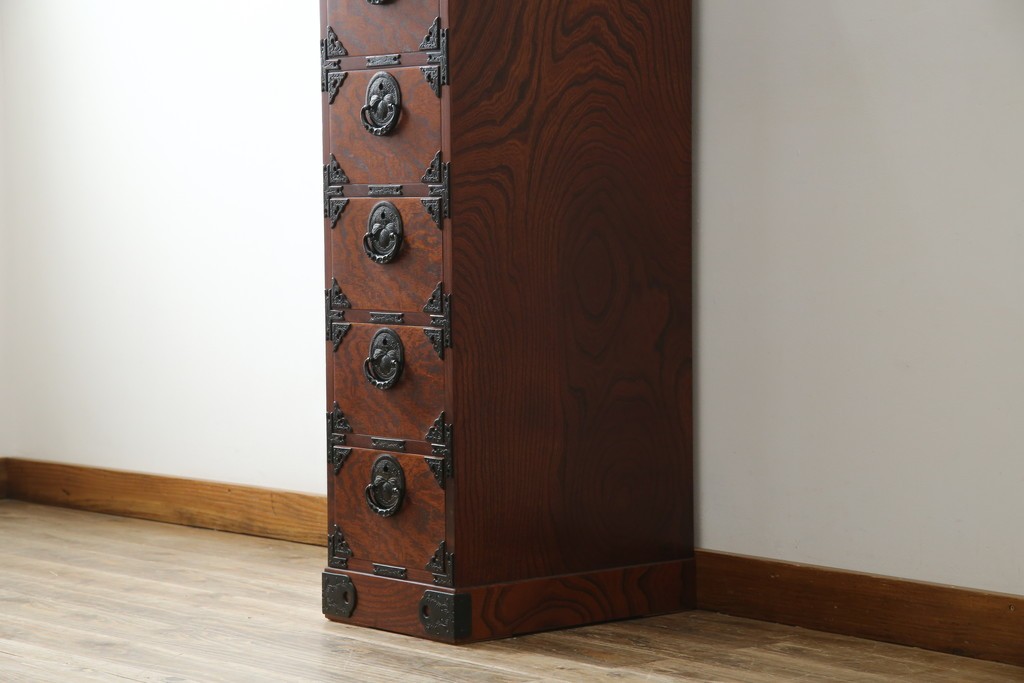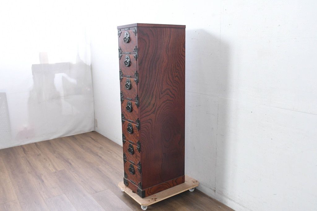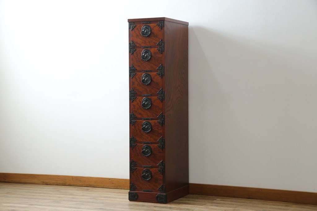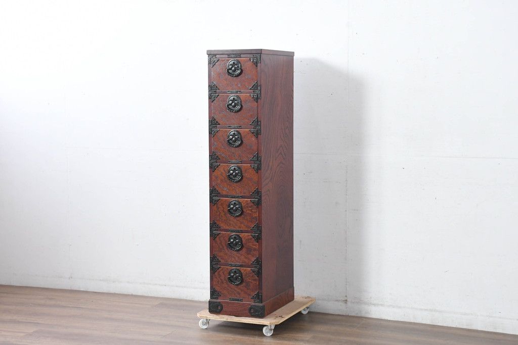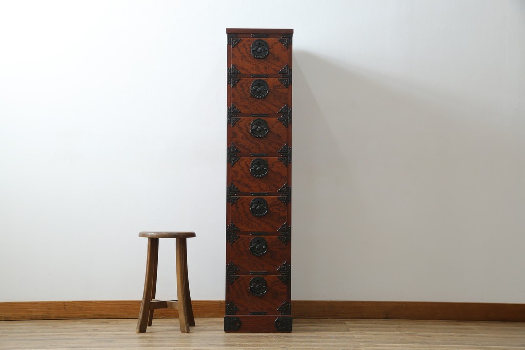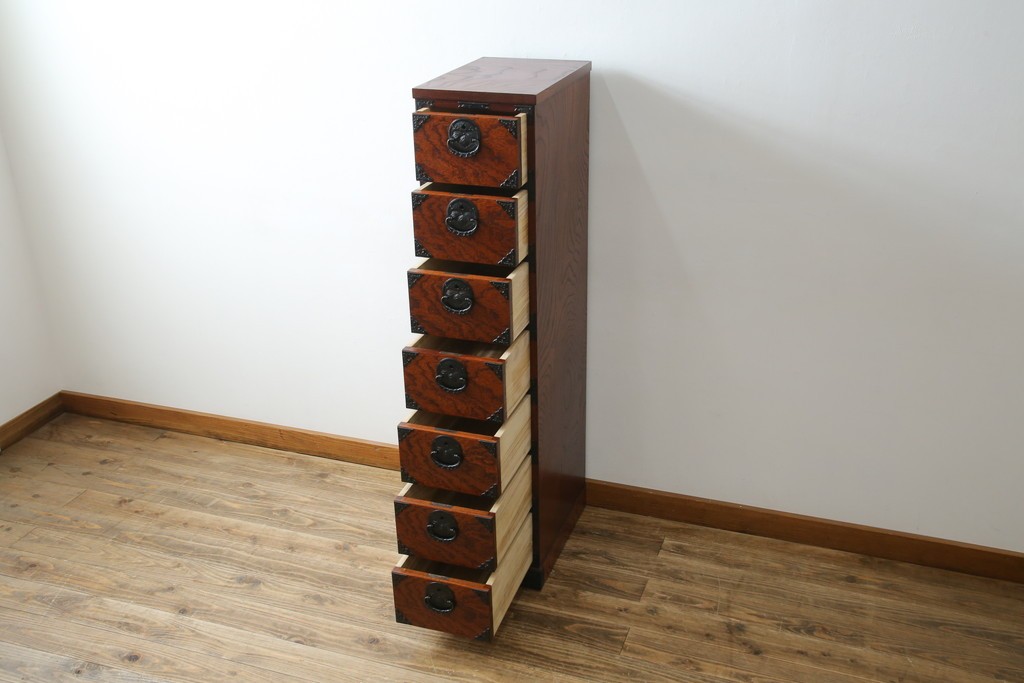 和箪笥 > 中古 美品 岩谷堂箪笥 希少サイズ!! 力強い杢目と立派な金具が存在感を放つ7段立たんす(縦型、和タンス、整理箪笥、収納箪笥、サイドチェスト)(R-084515)