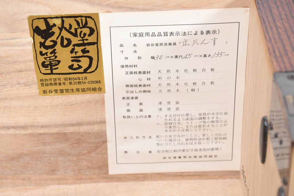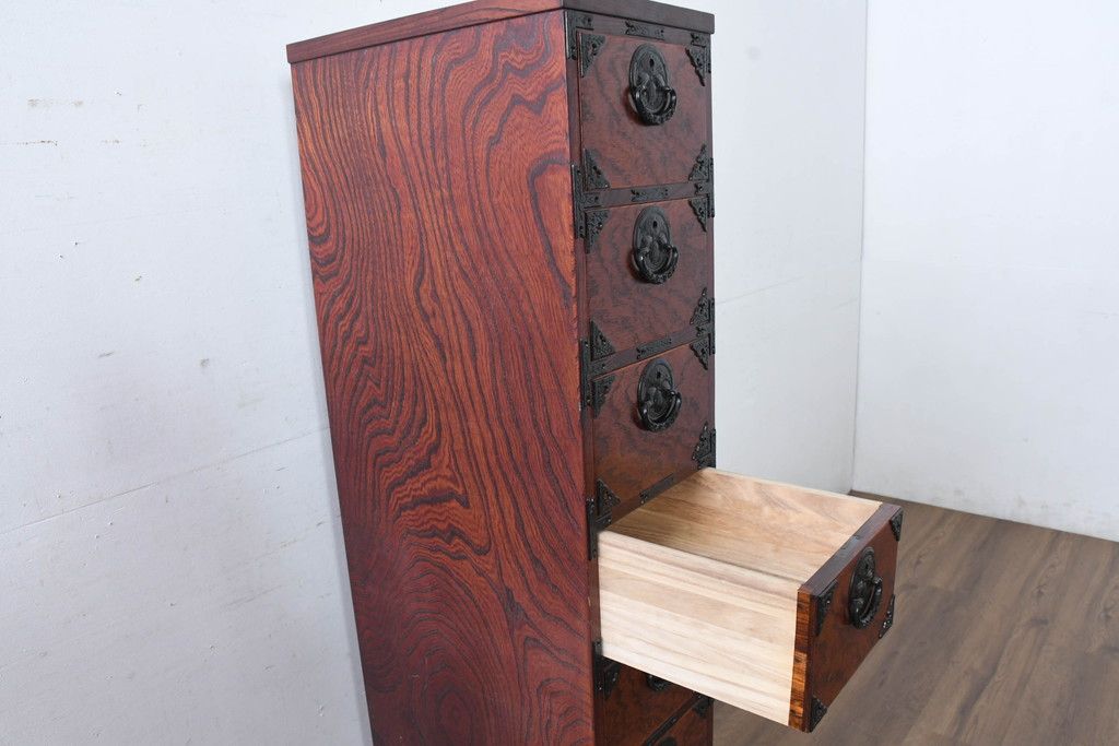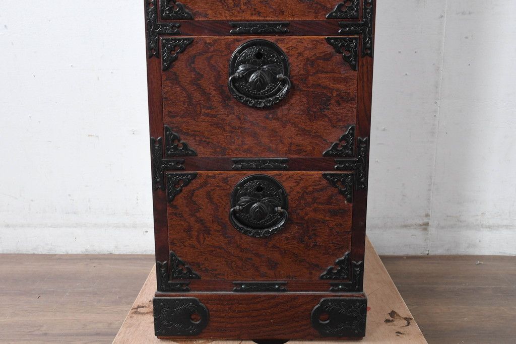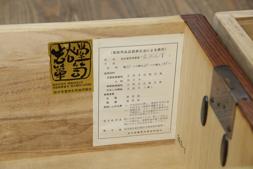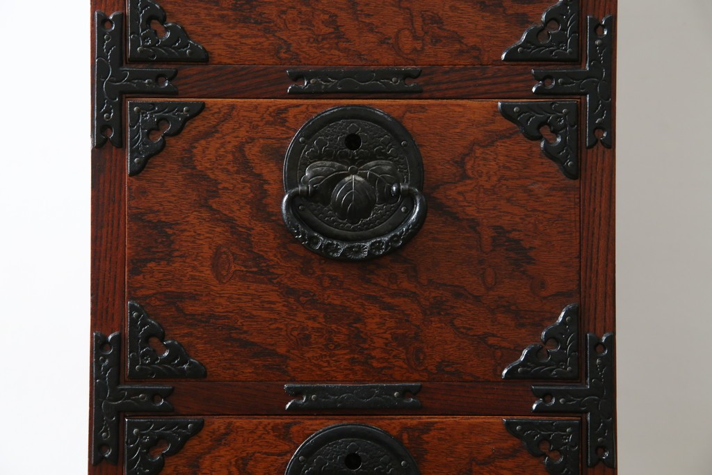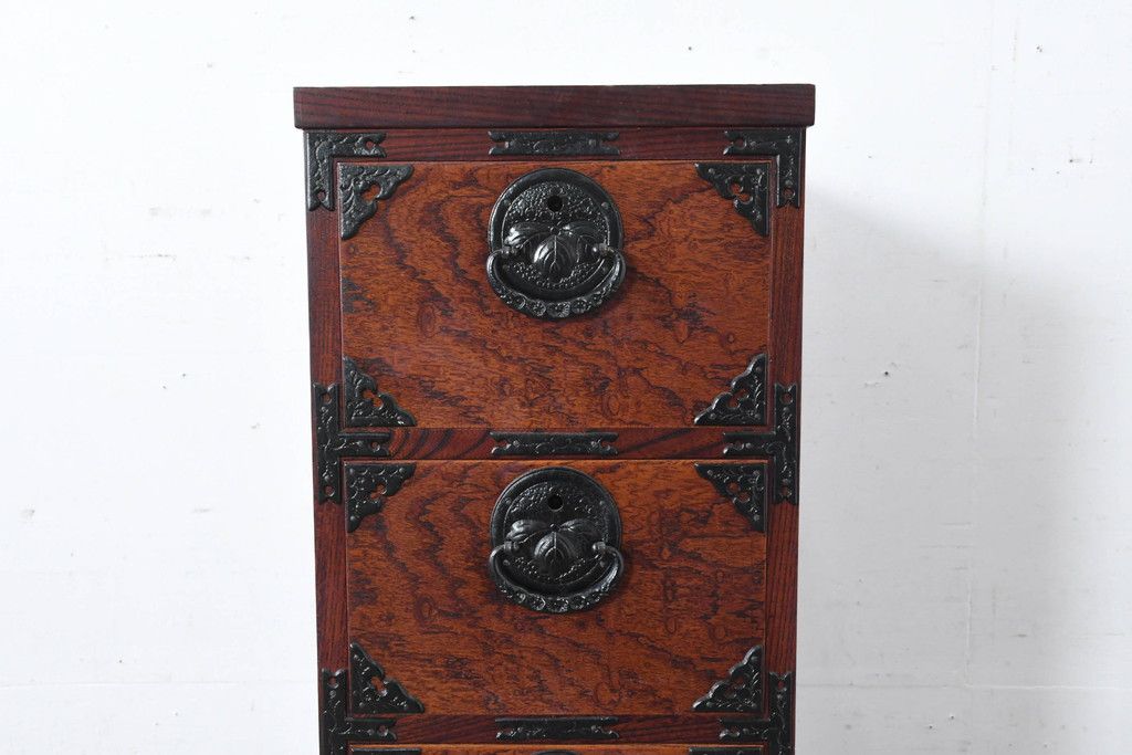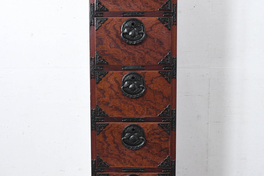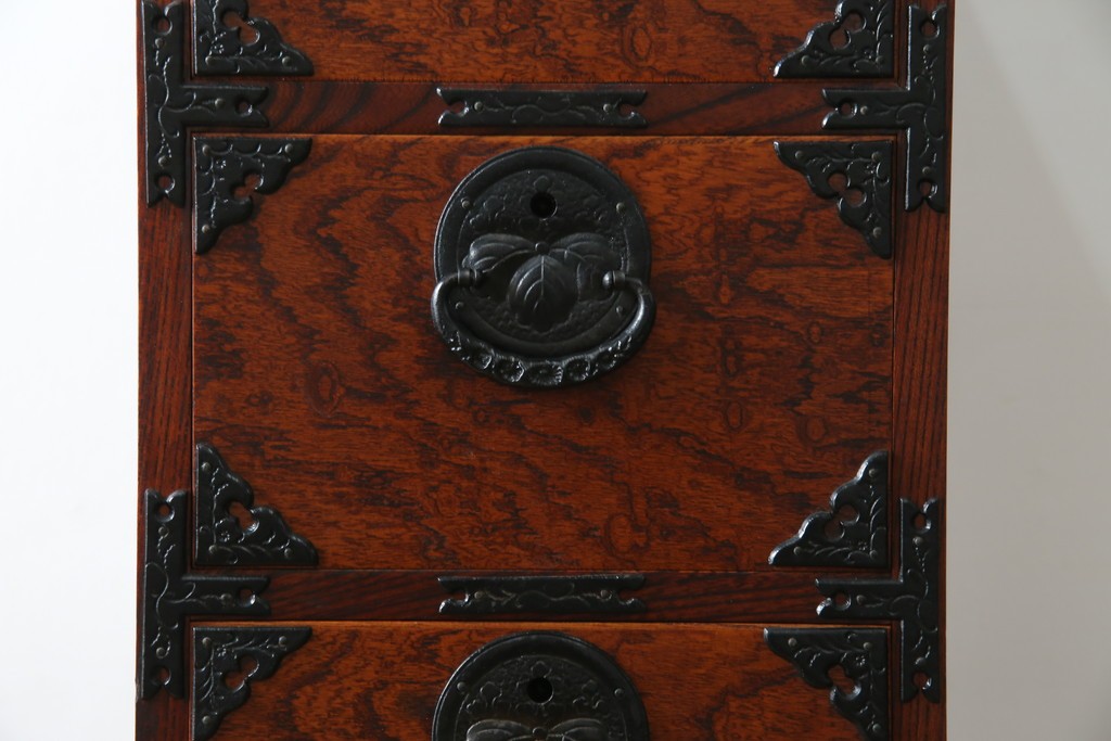 和箪笥 > 中古 美品 岩谷堂箪笥 希少サイズ!! 力強い杢目と立派な金具が存在感を放つ7段立たんす(縦型、和タンス、整理箪笥、収納箪笥、サイドチェスト)(R-084515)