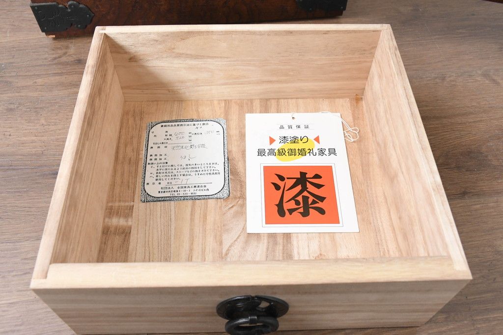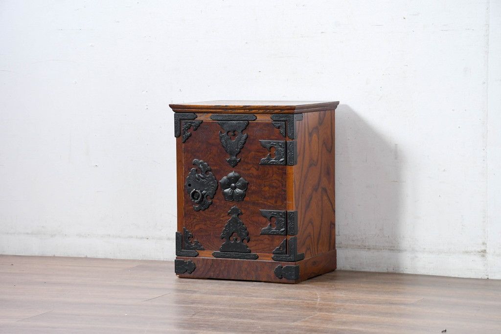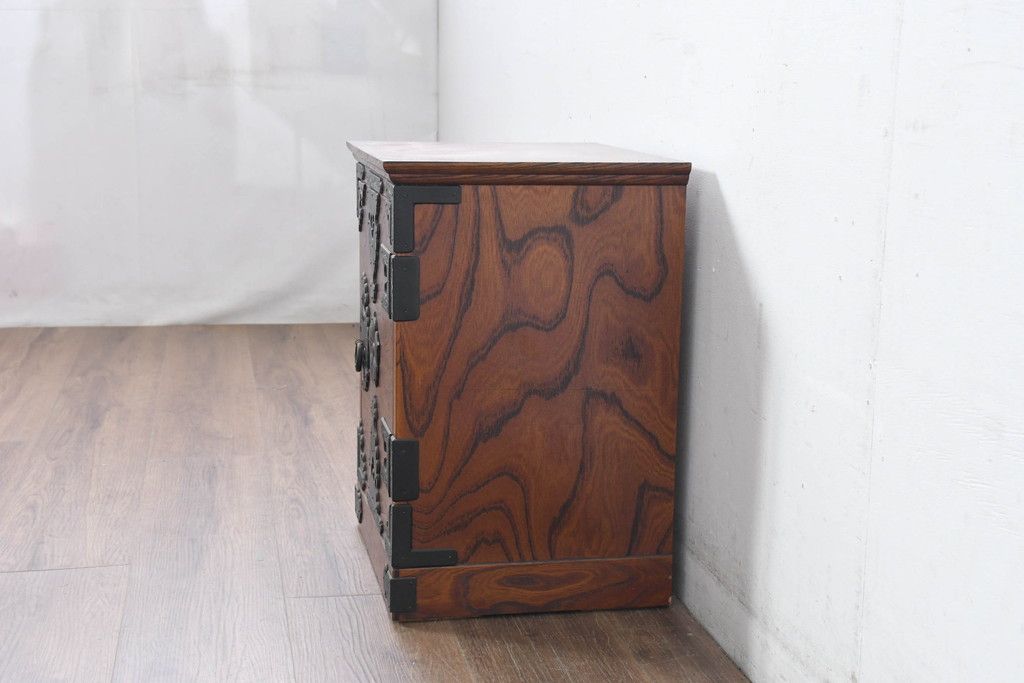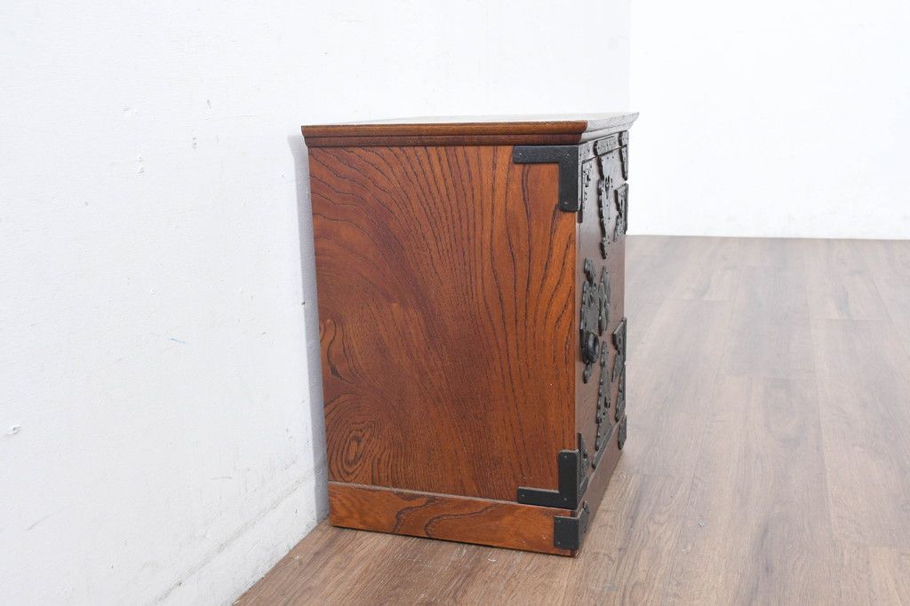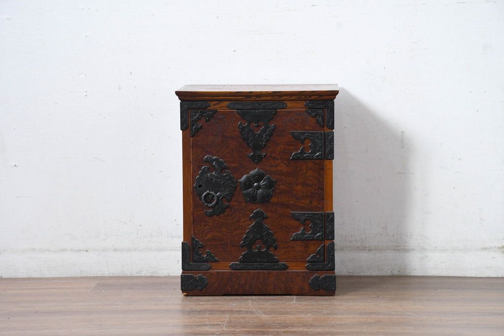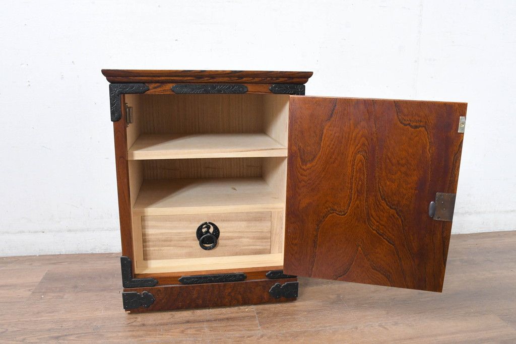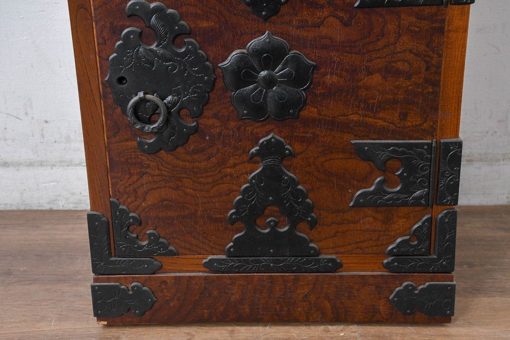 中古 美品 岩谷堂箪笥 黒々とした立派な金具が目を引く伝統と格式を纏う小箪笥(小型開き戸箪笥、船箪笥、小引き出し、小物収納)(R-084517)