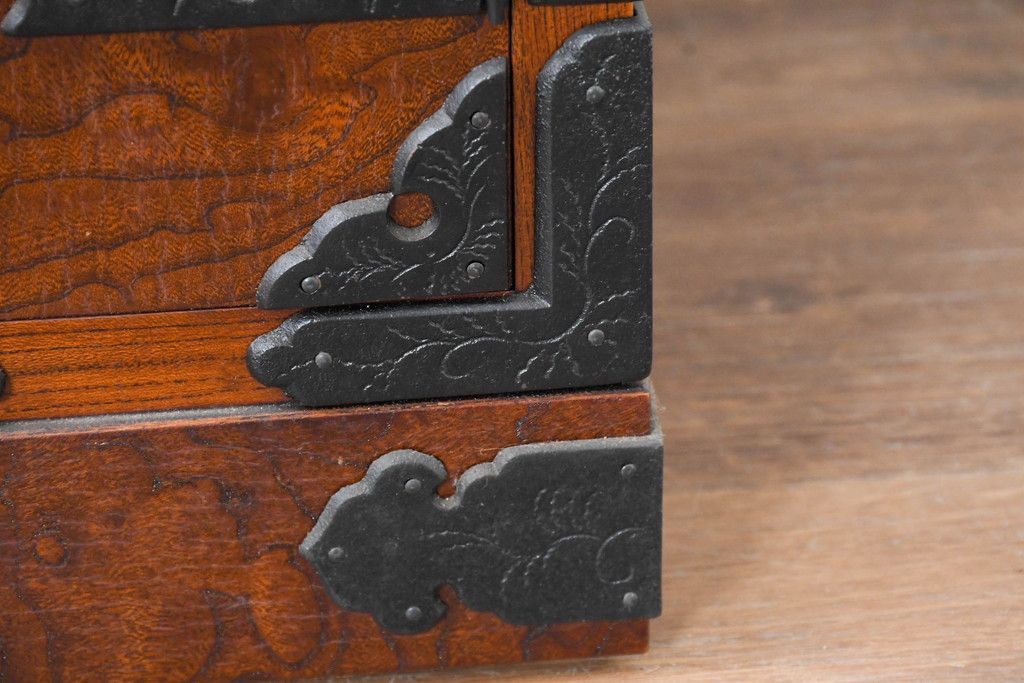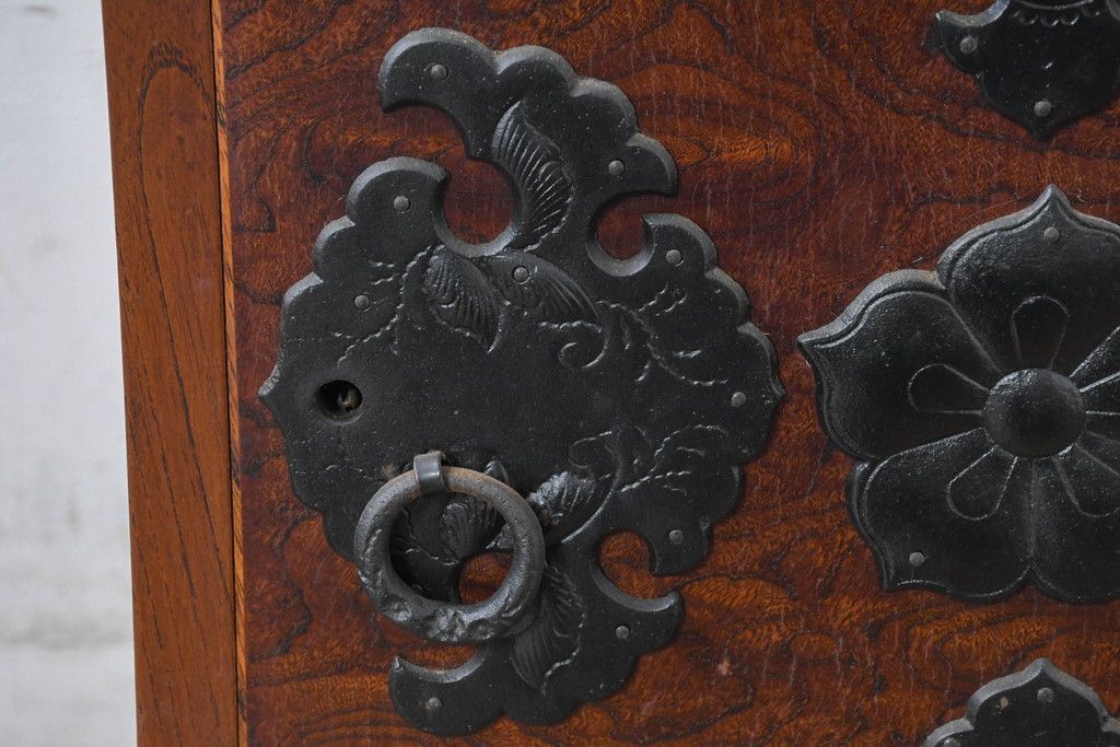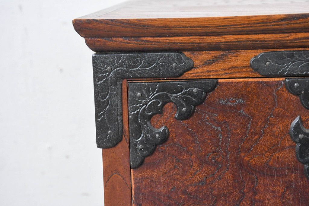 和箪笥> 小箪笥 > 中古 美品 岩谷堂箪笥 黒々とした立派な金具が目を引く伝統と格式を纏う小箪笥(小型開き戸箪笥、船箪笥、小引き出し、小物収納)(R-084517)