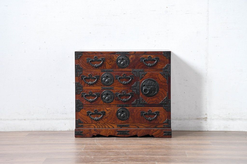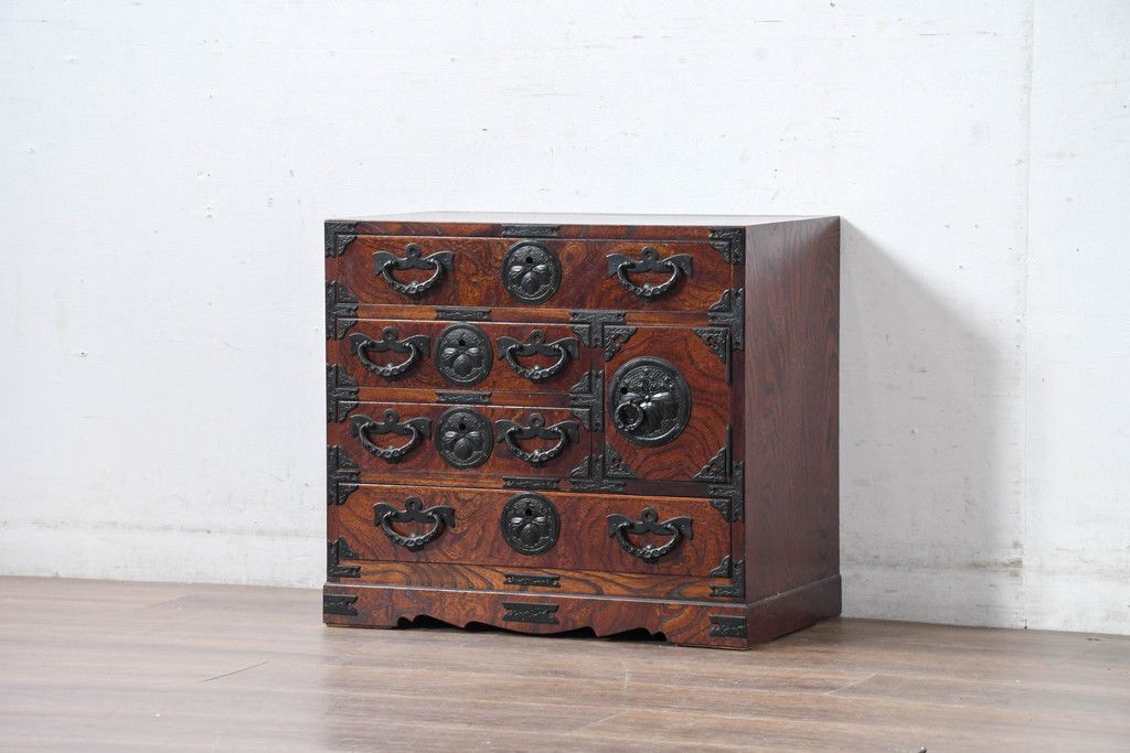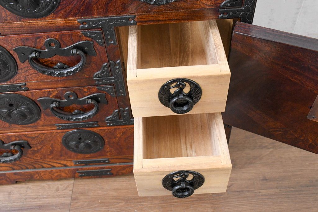 中古 美品 岩谷堂箪笥 小物整理におすすめ!迫力のある金具が目を引く極小箪笥(収納タンス、引き出し、チェスト、小物収納)(R-084519)
