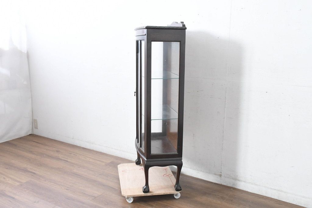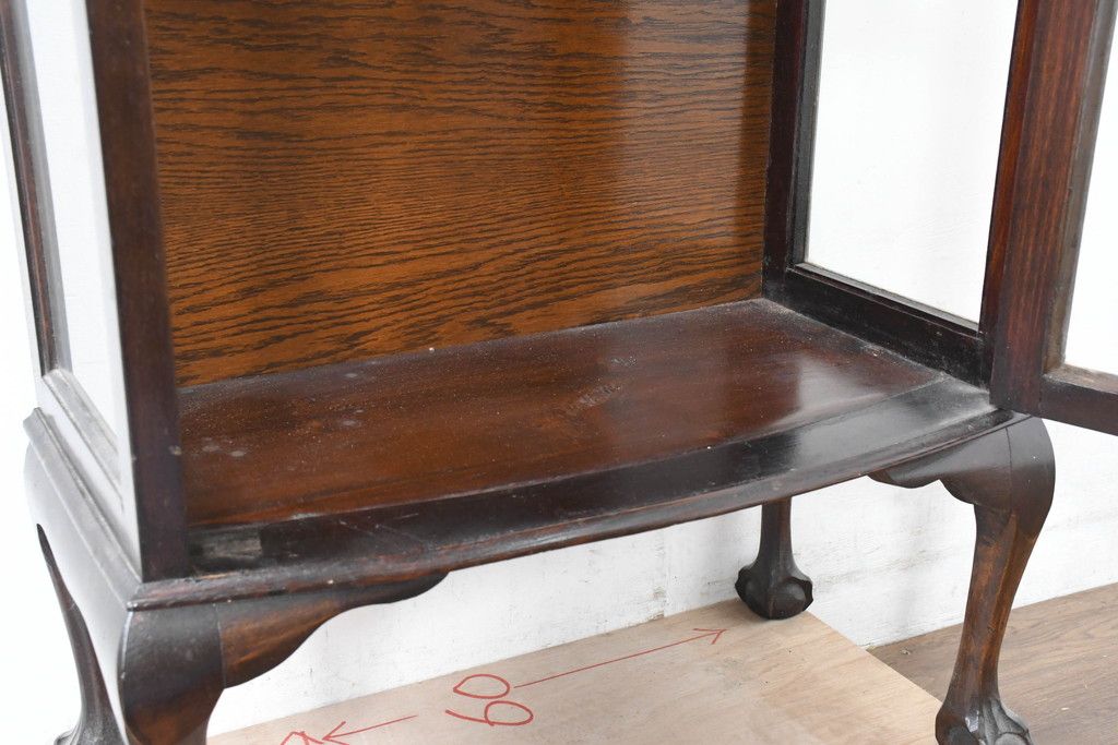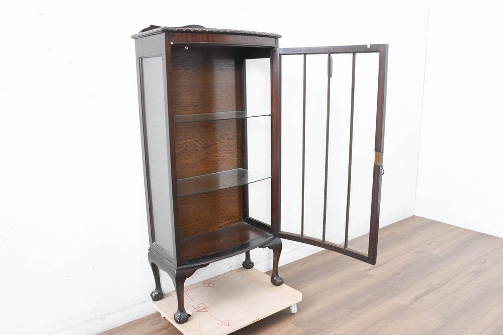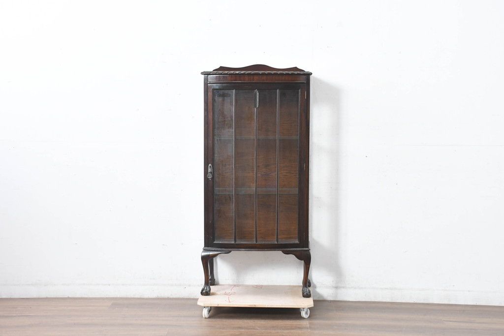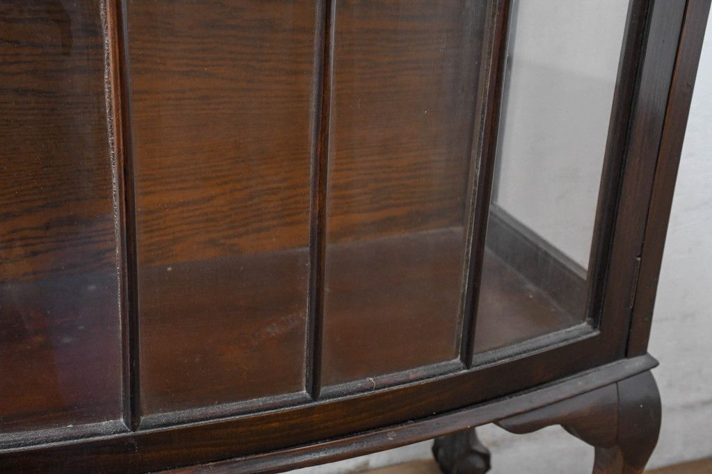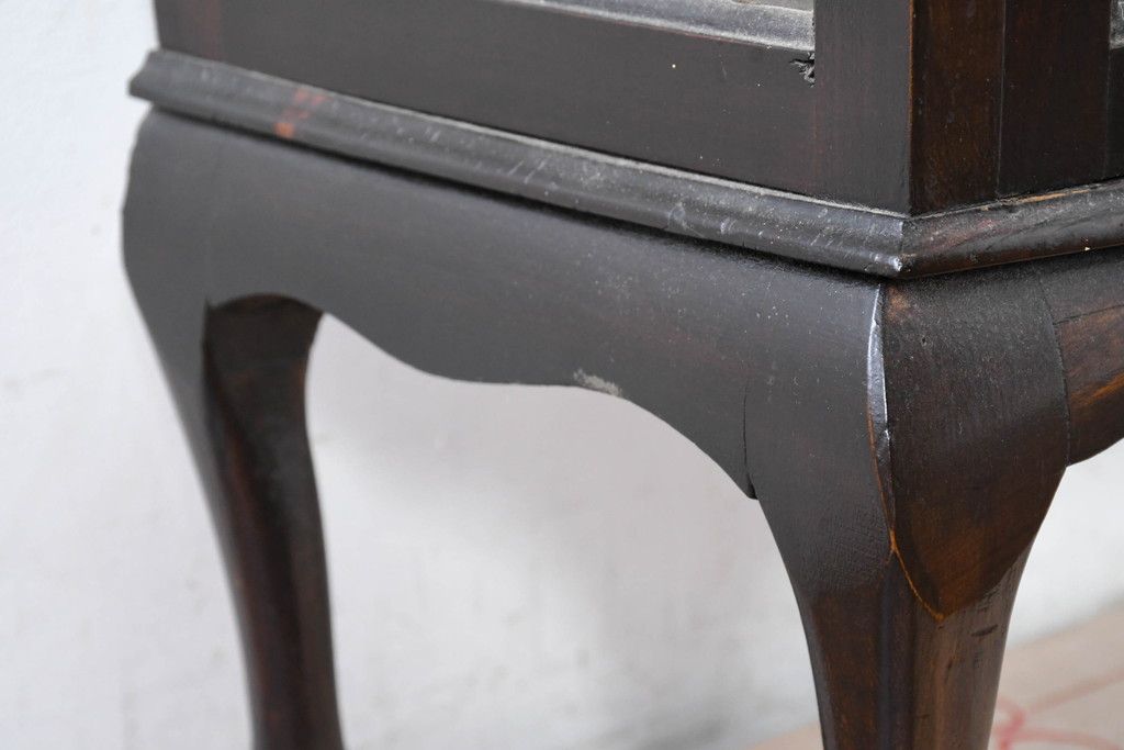 ガラスケース・ショーケース> コレクションケース > イギリスアンティーク 小振りサイズ!!エレガントな曲線を描く猫脚が優雅さを高めるガラスキャビネット(ガラスケース、コレクションケース、ショーケース、飾り棚、陳列棚、収納棚、戸棚、店舗什器、英国)(R-084522)