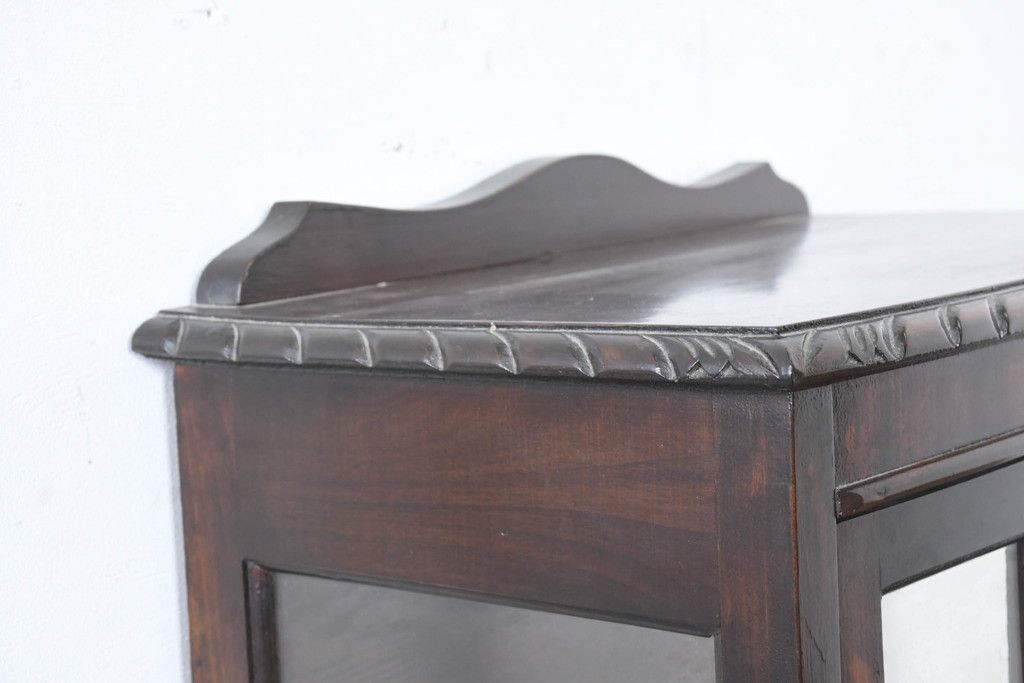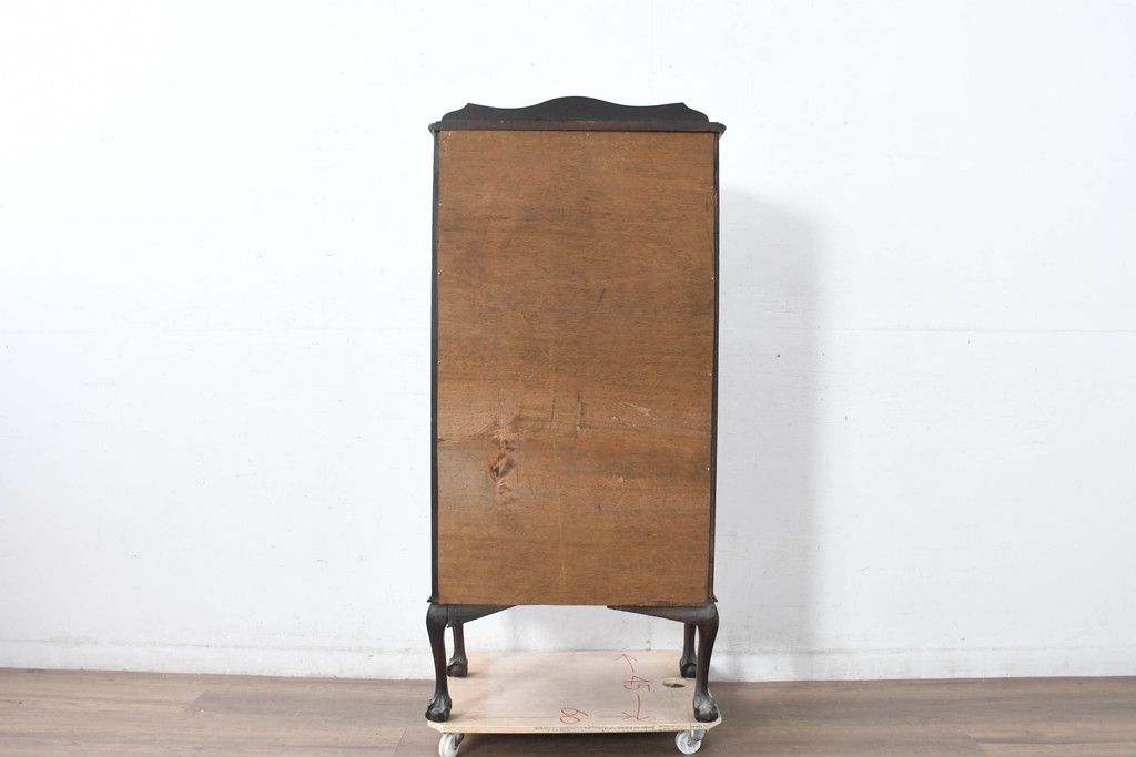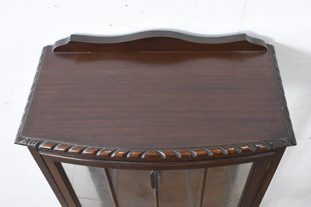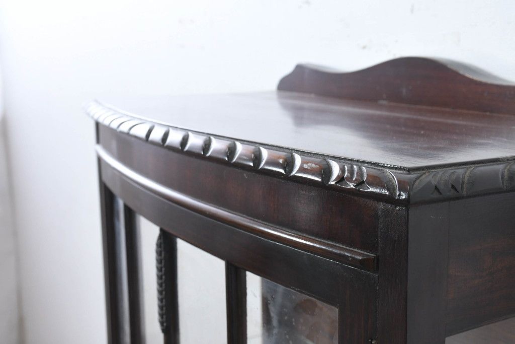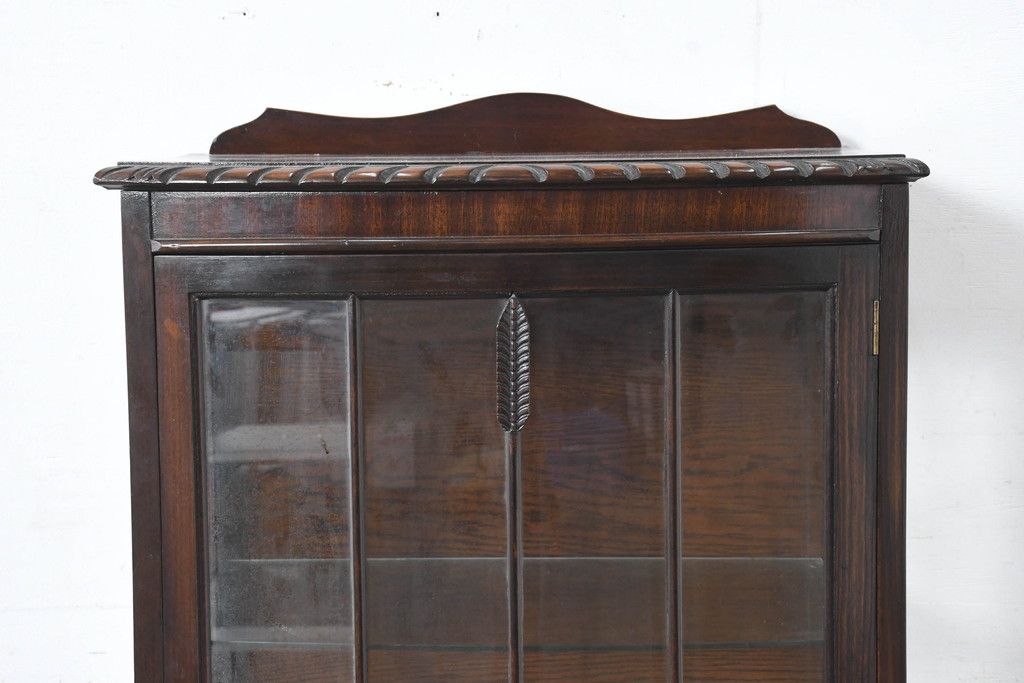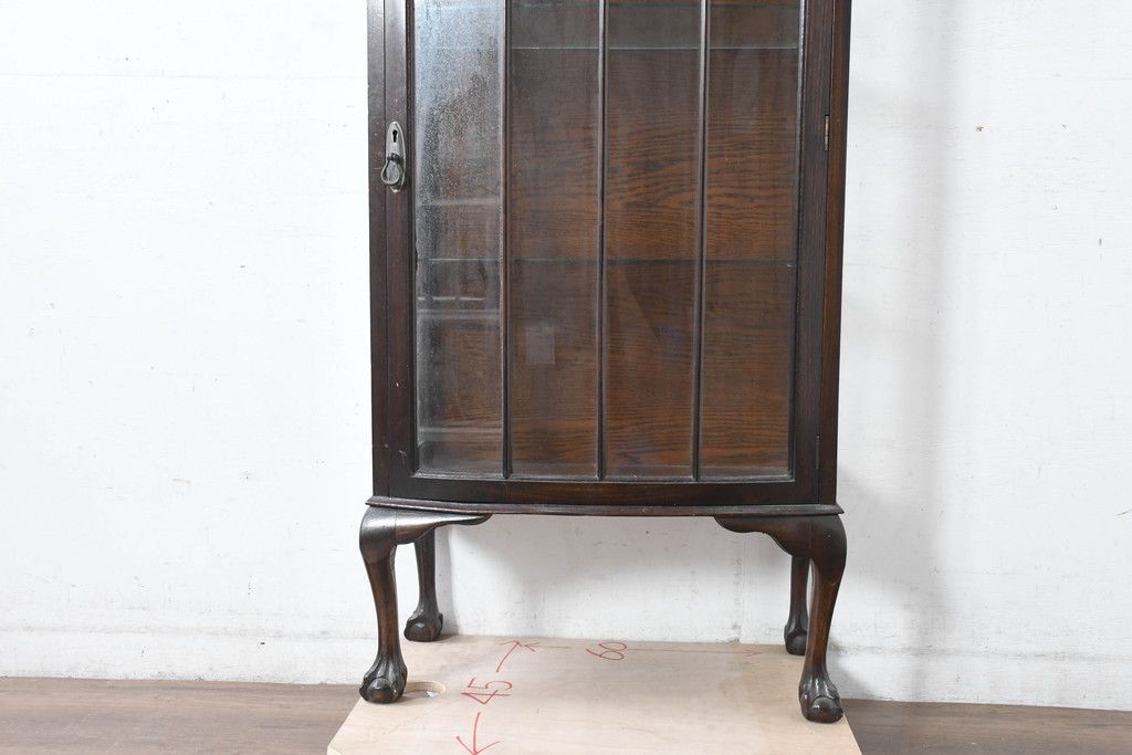 ガラスケース・ショーケース> コレクションケース > イギリスアンティーク 小振りサイズ!!エレガントな曲線を描く猫脚が優雅さを高めるガラスキャビネット(ガラスケース、コレクションケース、ショーケース、飾り棚、陳列棚、収納棚、戸棚、店舗什器、英国)(R-084522)