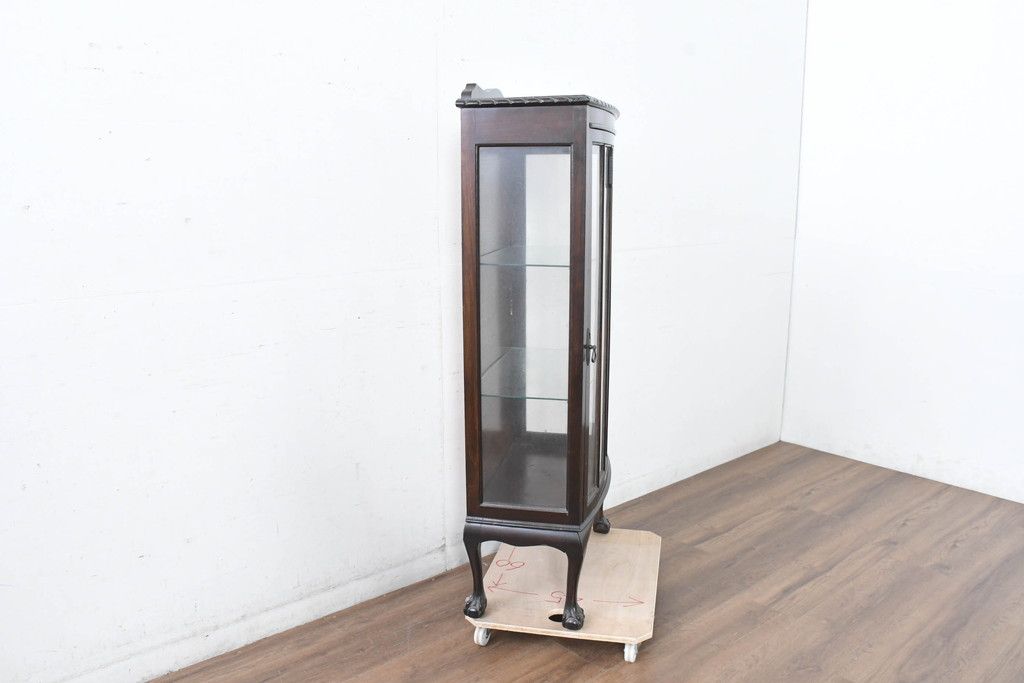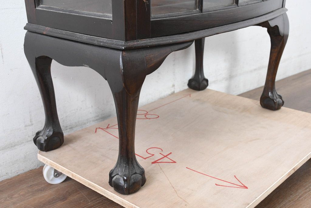 イギリスアンティーク 小振りサイズ!!エレガントな曲線を描く猫脚が優雅さを高めるガラスキャビネット(ガラスケース、コレクションケース、ショーケース、飾り棚、陳列棚、収納棚、戸棚、店舗什器、英国)(R-084522)