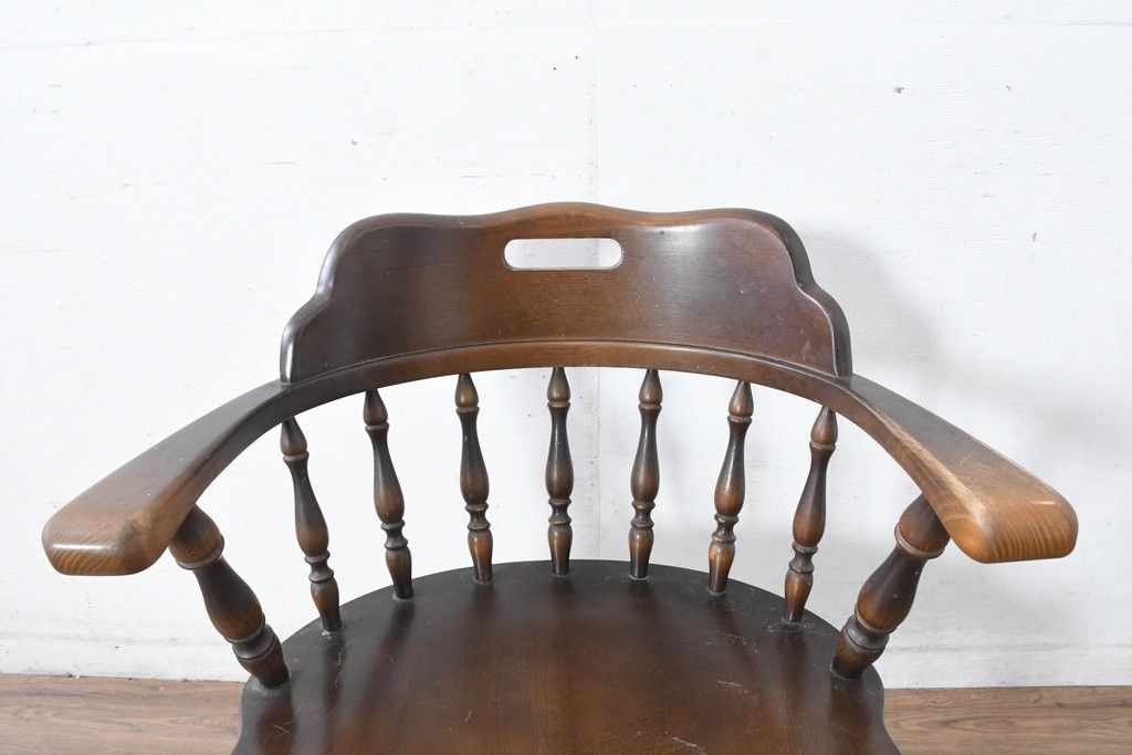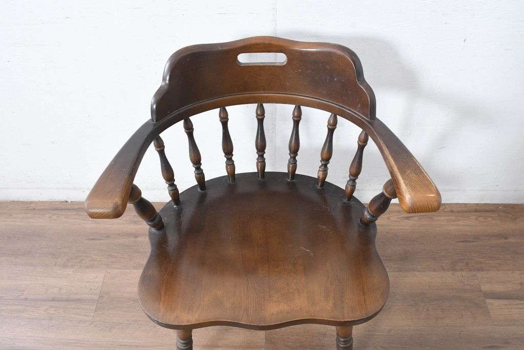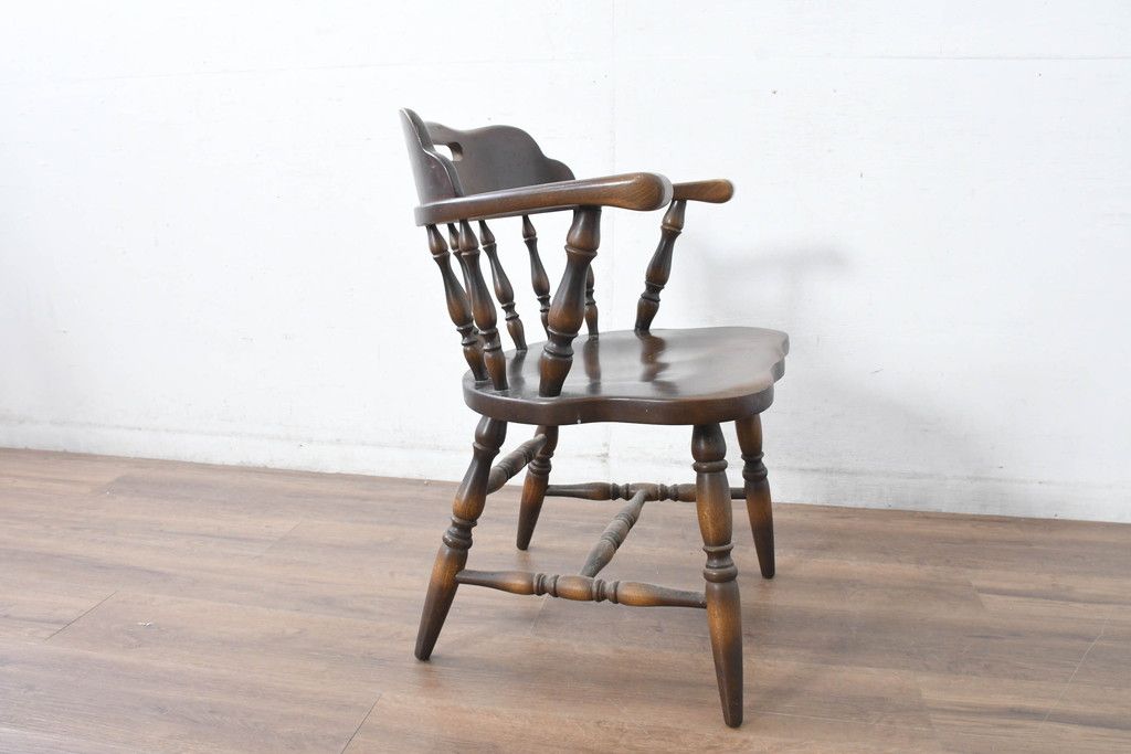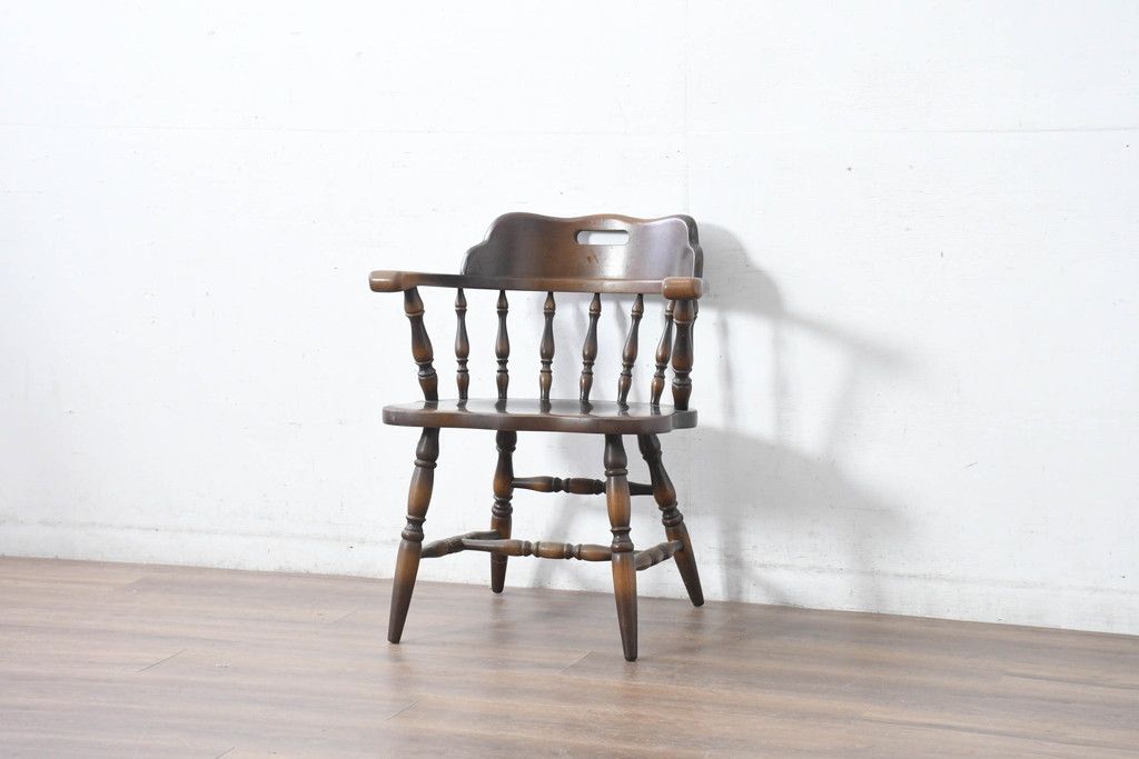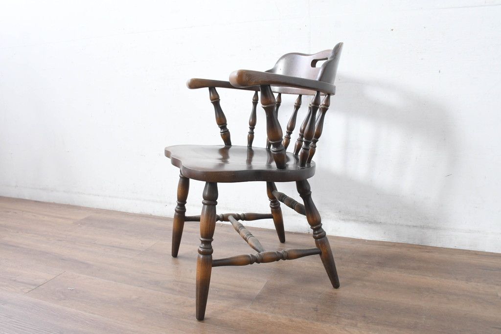 椅子・ベンチ> アームチェア > 中古 飛騨産業 キツツキ 穂高シリーズ 木のぬくもりを感じるアームチェア(キャプテンチェア、ダイニングチェア、板座チェア、イス、椅子)(定価約8万5千円)(R-084526)
