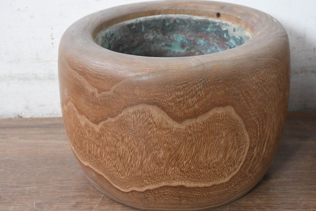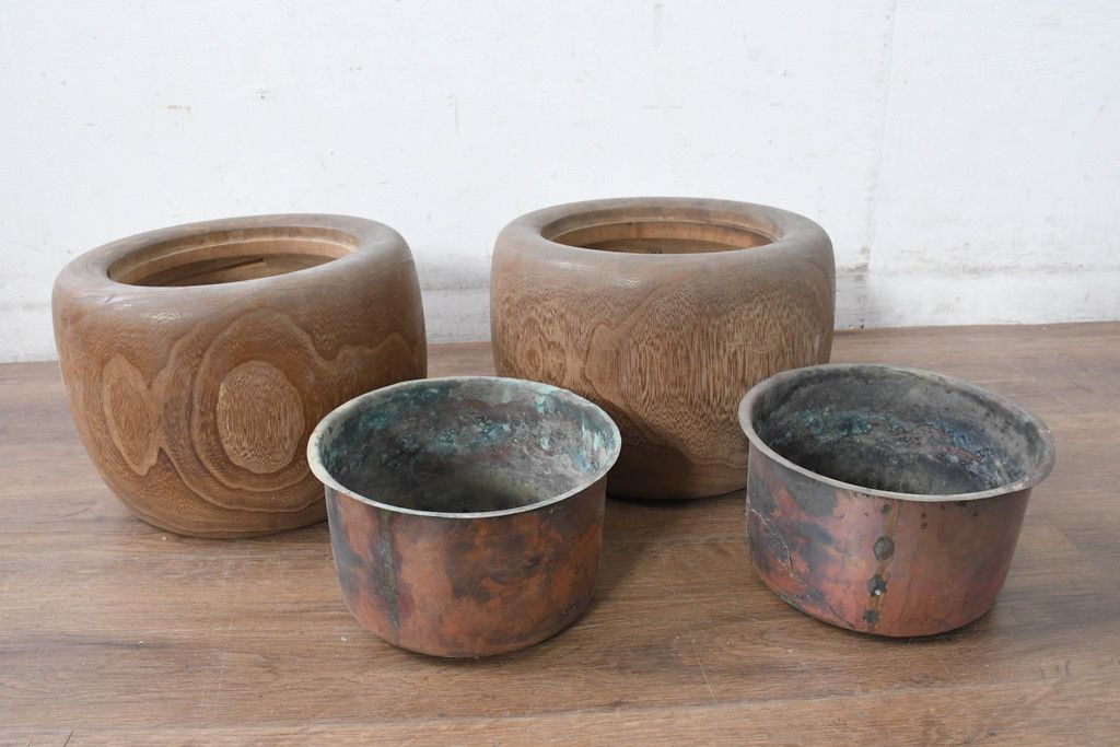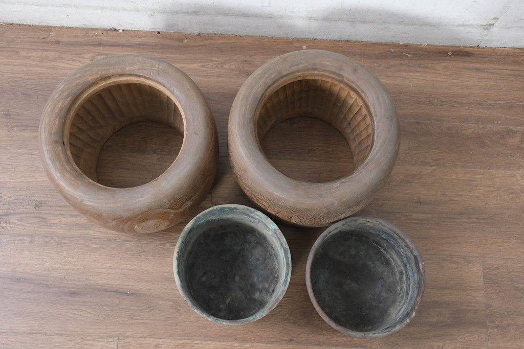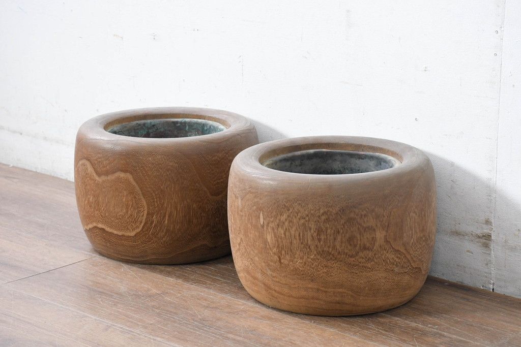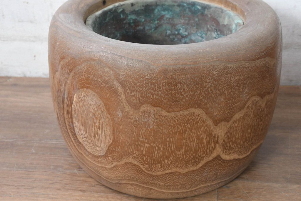 アンティーク雑貨 昭和初期 味わい深い木肌が魅力の桐火鉢2点セット(丸火鉢、木製火鉢、手あぶり)(R-084534)