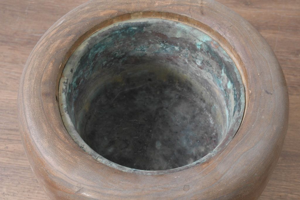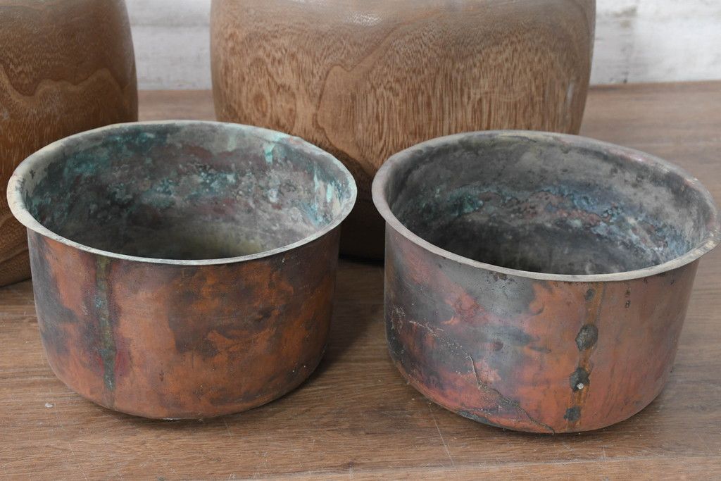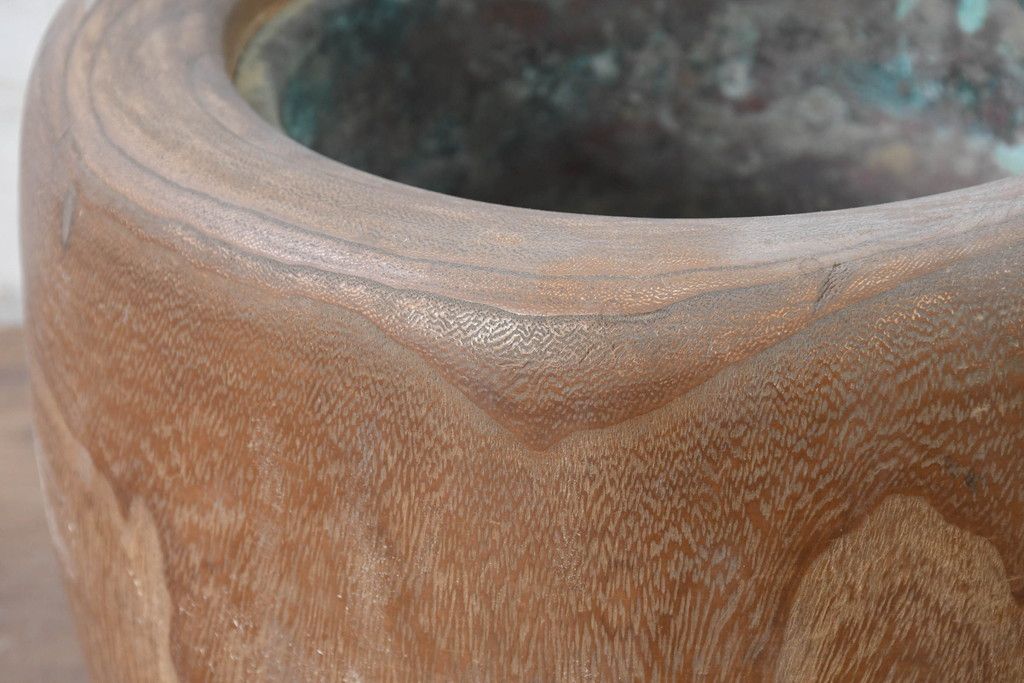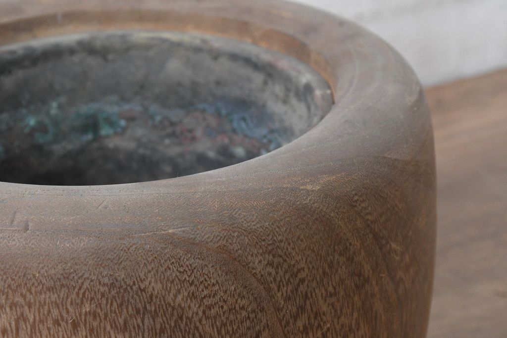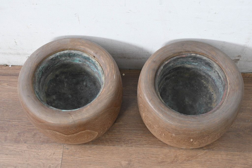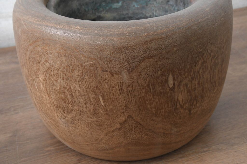 アンティーク雑貨 昭和初期 味わい深い木肌が魅力の桐火鉢2点セット(丸火鉢、木製火鉢、手あぶり)(R-084534)