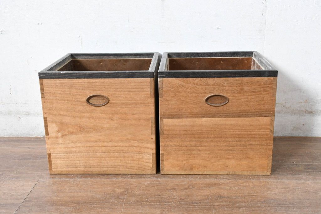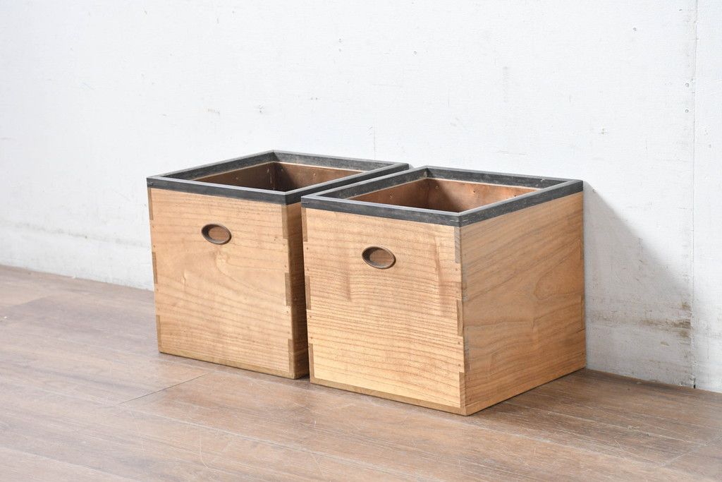 和製ビンテージ 黒柿縁 桐材 和モダンな雰囲気漂う角火鉢2点セット(木製火鉢、手あぶり、ヴィンテージ)(R-084539)です。