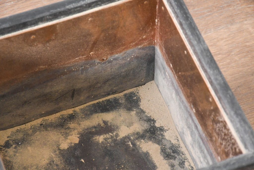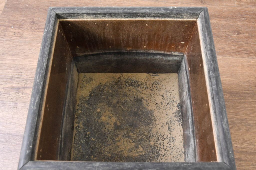 火鉢> 木製火鉢 > 和製ビンテージ 黒柿縁 桐材 和モダンな雰囲気漂う角火鉢2点セット(木製火鉢、手あぶり、ヴィンテージ)(R-084539)