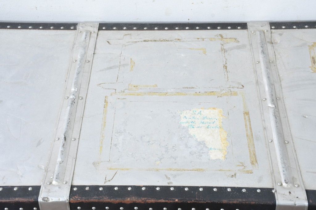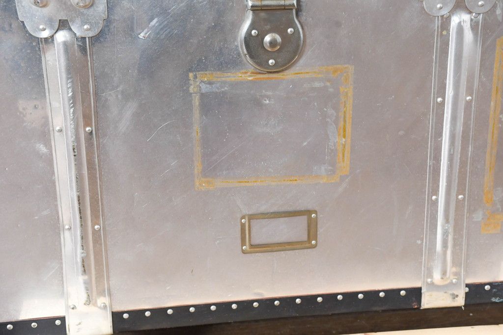和製ビンテージ お部屋のアクセントになるジュラルミン船トランク(ジュラルミントランク、舟トランク、アルミトランク、収納、ディスプレイ、ヴィンテージ)(R-084546)