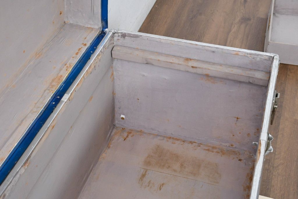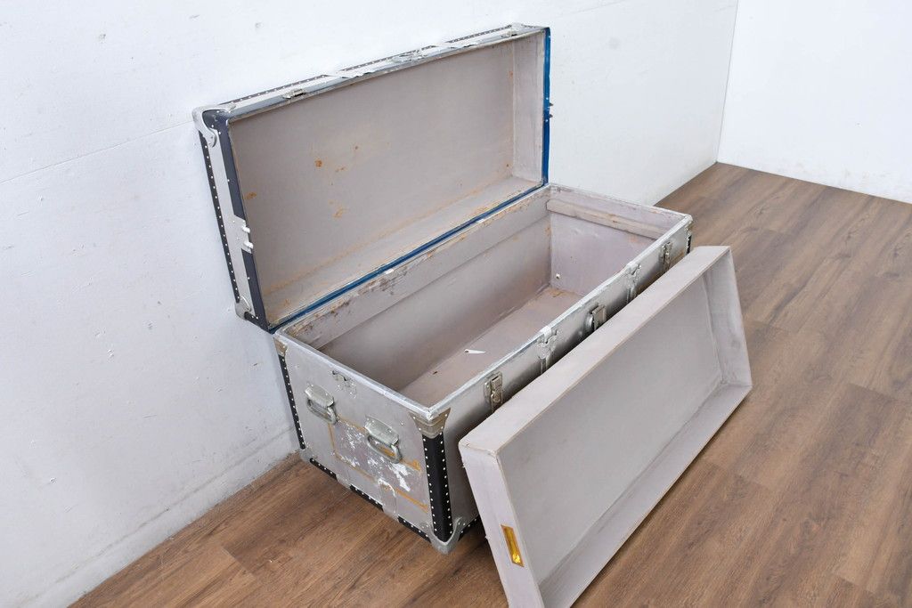 小物収納・トランク> トランク > 和製ビンテージ お部屋のアクセントになるジュラルミン船トランク(ジュラルミントランク、舟トランク、アルミトランク、収納、ディスプレイ、ヴィンテージ)(R-084546)
