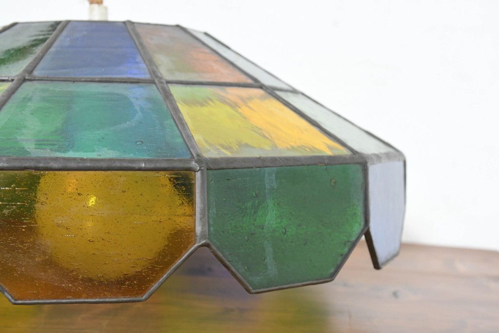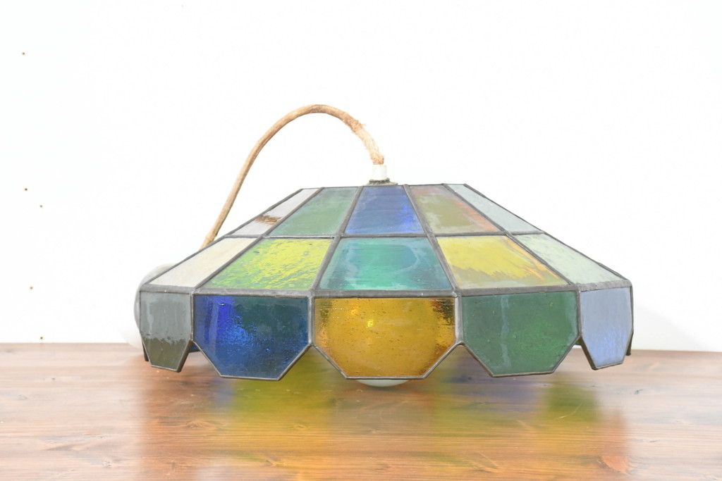 照明・ランプ> ペンダントライト > 《引っ掛けシーリング式ペンダントライト加工費込み》 中古 希少!! 作家物!! ステンドグラス芸術家 伊藤誠二 ステンドグラスのペンダントライト(天井照明、吊り下げ照明、シェード、電笠)(定価約14万円)(R-084549)