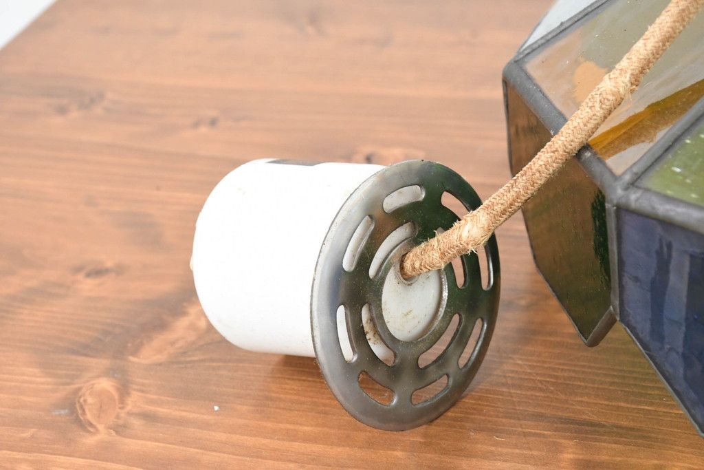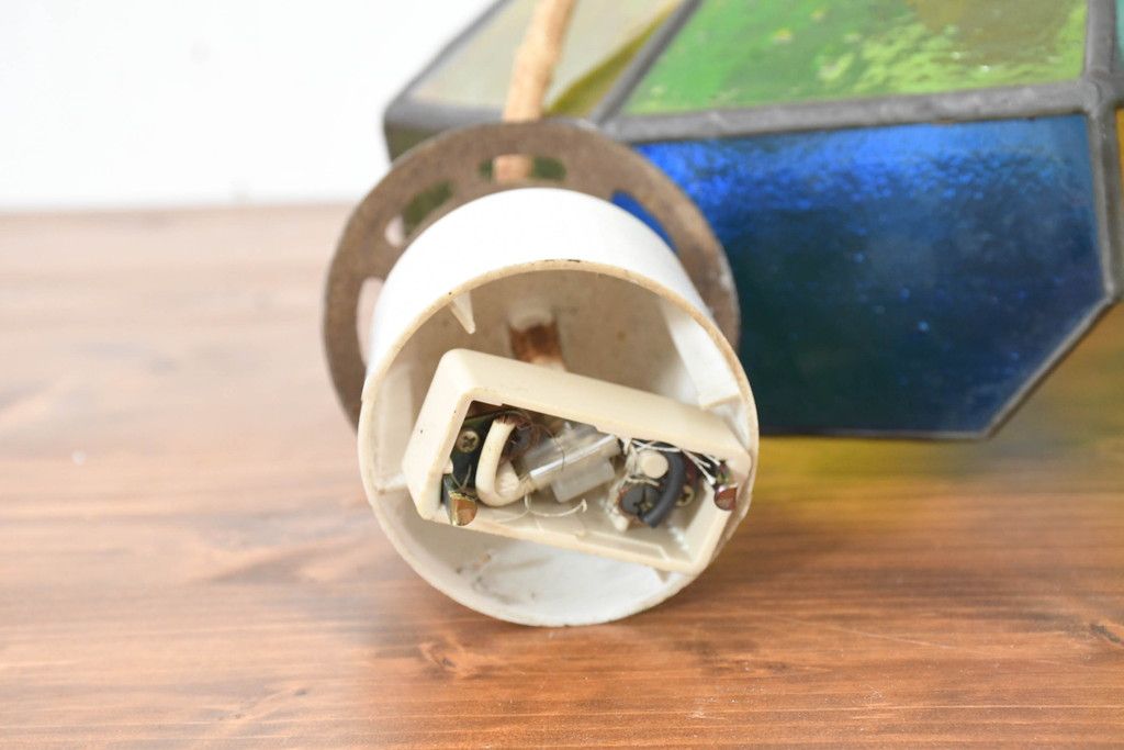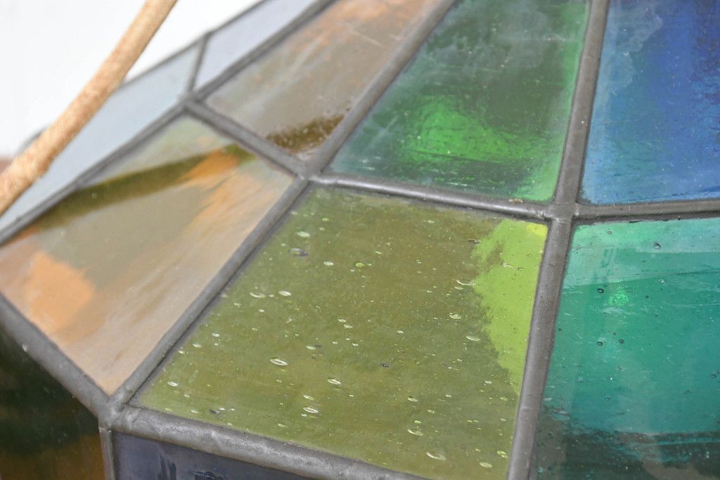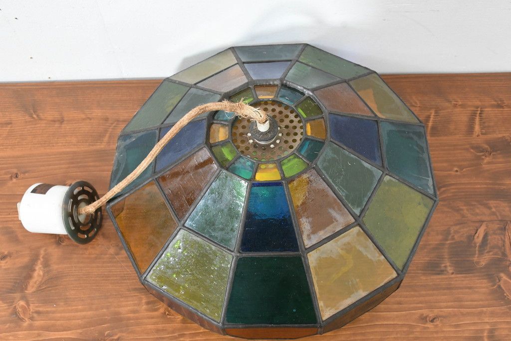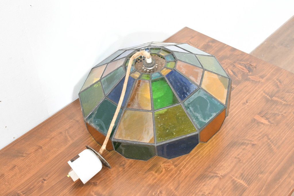 《引っ掛けシーリング式ペンダントライト加工費込み》 中古 希少!! 作家物!! ステンドグラス芸術家 伊藤誠二 ステンドグラスのペンダントライト(天井照明、吊り下げ照明、シェード、電笠)(定価約14万円)(R-084549)
