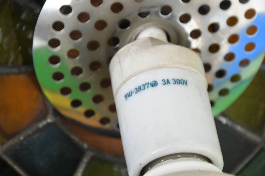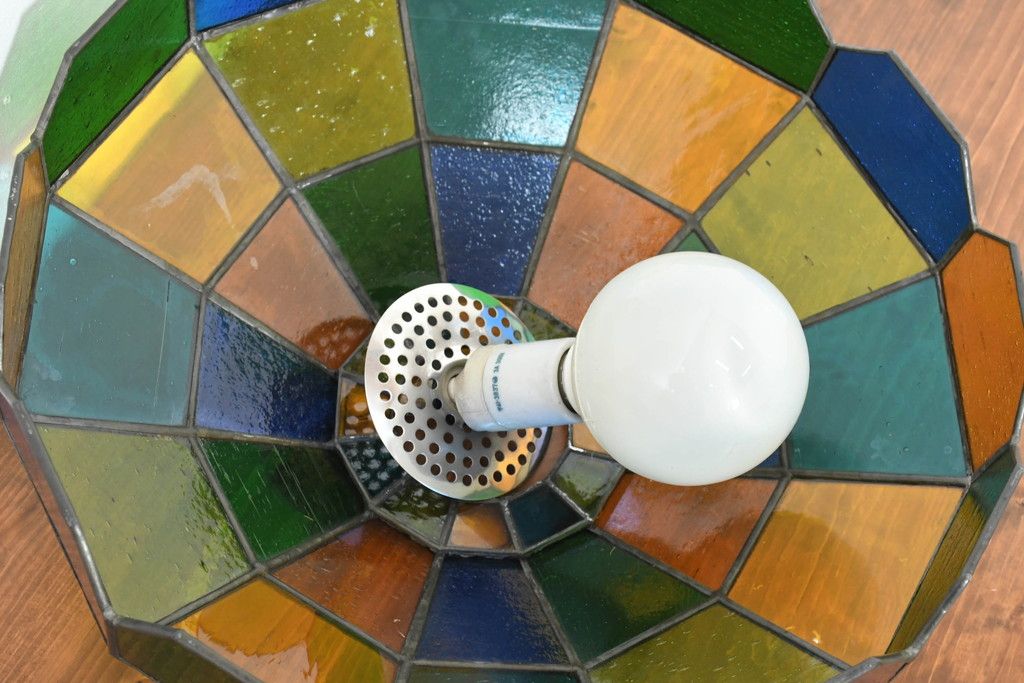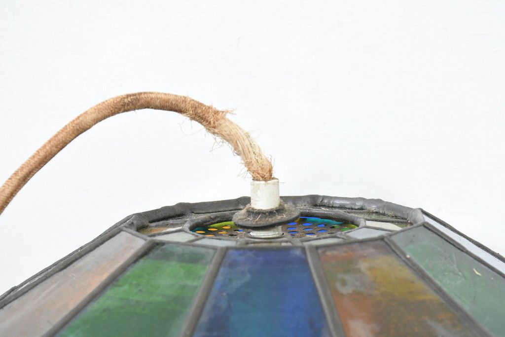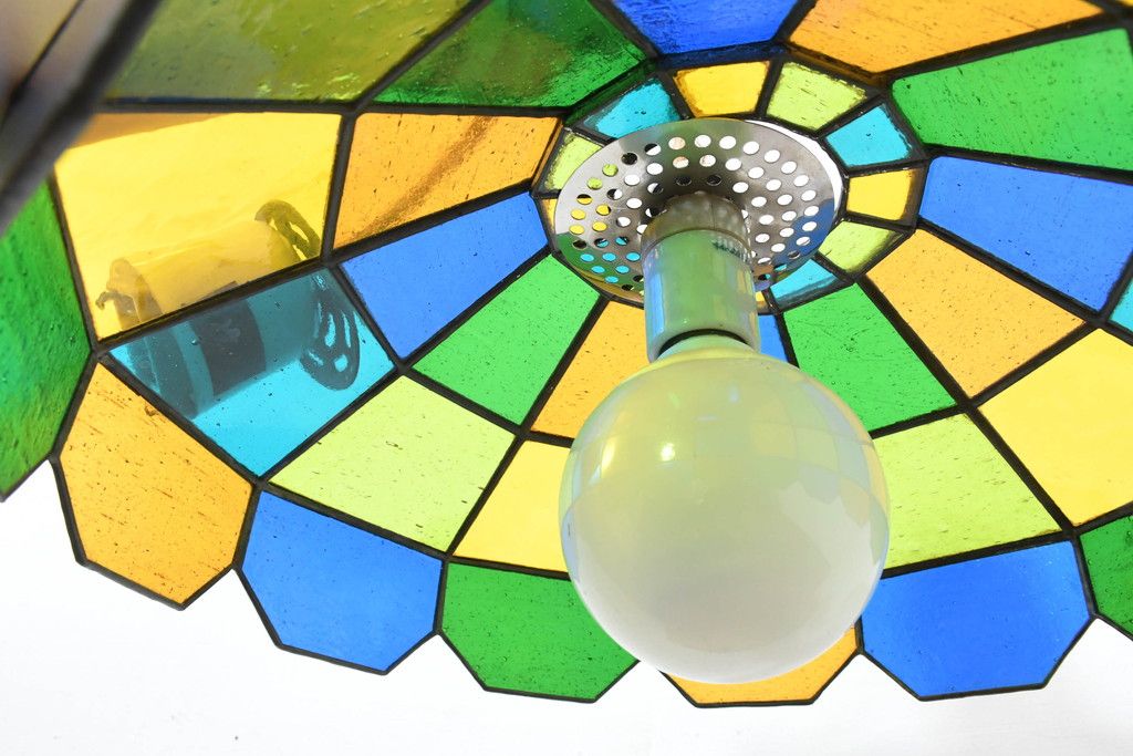 ステンドグラス > 《引っ掛けシーリング式ペンダントライト加工費込み》 中古 希少!! 作家物!! ステンドグラス芸術家 伊藤誠二 ステンドグラスのペンダントライト(天井照明、吊り下げ照明、シェード、電笠)(定価約14万円)(R-084549)