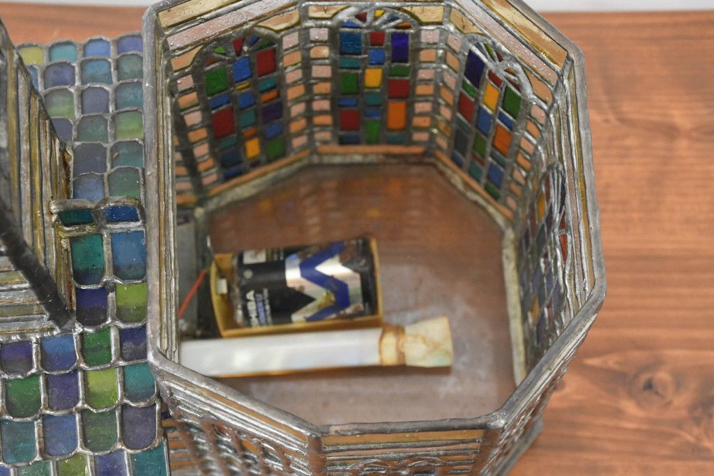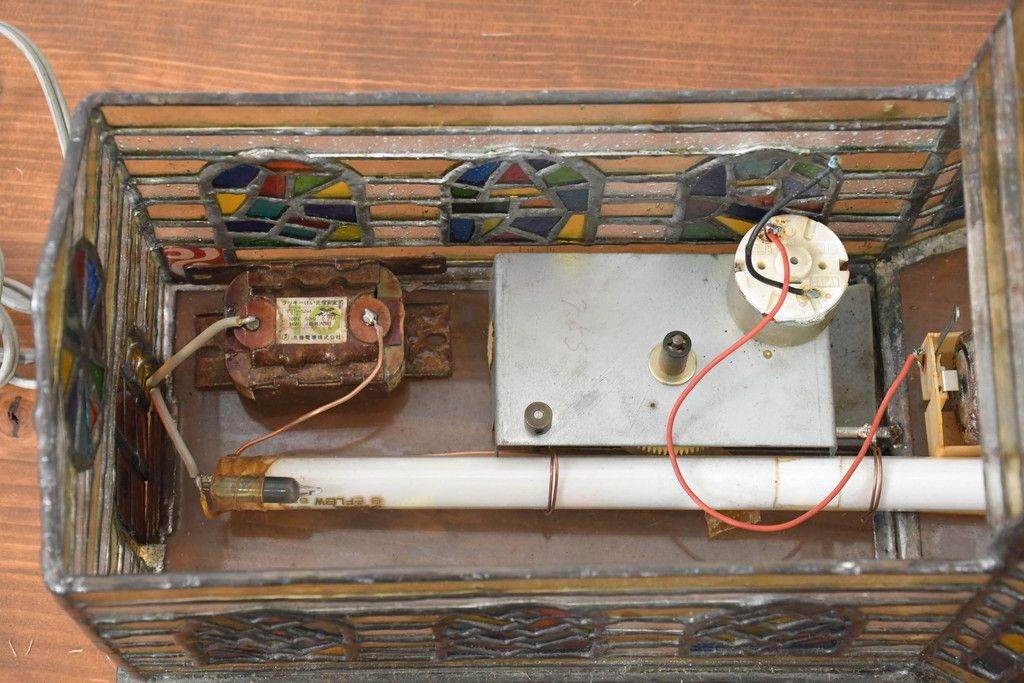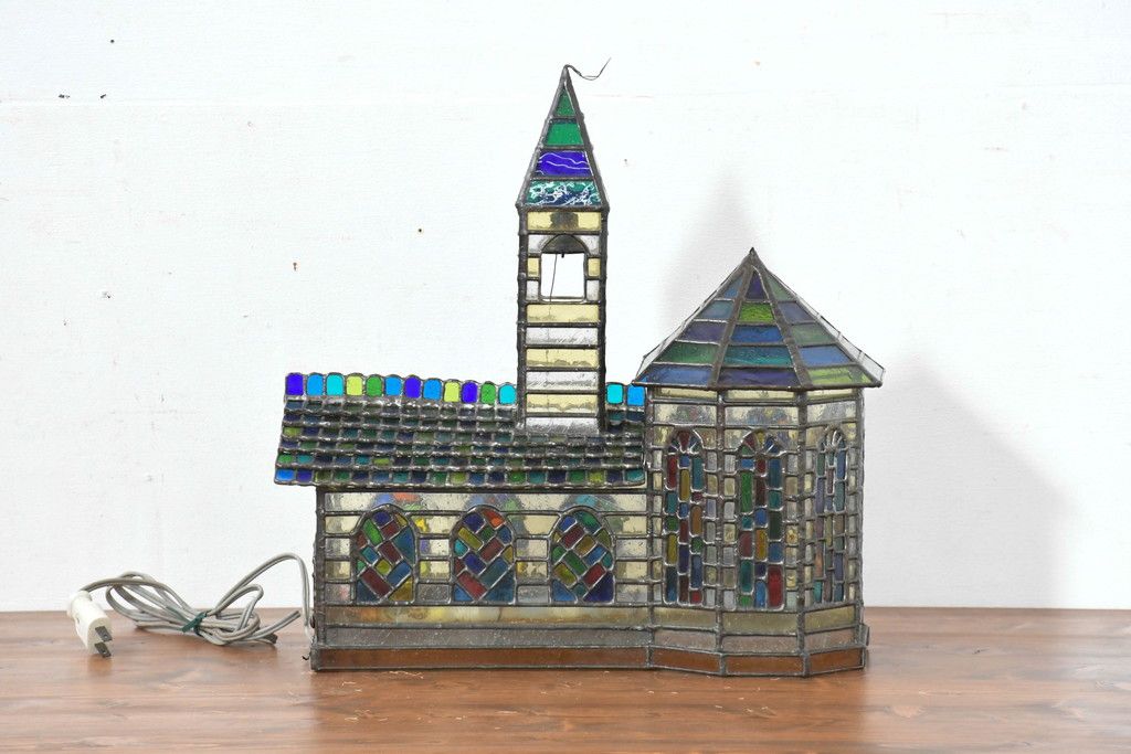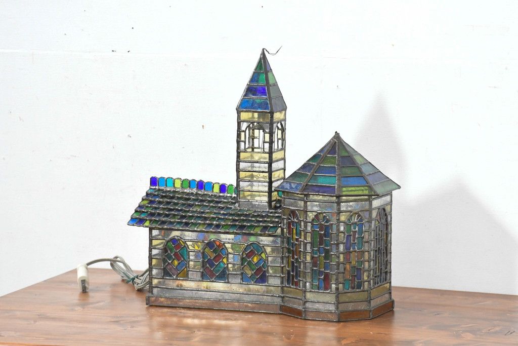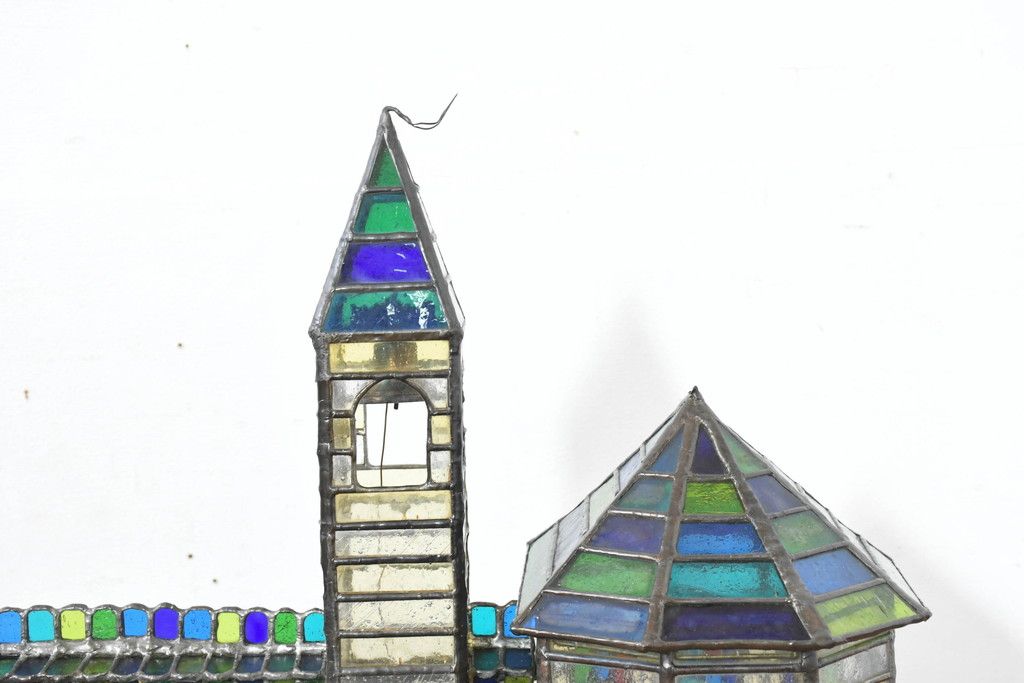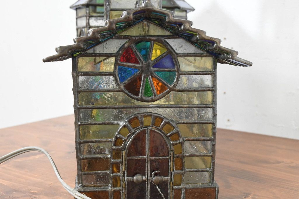中古 希少!! 作家物!! ステンドグラス芸術家 伊藤誠二 アートピースとして楽しめるカラフルな家の卓上照明(テーブルランプ、テーブルスタンド、卓上ランプ、ナイトスタンド、ガラスアート、オブジェ)(定価約50万円)(R-084555)