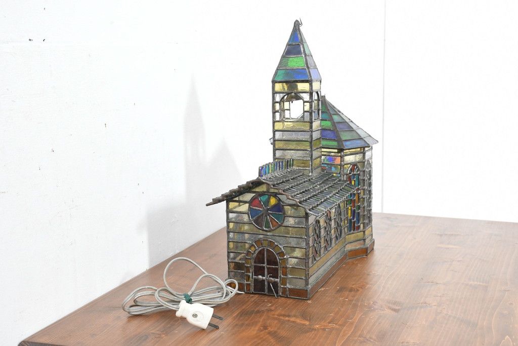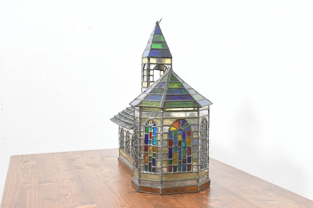 ラフジュ工房> 照明・ランプ> デスクライト・テーブルライト > 中古 希少!! 作家物!! ステンドグラス芸術家 伊藤誠二 アートピースとして楽しめるカラフルな家の卓上照明(テーブルランプ、テーブルスタンド、卓上ランプ、ナイトスタンド、ガラスアート、オブジェ)(定価約50万円)(R-084555)