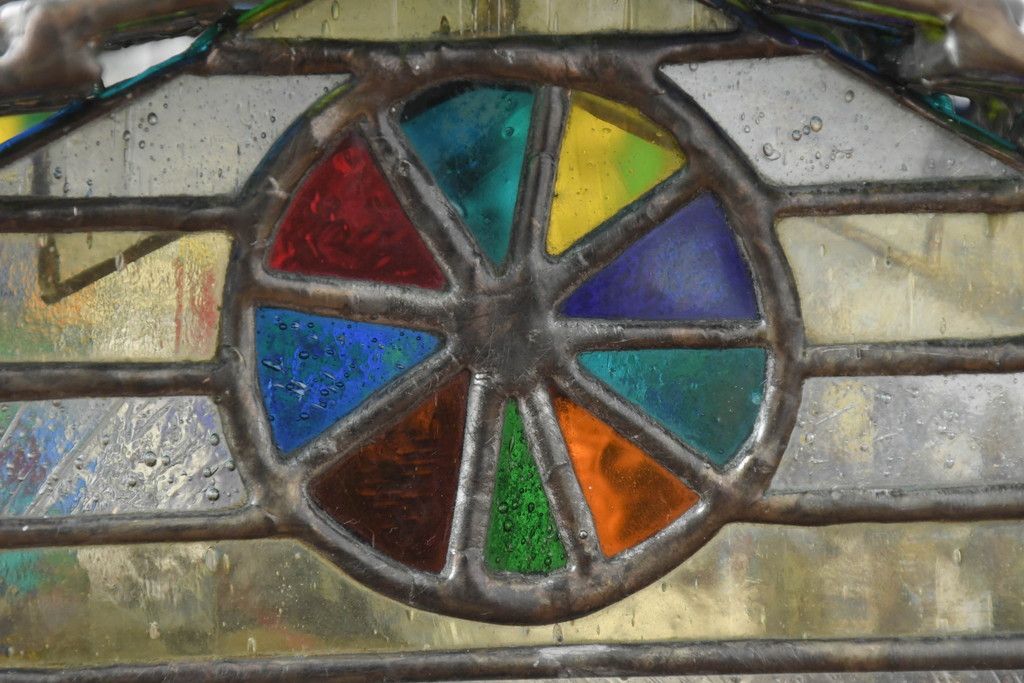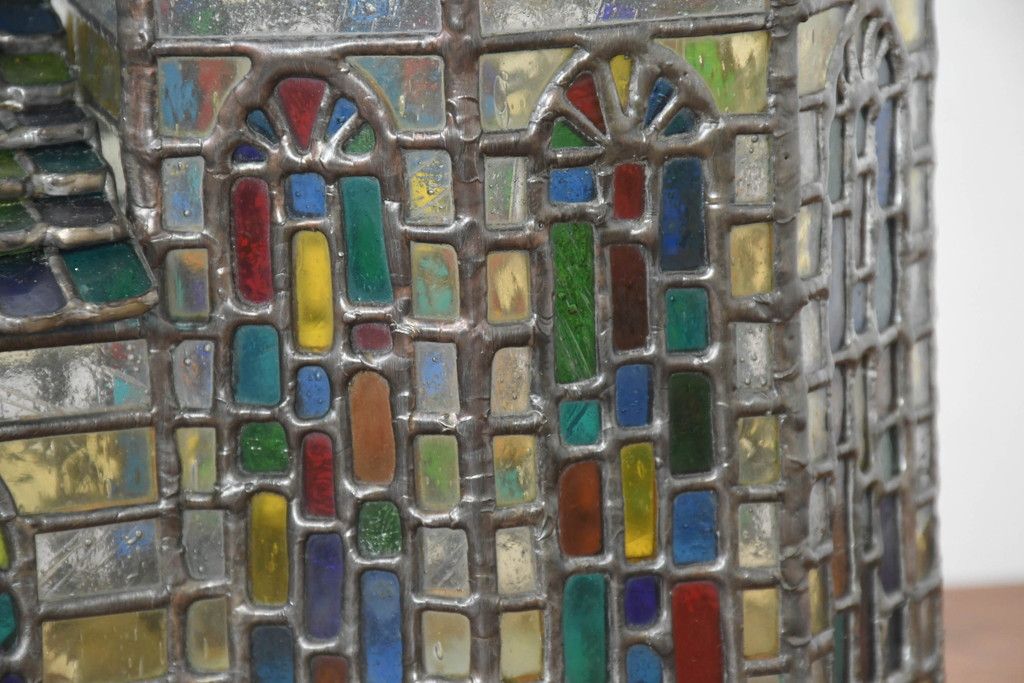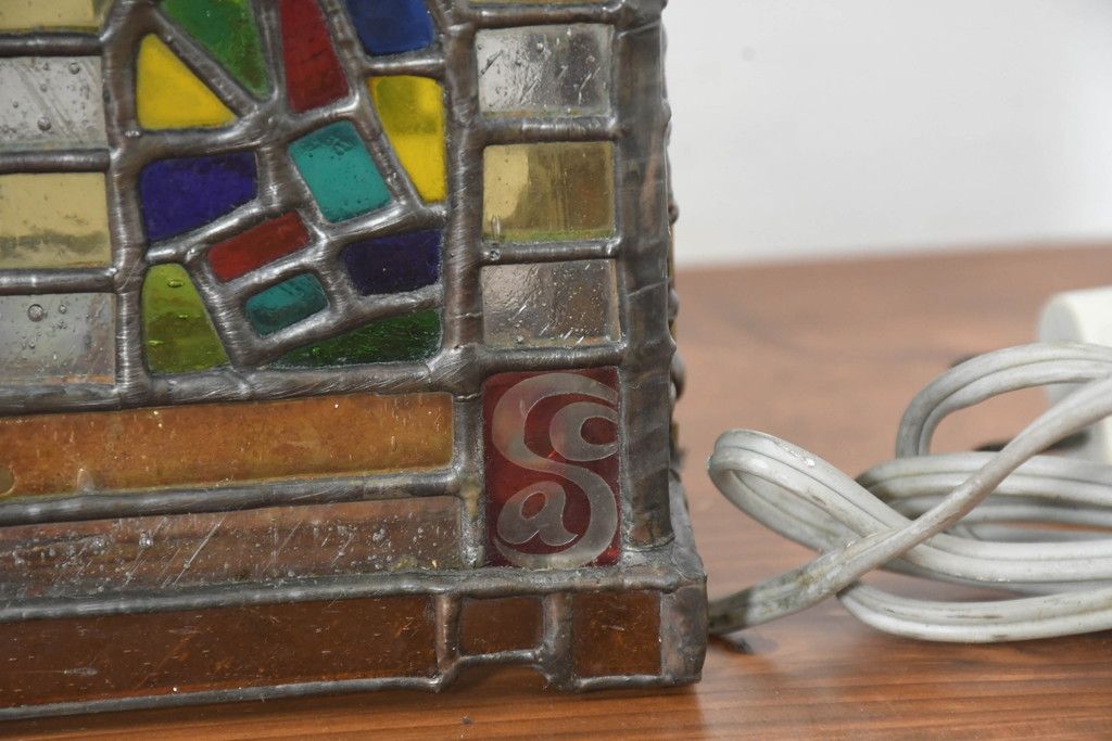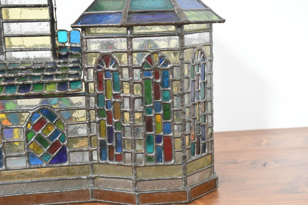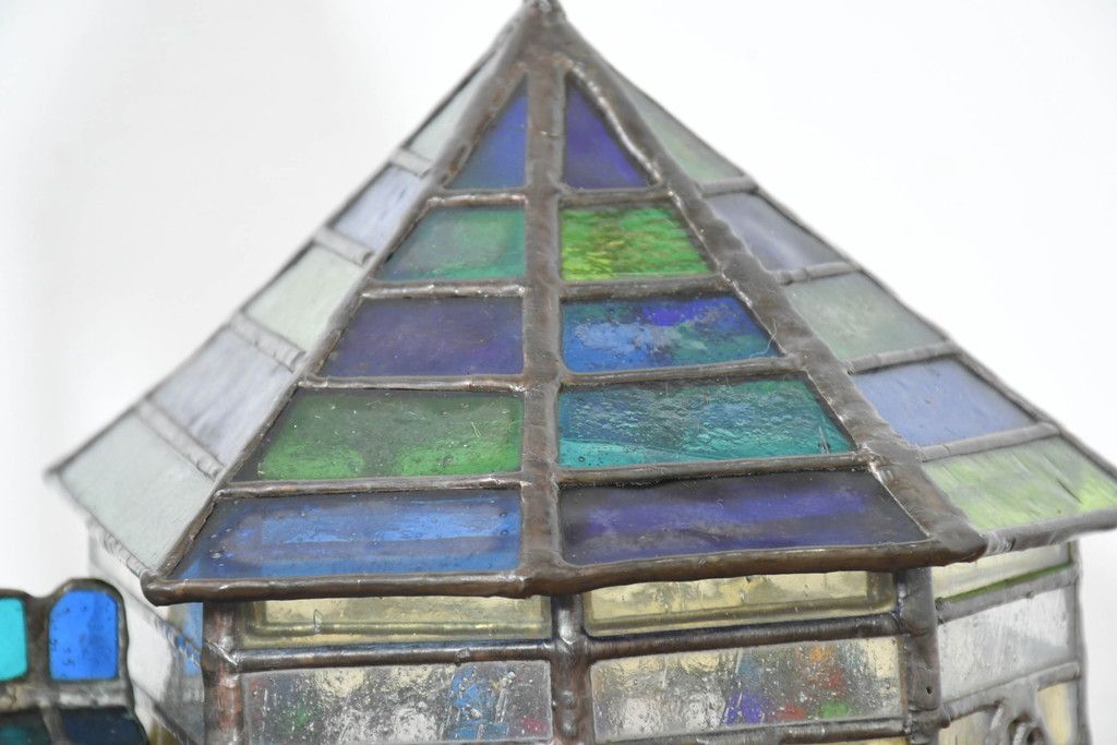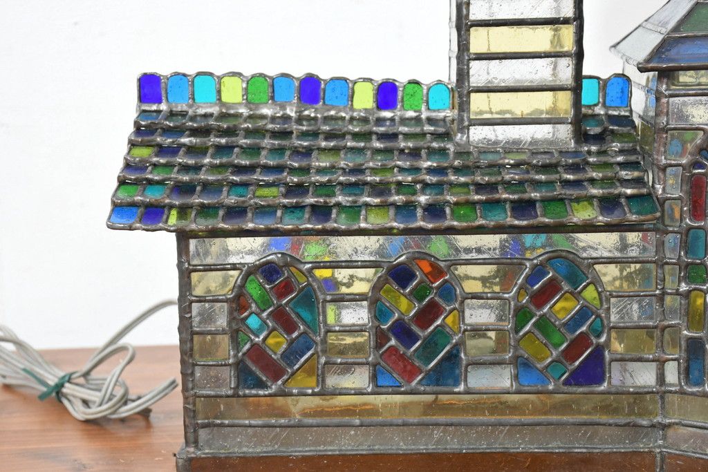 ラフジュ工房> ステンドグラス > 中古 希少!! 作家物!! ステンドグラス芸術家 伊藤誠二 アートピースとして楽しめるカラフルな家の卓上照明(テーブルランプ、テーブルスタンド、卓上ランプ、ナイトスタンド、ガラスアート、オブジェ)(定価約50万円)(R-084555)