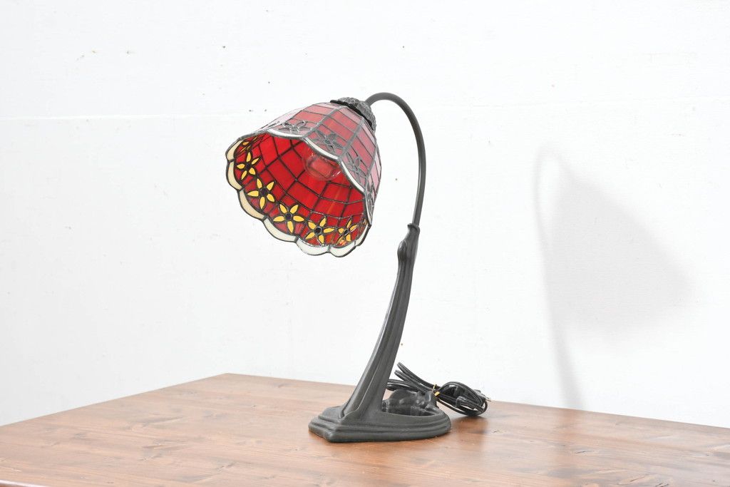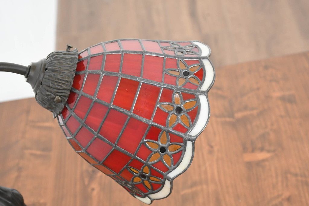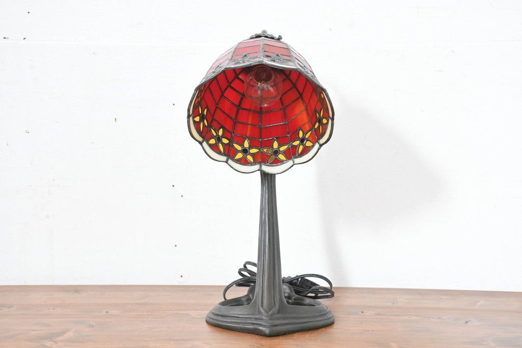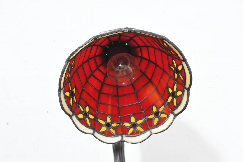 照明・ランプ> デスクライト・テーブルライト > 中古 希少!! 作家物!! ステンドグラス芸術家 伊藤誠二 丁寧に作りこまれた花模様のデスクスタンド(テーブルランプ、テーブルスタンド、卓上照明、卓上ランプ、ナイトスタンド)(定価約17万円)(R-084556)