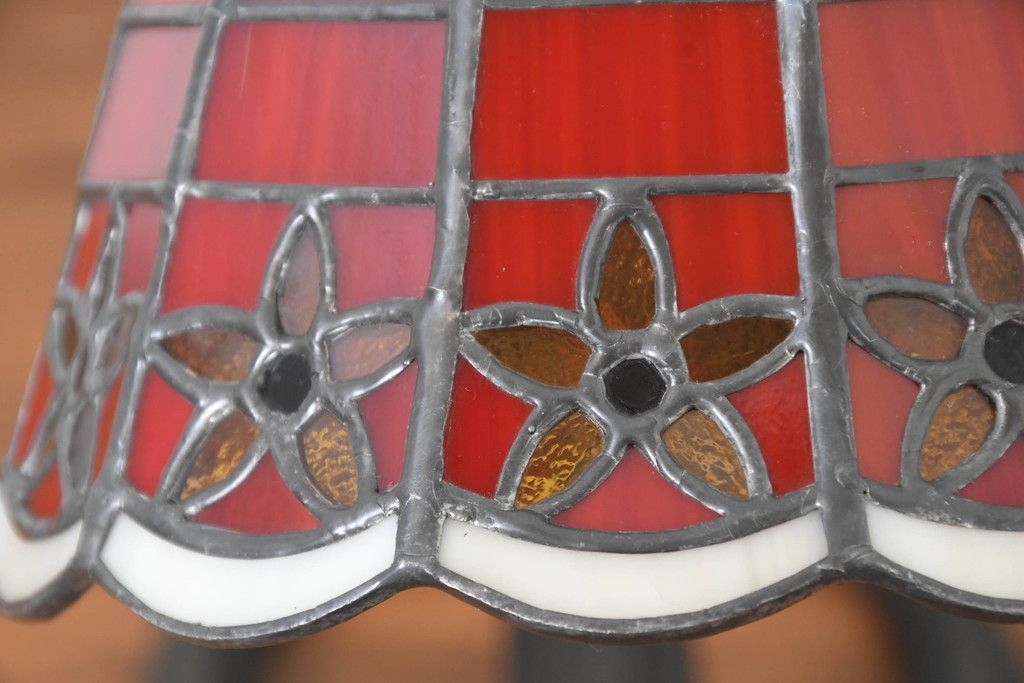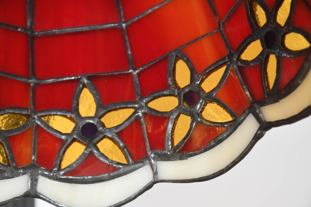 ステンドグラス > 中古 希少!! 作家物!! ステンドグラス芸術家 伊藤誠二 丁寧に作りこまれた花模様のデスクスタンド(テーブルランプ、テーブルスタンド、卓上照明、卓上ランプ、ナイトスタンド)(定価約17万円)(R-084556)