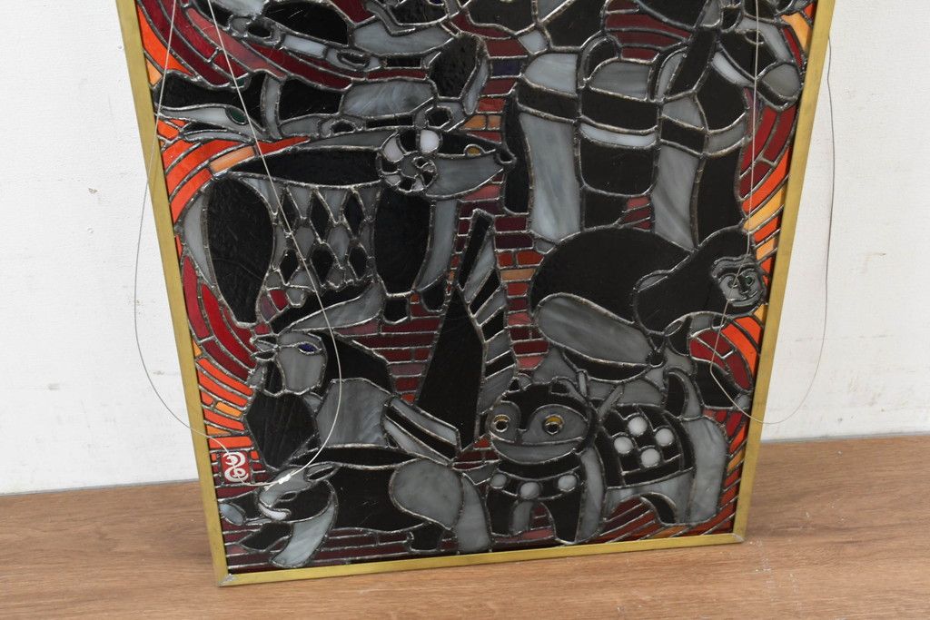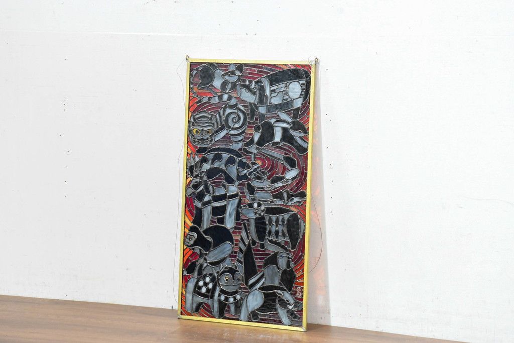 中古 希少!! 作家物!! ステンドグラス芸術家 伊藤誠二 珍しい和柄(干支・十二支・縁起物)を描いたステンドグラスのウォールアートパネル(オブジェ、壁飾り)(定価約37万円)(R-084557)