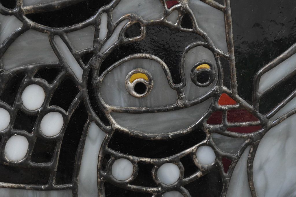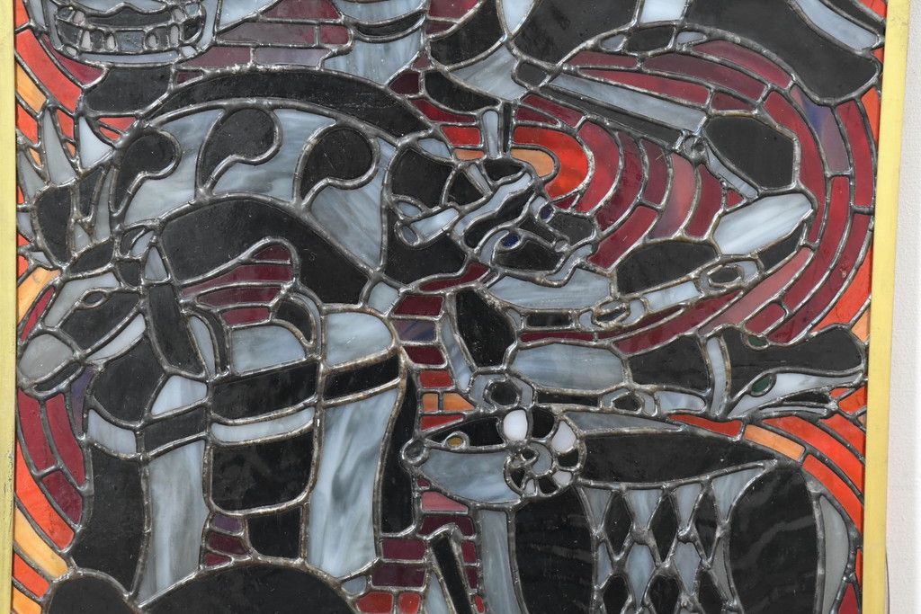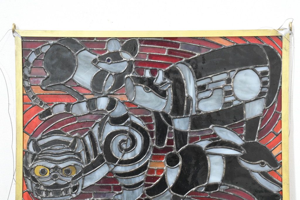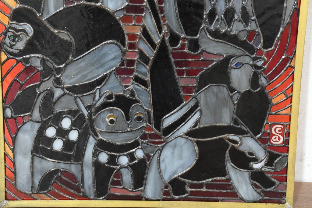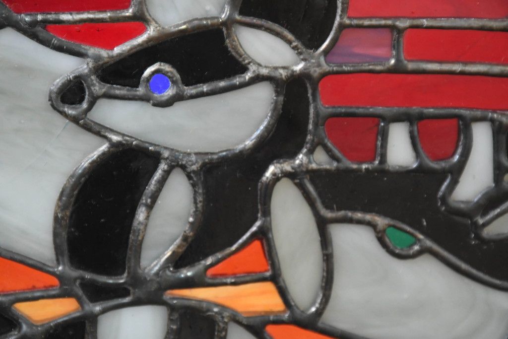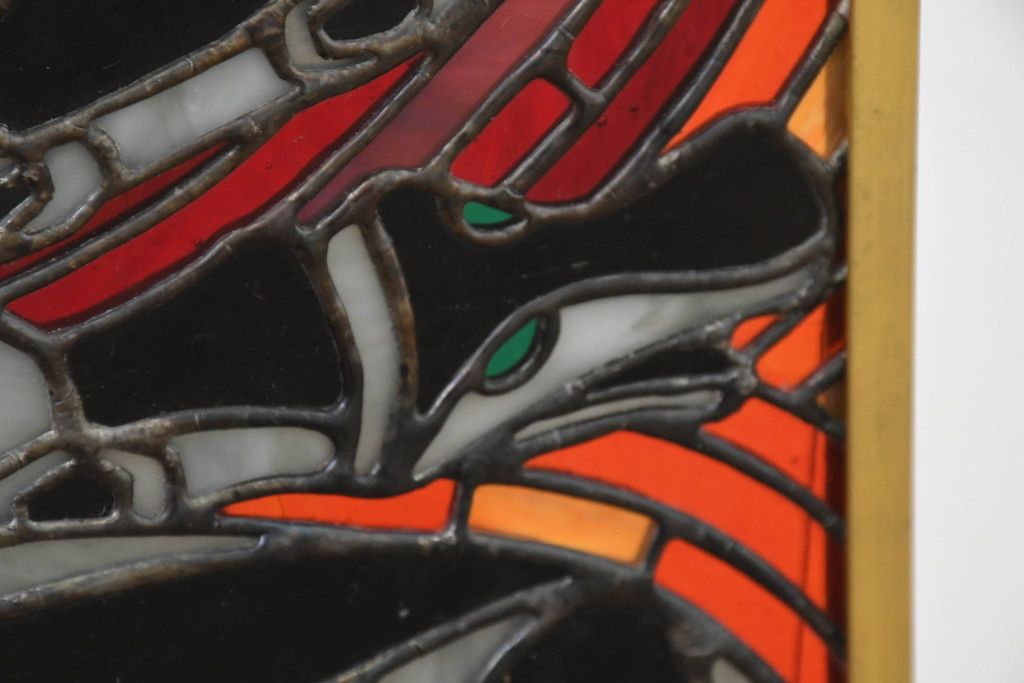 ラフジュ工房> ステンドグラス > 中古 希少!! 作家物!! ステンドグラス芸術家 伊藤誠二 珍しい和柄(干支・十二支・縁起物)を描いたステンドグラスのウォールアートパネル(オブジェ、壁飾り)(定価約37万円)(R-084557)