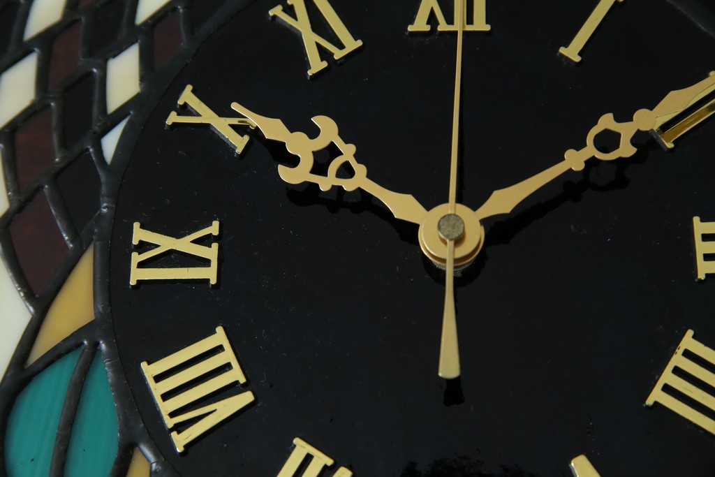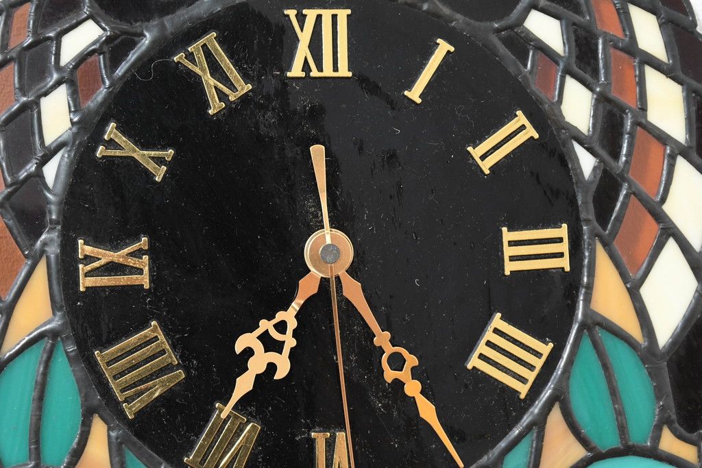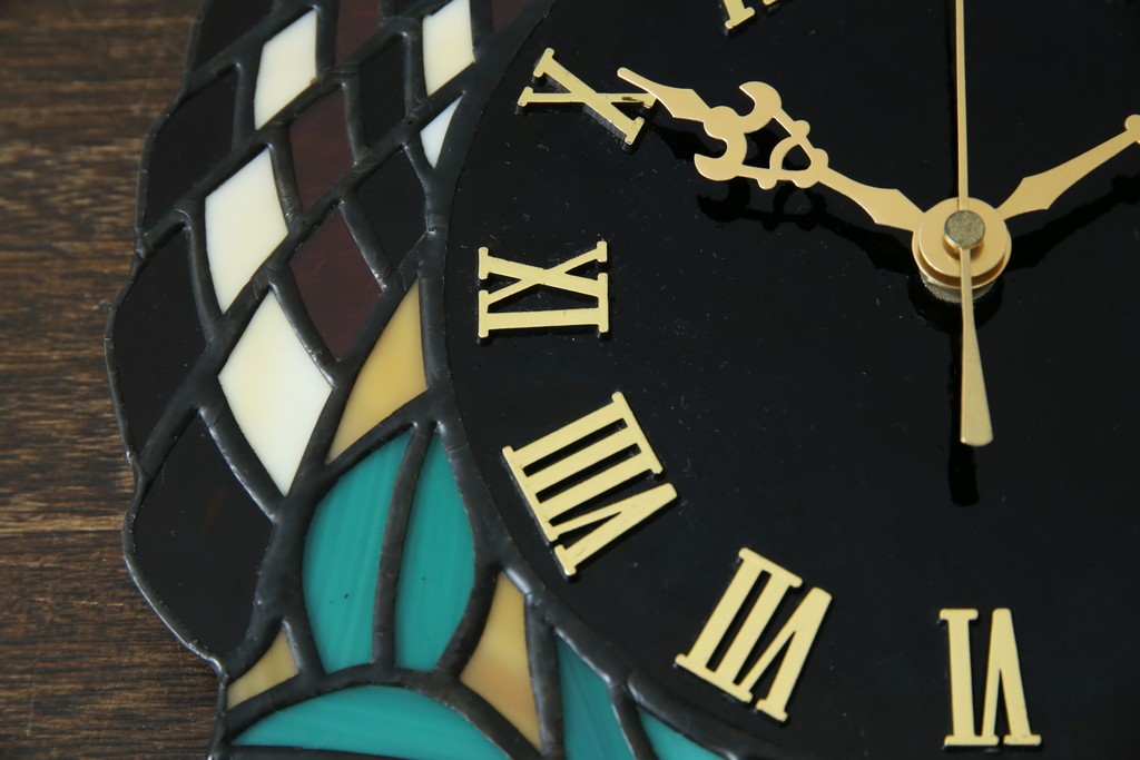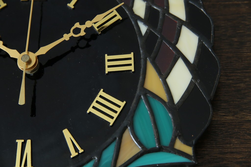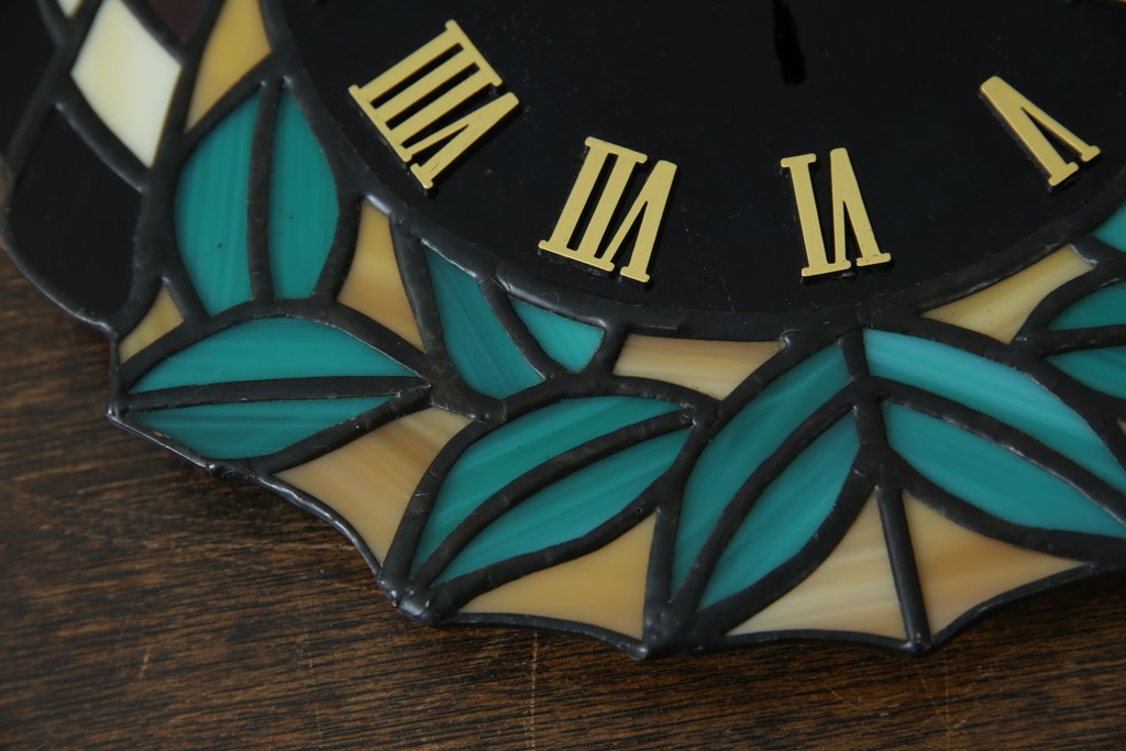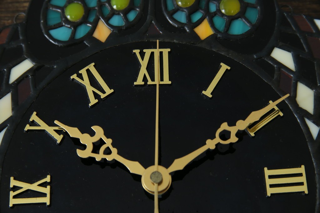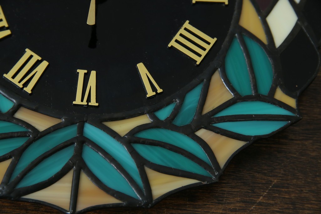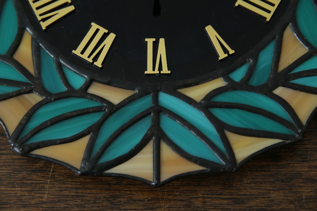 時計> 掛け時計 > 中古 希少!! 作家物!! ステンドグラス芸術家 伊藤誠二 つがいの梟(フクロウ・ふくろう) ステンドグラスの壁掛け時計(ウォールクロック)(定価約13万円)(R-084558)