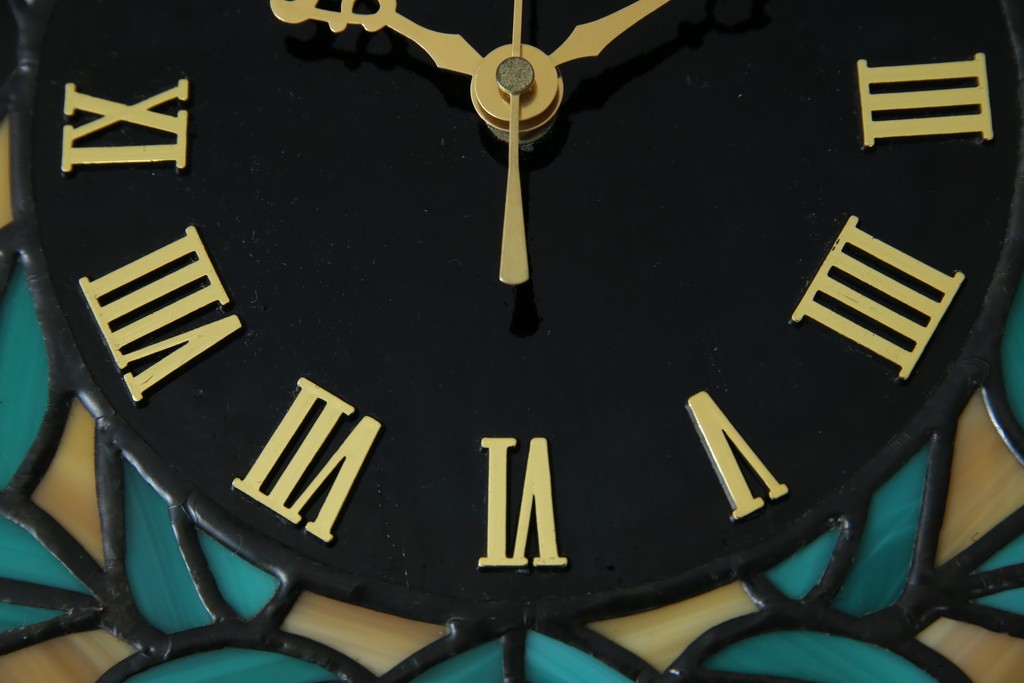 ステンドグラス > 中古 希少!! 作家物!! ステンドグラス芸術家 伊藤誠二 つがいの梟(フクロウ・ふくろう) ステンドグラスの壁掛け時計(ウォールクロック)(定価約13万円)(R-084558)