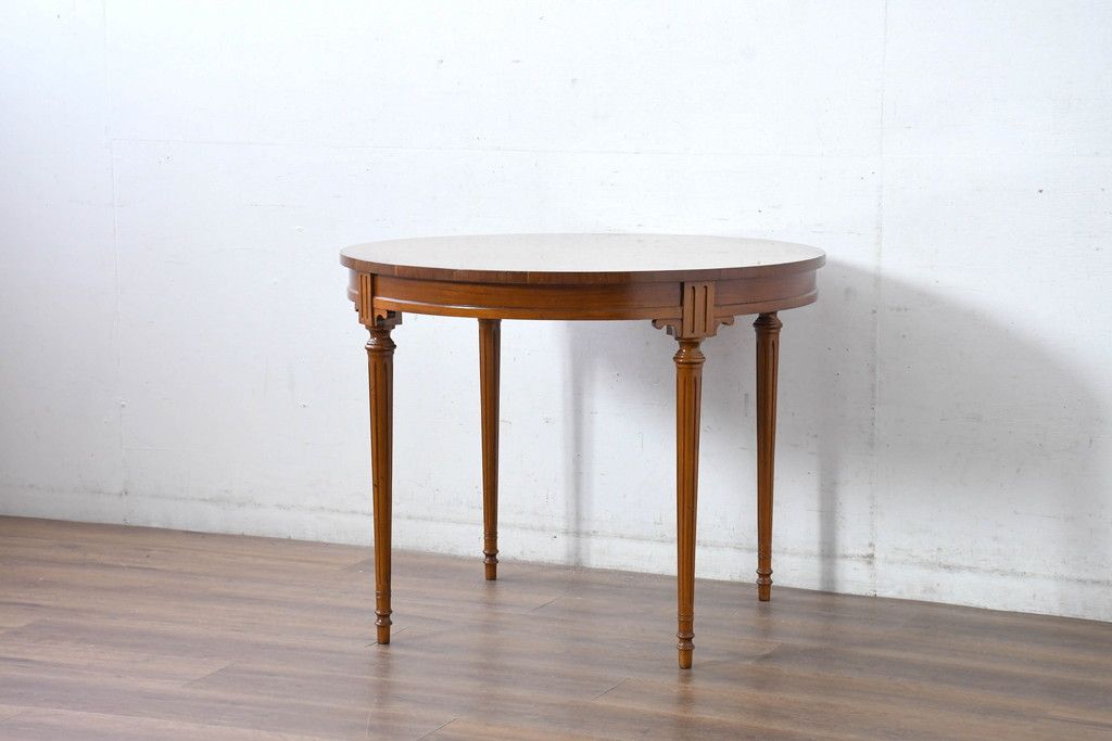 中古 美品 DREXEL HERITAGE(ドレクセルヘリテイジ) Et Cetera(エトセトラ)コレクション 優美なシルエットが目を引く小振りサイズのラウンドテーブル(ダイニングテーブル、丸テーブル、コーヒーテーブル、カフェテーブル)(R-084559)