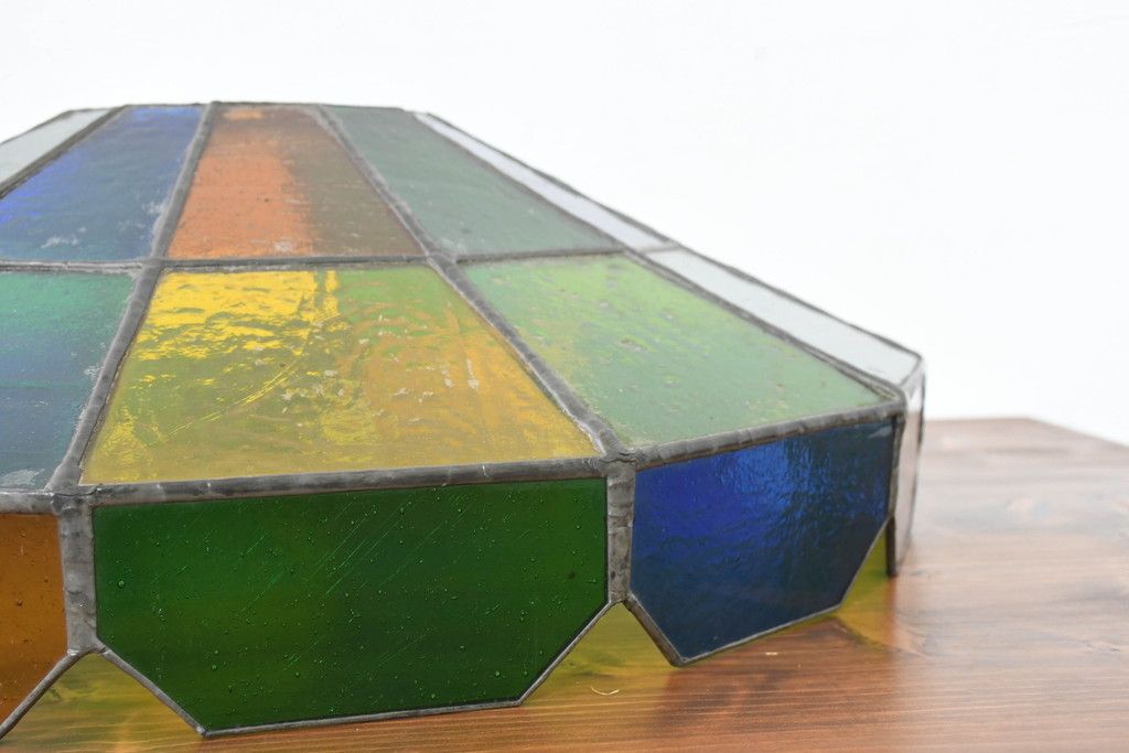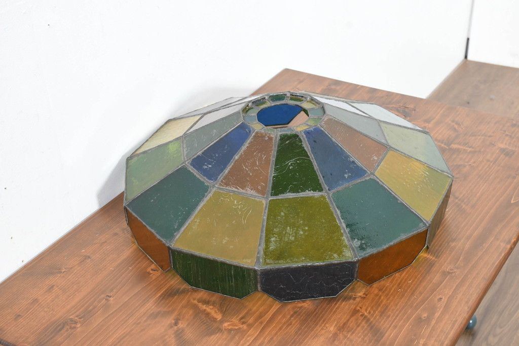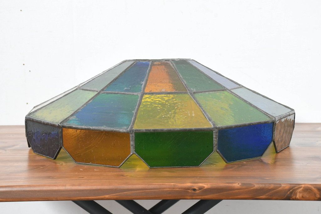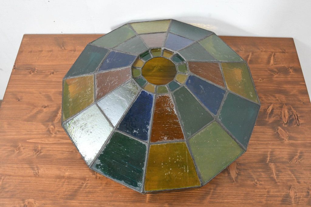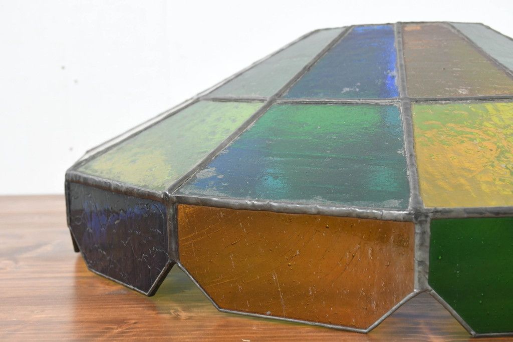 照明・ランプ> ペンダントライト > 《引っ掛けシーリング式ペンダントライト加工費込み》 中古 希少!! 作家物!! ステンドグラス芸術家 伊藤誠二 ステンドグラスのペンダントライト(天井照明、吊り下げ照明、シェード、電笠)(R-084562)