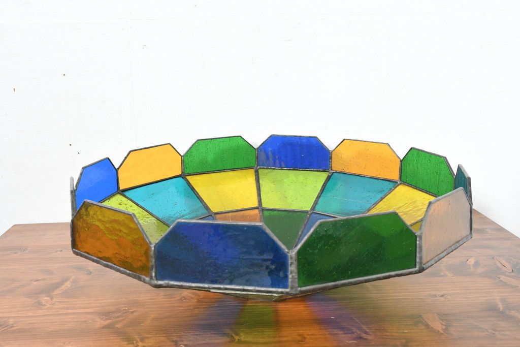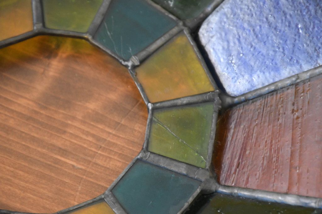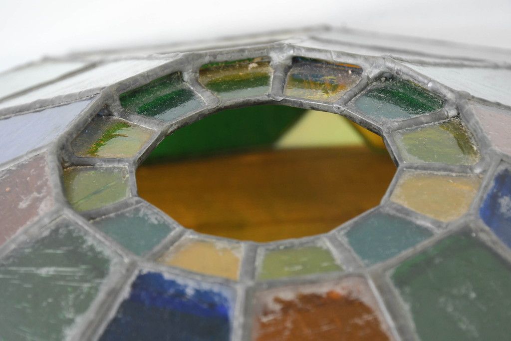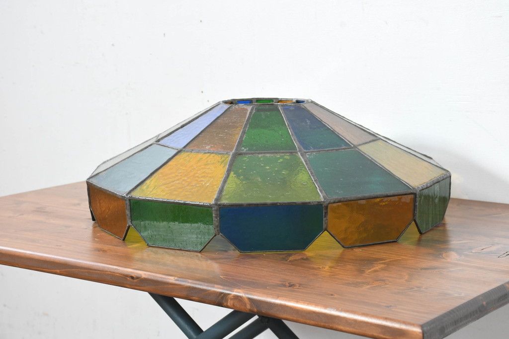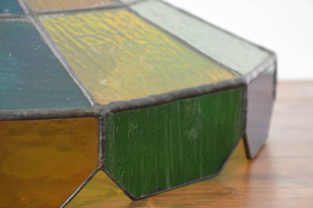 照明・ランプ> ペンダントライト > 《引っ掛けシーリング式ペンダントライト加工費込み》 中古 希少!! 作家物!! ステンドグラス芸術家 伊藤誠二 ステンドグラスのペンダントライト(天井照明、吊り下げ照明、シェード、電笠)(R-084562)