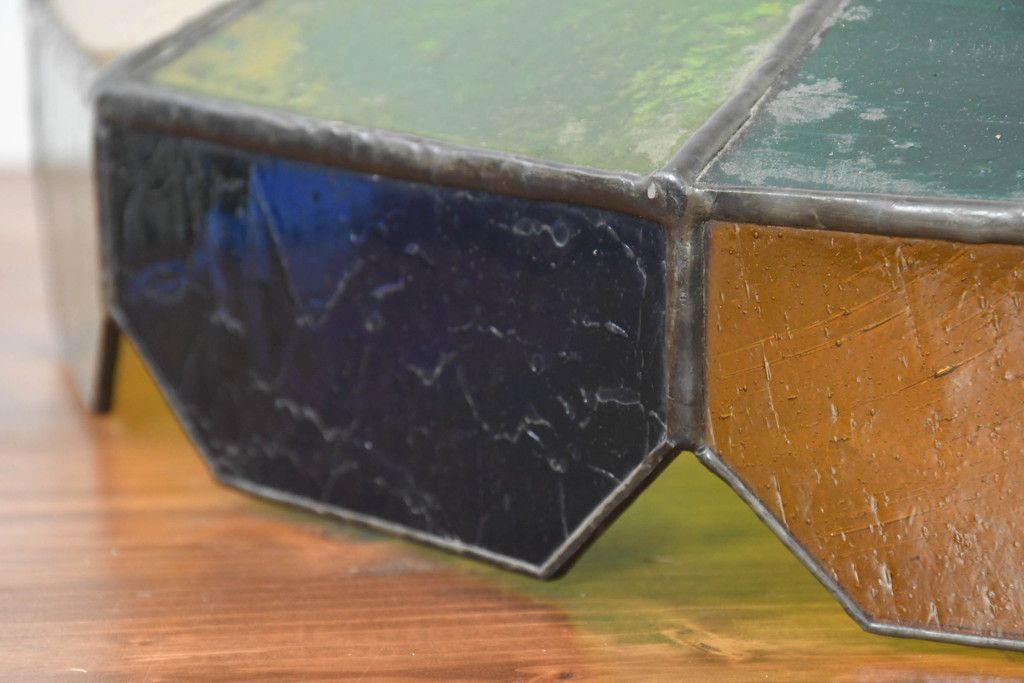 《引っ掛けシーリング式ペンダントライト加工費込み》 中古 希少!! 作家物!! ステンドグラス芸術家 伊藤誠二 ステンドグラスのペンダントライト(天井照明、吊り下げ照明、シェード、電笠)(R-084562)
