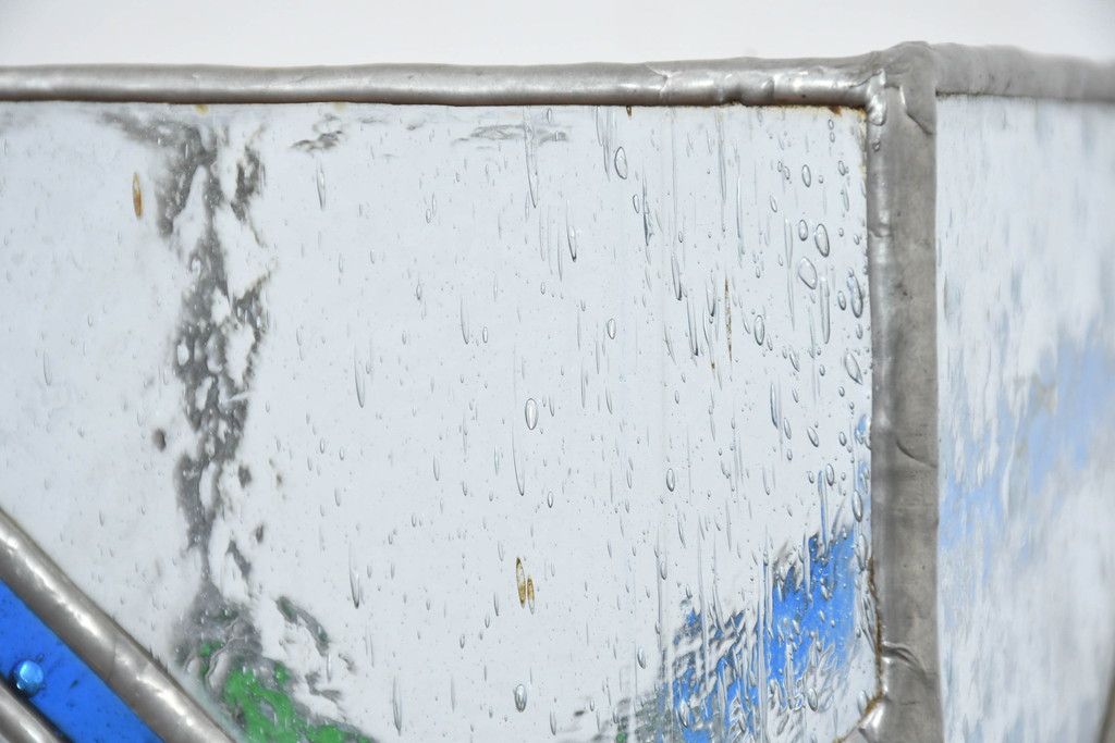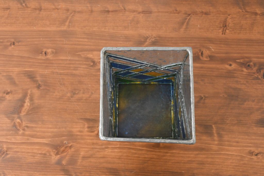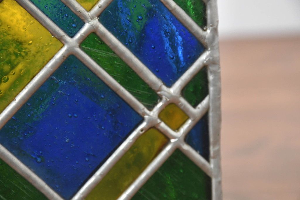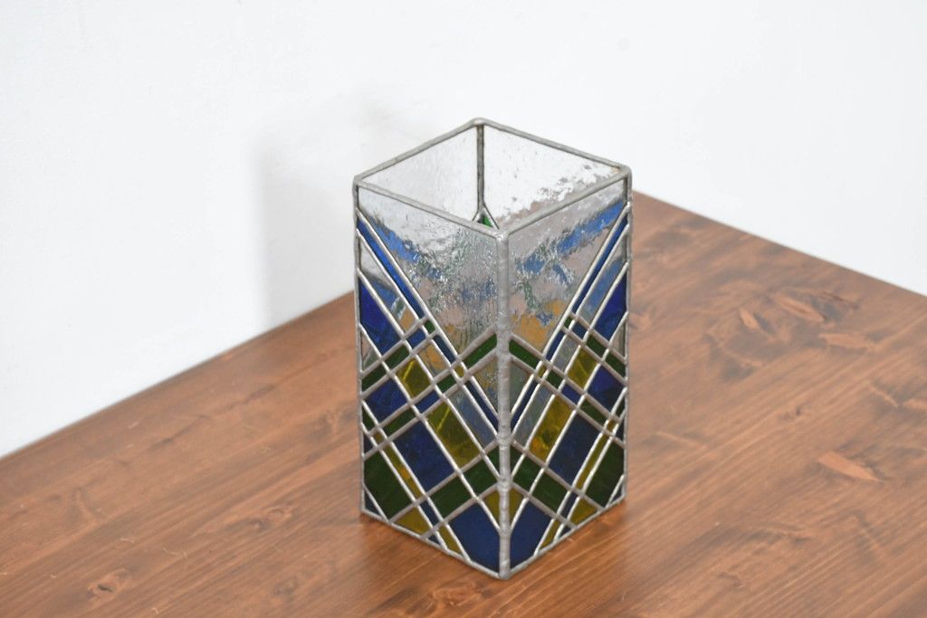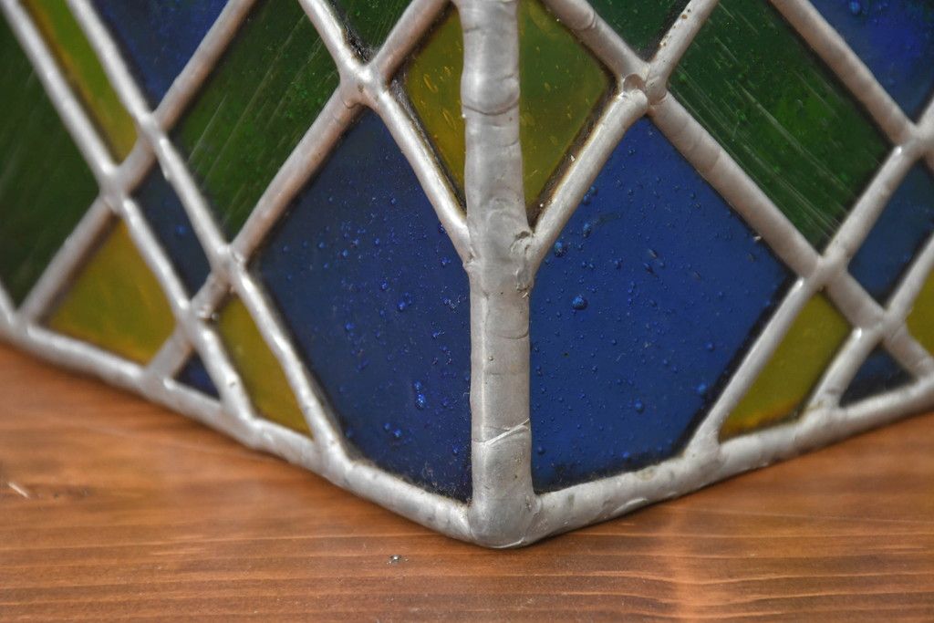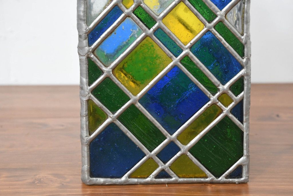 ラフジュ工房> ステンドグラス > 中古 希少!! 作家物!! ステンドグラス芸術家 伊藤誠二 光を通すカラフルなステンドグラスが美しいキャンドルシェード(ろうそく立て、キャンドルホルダー、造花スタンド、ガラスアート、オブジェ、飾り、置物)(定価約7万円)(R-084563)
