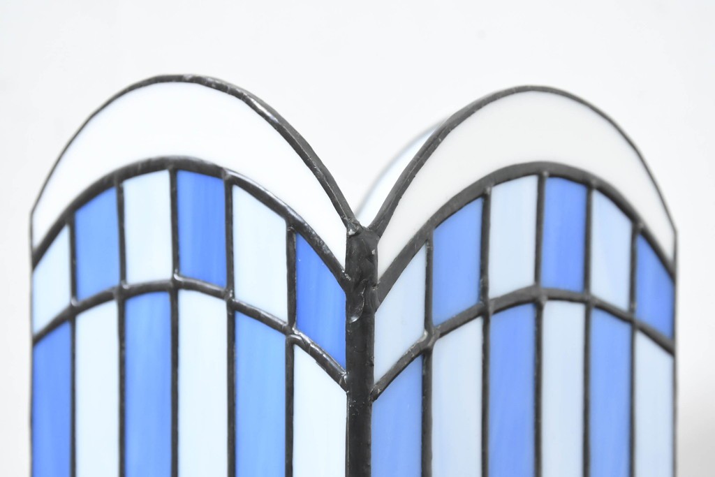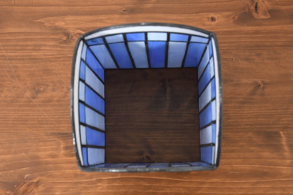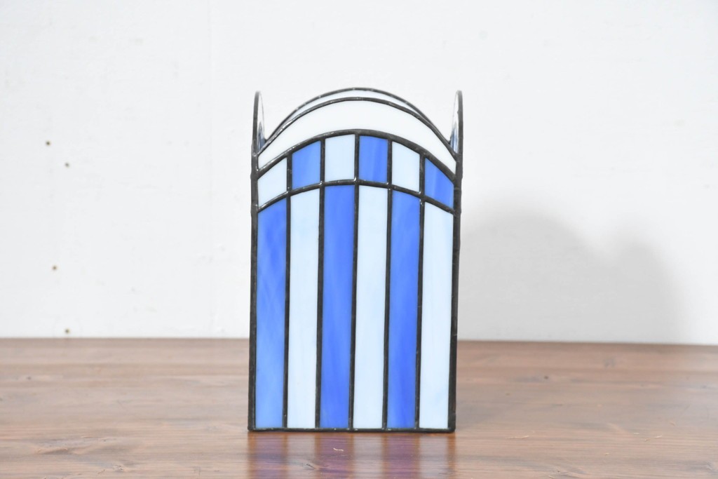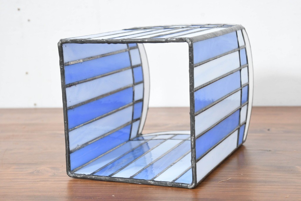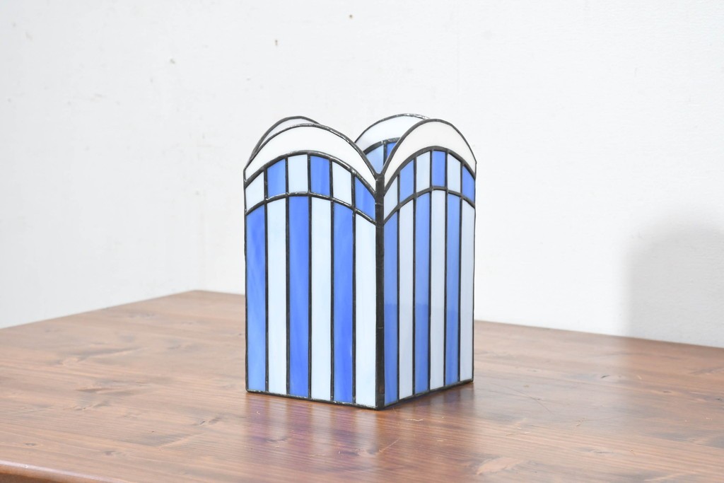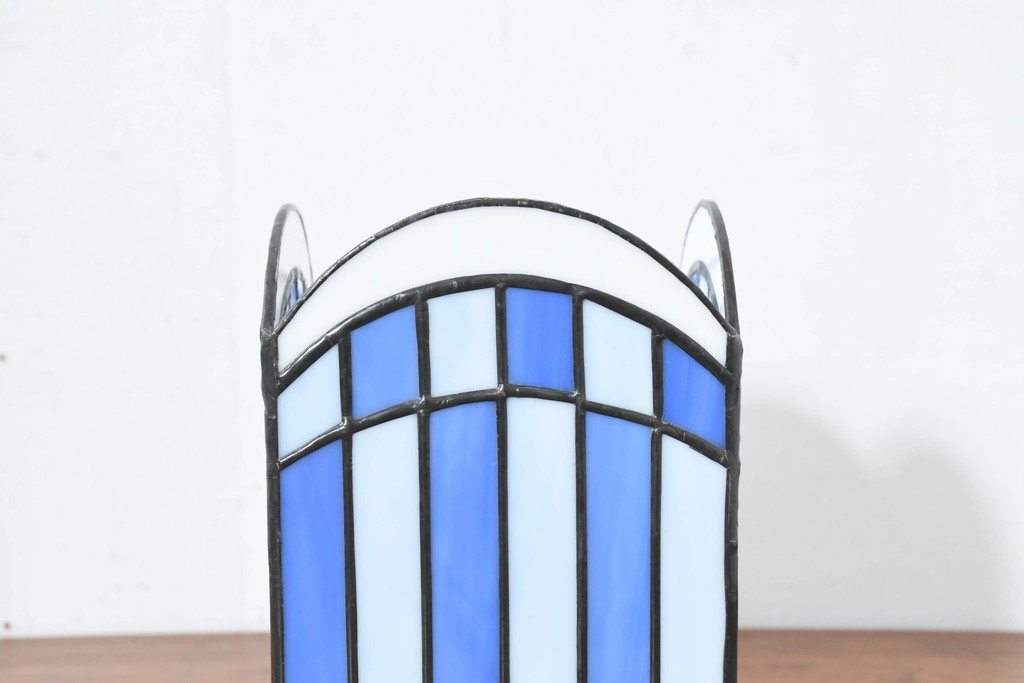 雑貨> オブジェ > 中古 希少!! 作家物!! ステンドグラス芸術家 伊藤誠二 青と白のコントラストが美しいキャンドルシェード 定価約13万円相当 (R-084570)