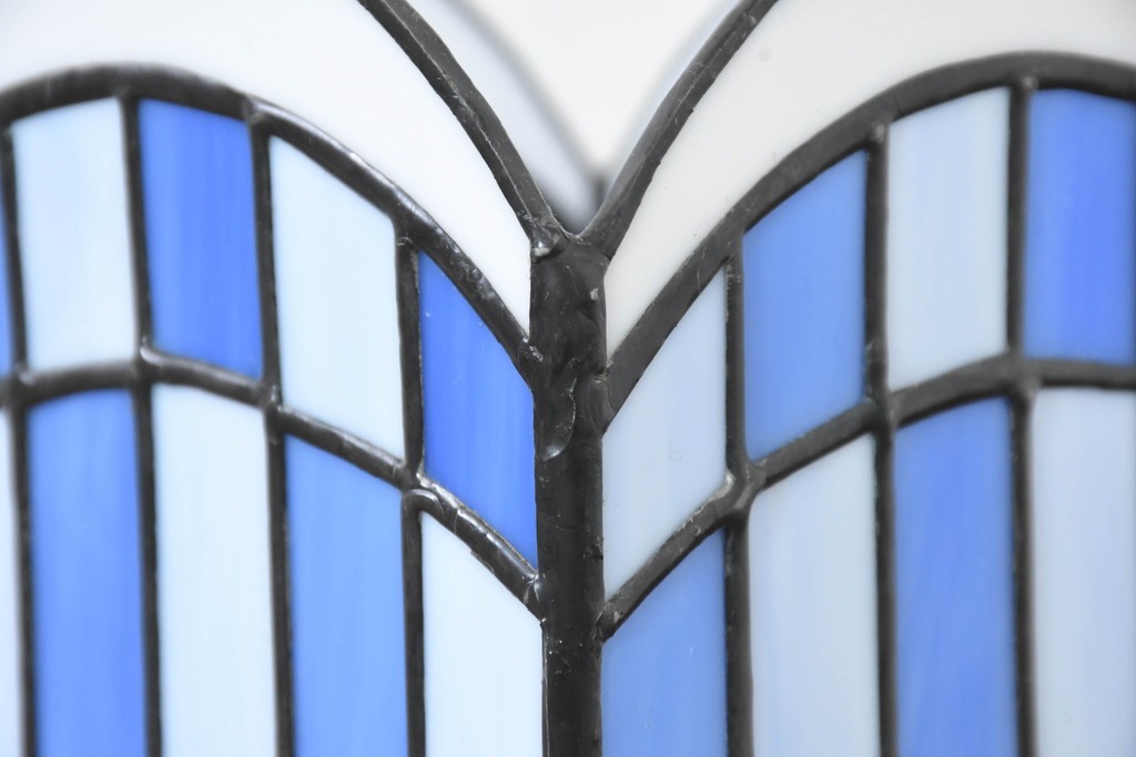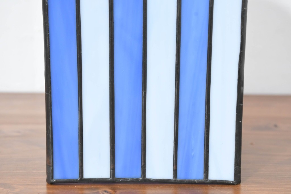 ステンドグラス > 中古 希少!! 作家物!! ステンドグラス芸術家 伊藤誠二 青と白のコントラストが美しいキャンドルシェード 定価約13万円相当 (R-084570)