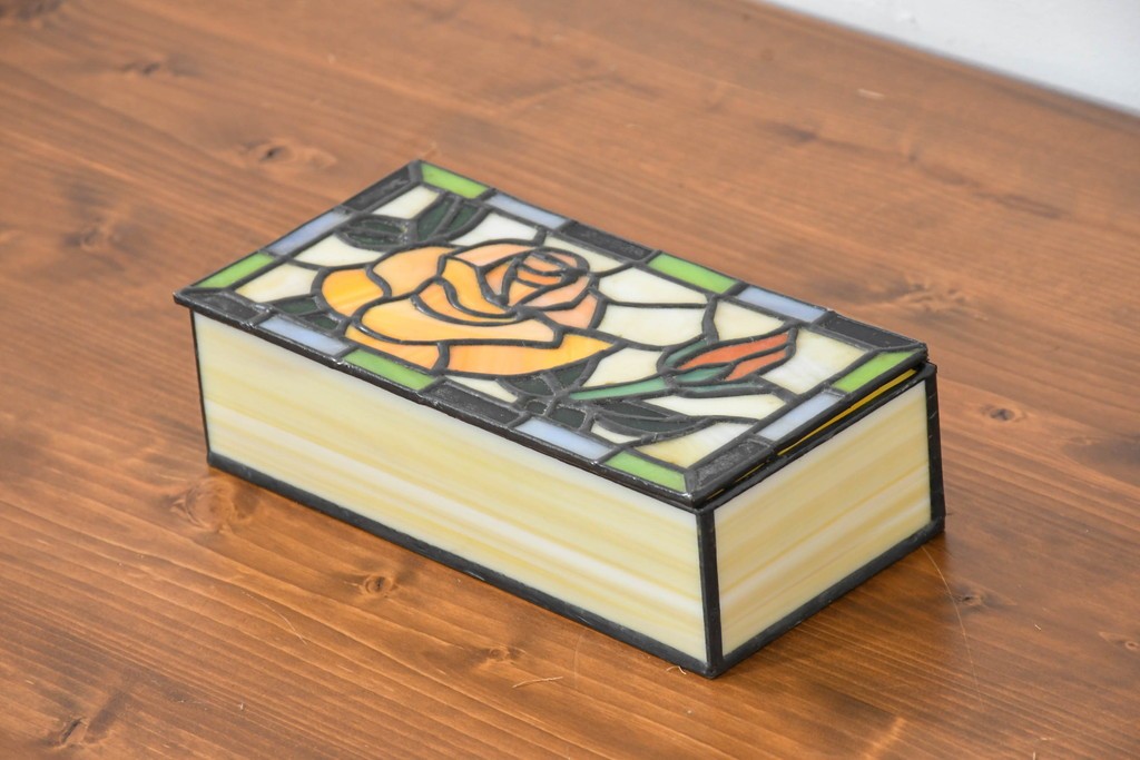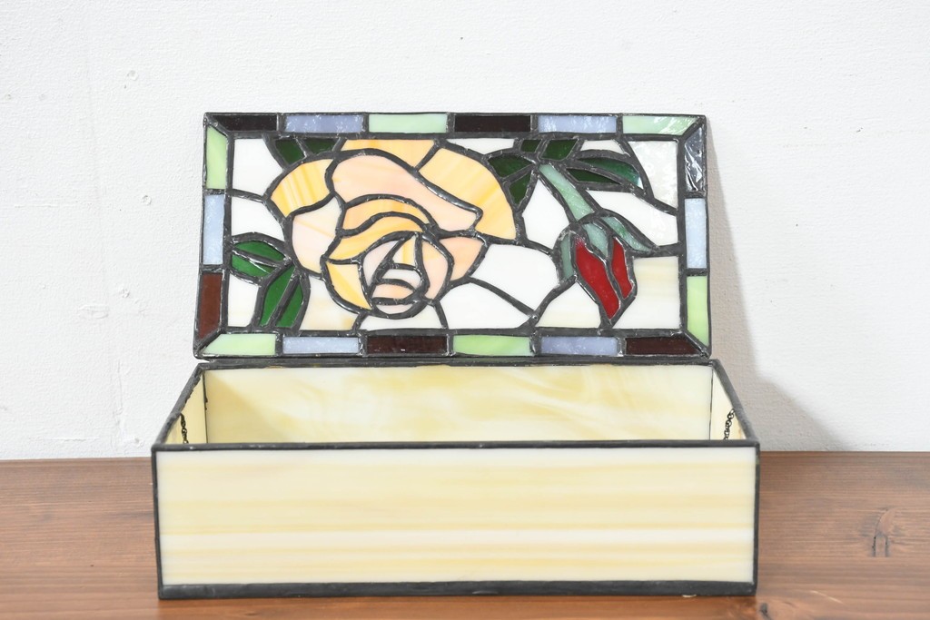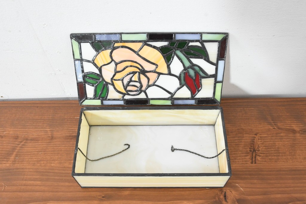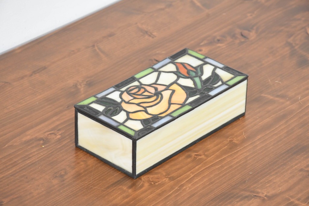 ステンドグラス > 中古 希少!! 作家物!! ステンドグラス芸術家 伊藤誠二 薔薇のデザインが優雅な印象を与える小箱 定価約14万円相当 (R-084572)