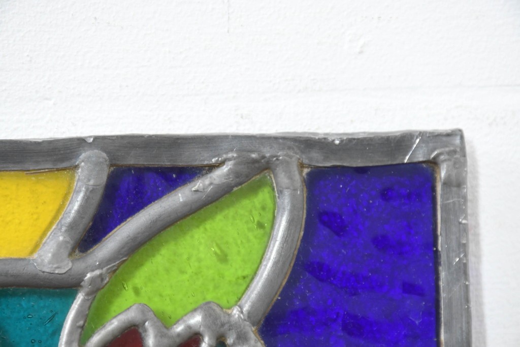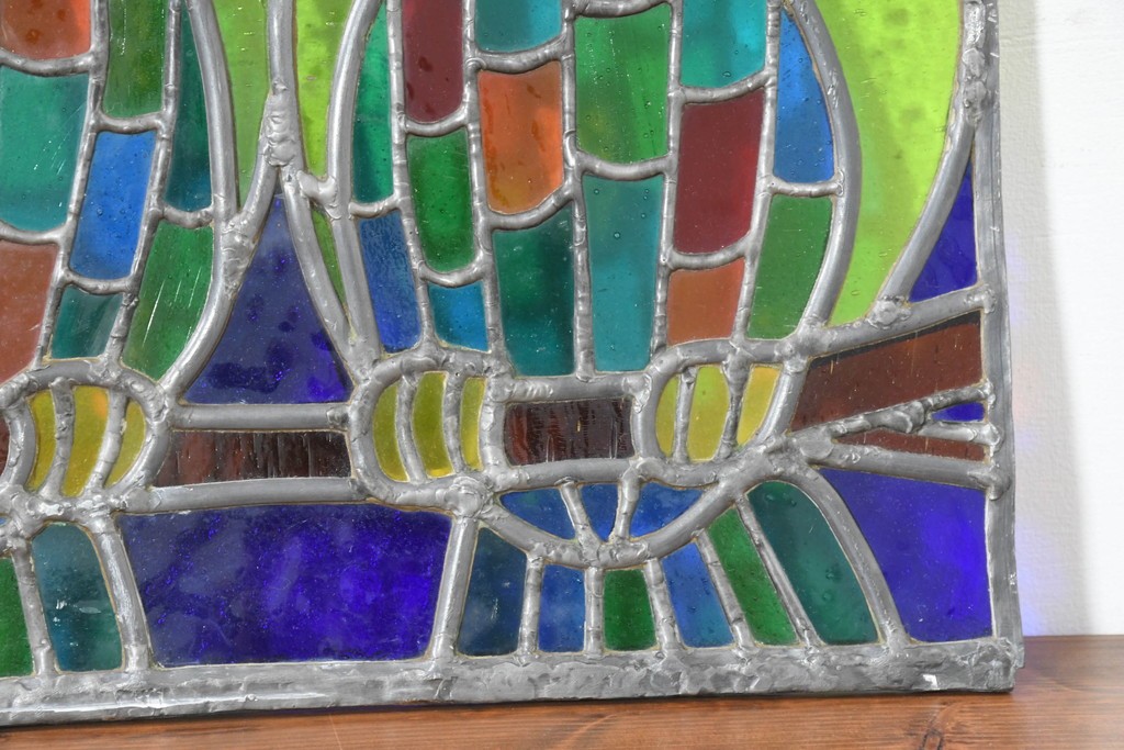 雑貨> オブジェ > 中古 希少!! 作家物!! ステンドグラス芸術家 伊藤誠二 2羽のフクロウが描かれた色彩豊かなアートパネル 定価約15万円相当 (R-084576)