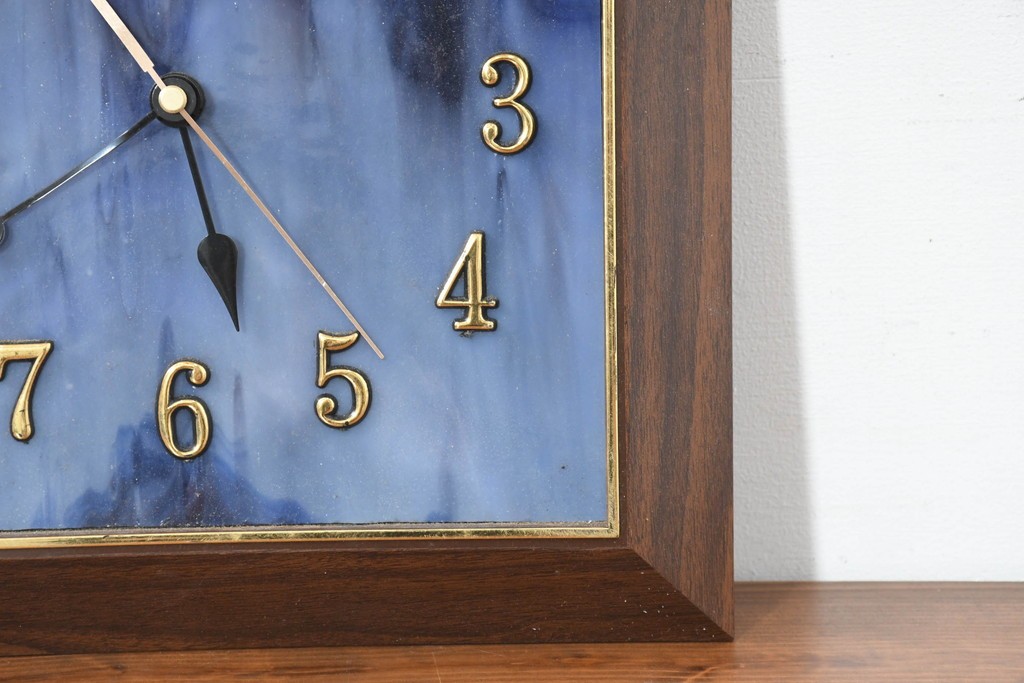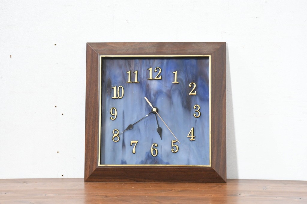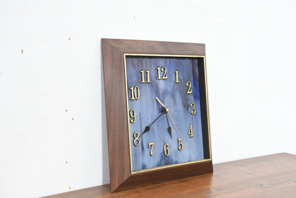 時計 > 中古 希少!! 作家物!! ステンドグラス芸術家 伊藤誠二 マーブルガラスをあしらったおしゃれなスクエア型の壁掛け時計 定価約4万円相当 (R-084577)