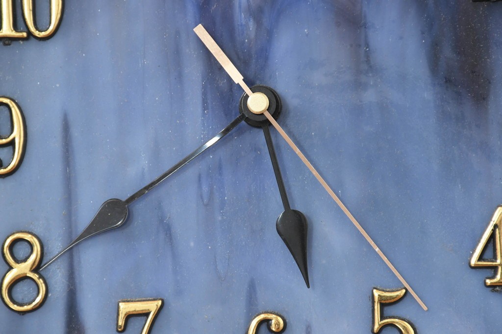 文字盤にはステンドグラス用のマーブルガラスが使用されています。