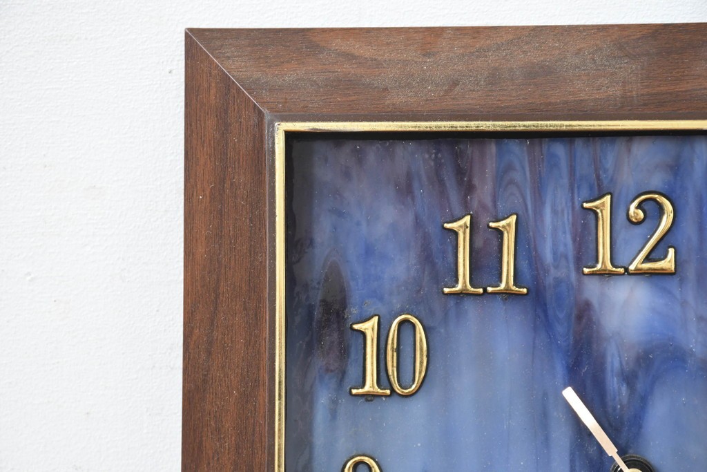 時計> 掛け時計 > 中古 希少!! 作家物!! ステンドグラス芸術家 伊藤誠二 マーブルガラスをあしらったおしゃれなスクエア型の壁掛け時計 定価約4万円相当 (R-084577)