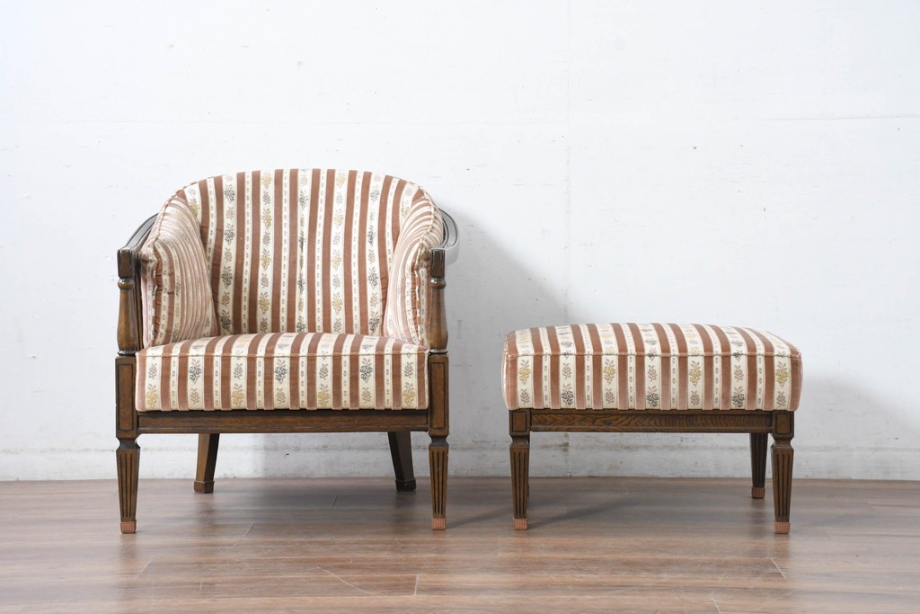 中古 カリモク家具(karimoku) domani(ドマーニ) QUEENS LIFE(クイーンズライフ) クラシカルな空間を演出するアームチェアとスツールのセット アームチェア定価約27万6千円相当 スツール定価約10万円相当 (R-084588)